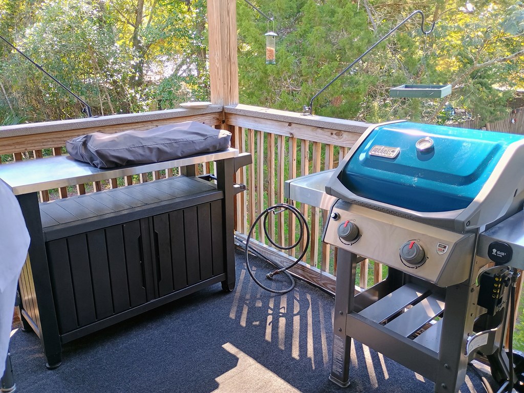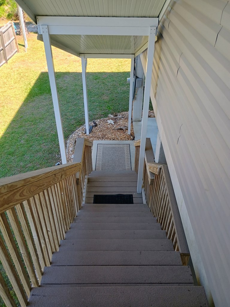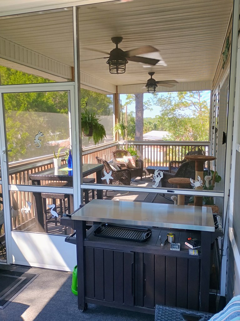 COASTAL LIVING WITH MINIMAL STRESS OR THREAT OF STORM DAMAGE! MOTIVATED TO SELL! ALL OFFERS WILL BE CONSIDERED! This 3-bedroom 2 bath Custom home is built on pre-stressed concrete pilings. Beautifully furnished & immaculately maintained! Exterior 1,000 lb. capacity cargo lift by Legacy installed 2024. Offered fully furnished, TURN-KEY & ready to rent/move in! ADJACENT .17 ACRE LOT IS INCLUDED with sale. Both are Zoned R-2, located on a dead-end road providing a very private & quiet location. Beautiful, roomy screen porch on backside is connected to an open deck which boasts a fully outfitted outdoor kitchen with grill, sink & all accessories. Full concrete pad underneath home provides vehicle parking & as well as an enclosed screen section with sitting area & hot tub. Security system complete with exterior cameras. Additional concrete RV Pad with 30 amp service & a leased propane tank. Aqua Pro water softener services the entire home. Outdoor hard-wired landscape lighting & a small detached exterior storage shed. This is a MUST-SEE home that is sure to meet & exceed all expectations!