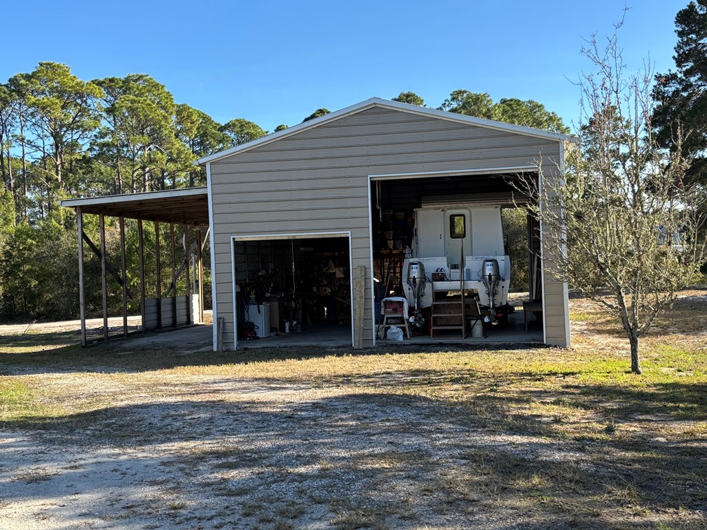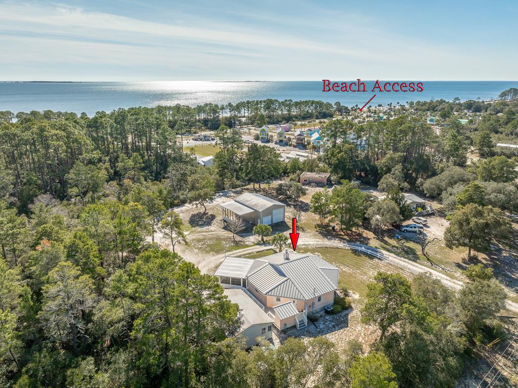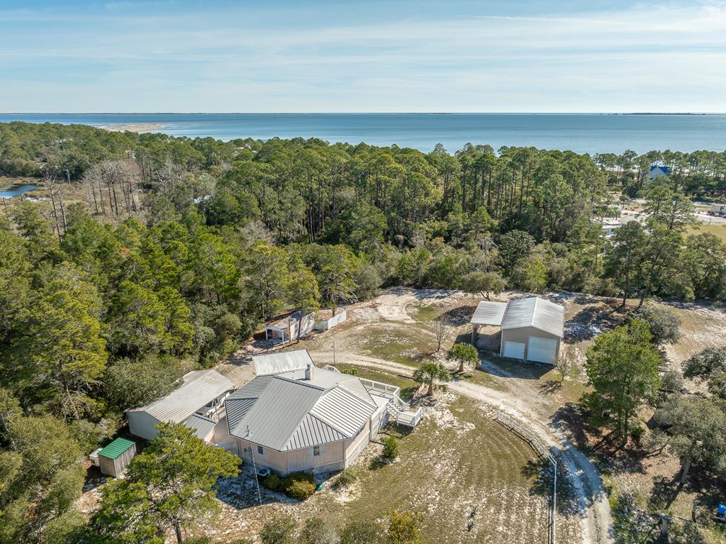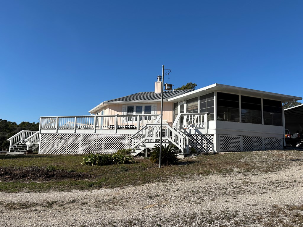 This 1.12 acre estate, is one block from Carrabelle Beach, and Apalachicola Bay that leads to the channel to the Gulf of America. Enter this 1604 square foot unique Octagonal home through the furnished screened sun porch/Florida room. Open the FRENCH DOORS where a lovely dining area & living room with a gas FIREPLACE greet you. To the right of the dining area is a well thought out kitchen followed by a laundry/office area. Continuing around the house is one bathroom & two bedrooms, one of which is used as a library/office. The third bedroom is an expansive master suite. The kitchen has a garden window for your herbs or plants. Quartz countertops & appliances were added in 2015. This light, airy, & easily navigable home is off grade & Handicap accessible. The unique octagonal shape has a custom interior that has been added onto since it was first built. The entire inside of the home was gutted & renovated from 1998 to 2000. A METAL ROOF was installed in 2008, flooring 2010 (hardwood), the AC & heat pump, 2013. The Florida room/porch, offers a place to capture the sea breezes while lounging or dining. Surveying your domain several outbuildings can be seen along with your Satsuma orange tree, palms +. A 4' x 8' potting shed matching the house sits on the back deck. Adjacent is a 10' x 20' detached storage/garage with a 20' x 20' attached carport. A 10' x 24' ART STUDIO with water, power & AC may also be used as a separate living space. A 26' x 40' BOAT STORAGE/SHOP features: concrete floor, electricity, one 8' Roll up Door and two 12' Roll up doors for easy ingress/egress; built in 2015. A 5 year old 6' x 8' STORM SHELTER & a 40 gallon water tank 6 years old, are located in the North of the property. Sold furnished, turnkey. Excellent location in an X flood zone. NO HOA. A short walk to Carrabelle Beach offers views of Dog & St. George Islands. Hunt, fish, boat, swim, shell, sunbathe, hike, relax. Well maintained - ready for you to own!