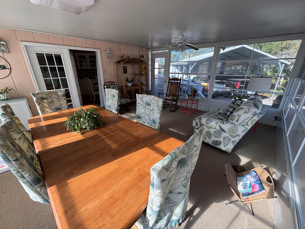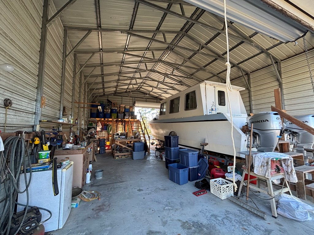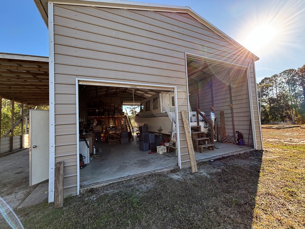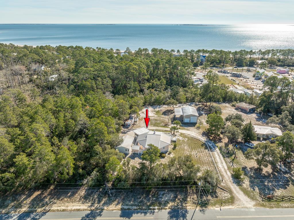 This 1.12 acre estate, is one block from Carrabelle Beach, and Apalachicola Bay that leads to the channel to the Gulf of America. Enter this 1604 square foot unique Octagonal home through the furnished screened sun porch/Florida room. Open the FRENCH DOORS where a lovely dining area & living room with a gas FIREPLACE greet you. To the right of the dining area is a well thought out kitchen followed by a laundry/office area. Continuing around the house is one bathroom & two bedrooms, one of which is used as a library/office. The third bedroom is an expansive master suite. The kitchen has a garden window for your herbs or plants. Quartz countertops & appliances were added in 2015. This light, airy, & easily navigable home is off grade & Handicap accessible. The unique octagonal shape has a custom interior that has been added onto since it was first built. The entire inside of the home was gutted & renovated from 1998 to 2000. A METAL ROOF was installed in 2008, flooring 2010 (hardwood), the AC & heat pump, 2013. The Florida room/porch, offers a place to capture the sea breezes while lounging or dining. Surveying your domain several outbuildings can be seen along with your Satsuma orange tree, palms +. A 4' x 8' potting shed matching the house sits on the back deck. Adjacent is a 10' x 20' detached storage/garage with a 20' x 20' attached carport. A 10' x 24' ART STUDIO with water, power & AC may also be used as a separate living space. A 26' x 40' BOAT STORAGE/SHOP features: concrete floor, electricity, one 8' Roll up Door and two 12' Roll up doors for easy ingress/egress; built in 2015. A 5 year old 6' x 8' STORM SHELTER & a 40 gallon water tank 6 years old, are located in the North of the property. Sold furnished, turnkey. Excellent location in an X flood zone. NO HOA. A short walk to Carrabelle Beach offers views of Dog & St. George Islands. Hunt, fish, boat, swim, shell, sunbathe, hike, relax. Well maintained - ready for you to own!