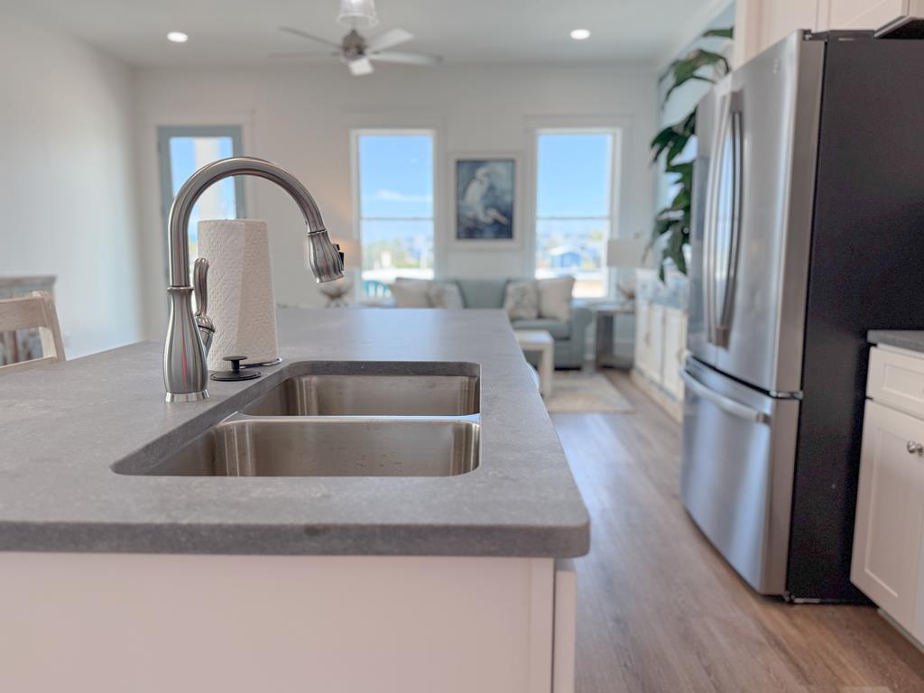 This 3-bedroom, 4-bath coastal FULLY FURNISHED retreat, built in 2024, offers the perfect mix of luxury and laid-back island living. It also has bonus sleeping/entertainment area on the top floor with a large deck overlooking the blue waters of St. George Island. Ideally located in the heart of St. George Island, you're just steps from the sugar-white sand beaches and a short stroll to local shops and dining. Whether you're searching for a second home or a smart investment, this property fits the bill. Rental projections exceed $106,000. Inside, you'll find upscale finishes including luxury vinyl flooring, quartz countertops, custom wood cabinetry, and soaring 10-foot ceilings. The top floor is an entertainer's dream, complete with a wet bar, full bath, and a spacious deck with both bay and Gulf views. After a day on the beach, unwind with a dip in your private pool. Don't miss your chance to enjoy island life at its finest—schedule your private tour today!