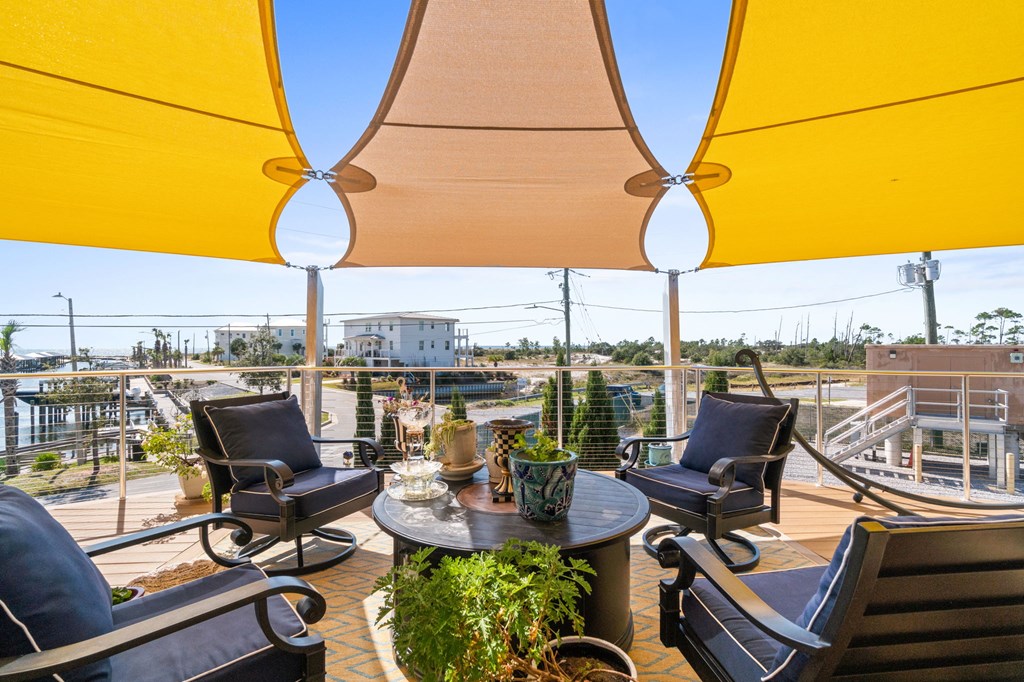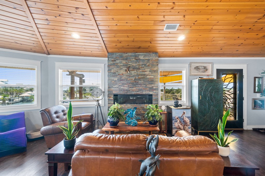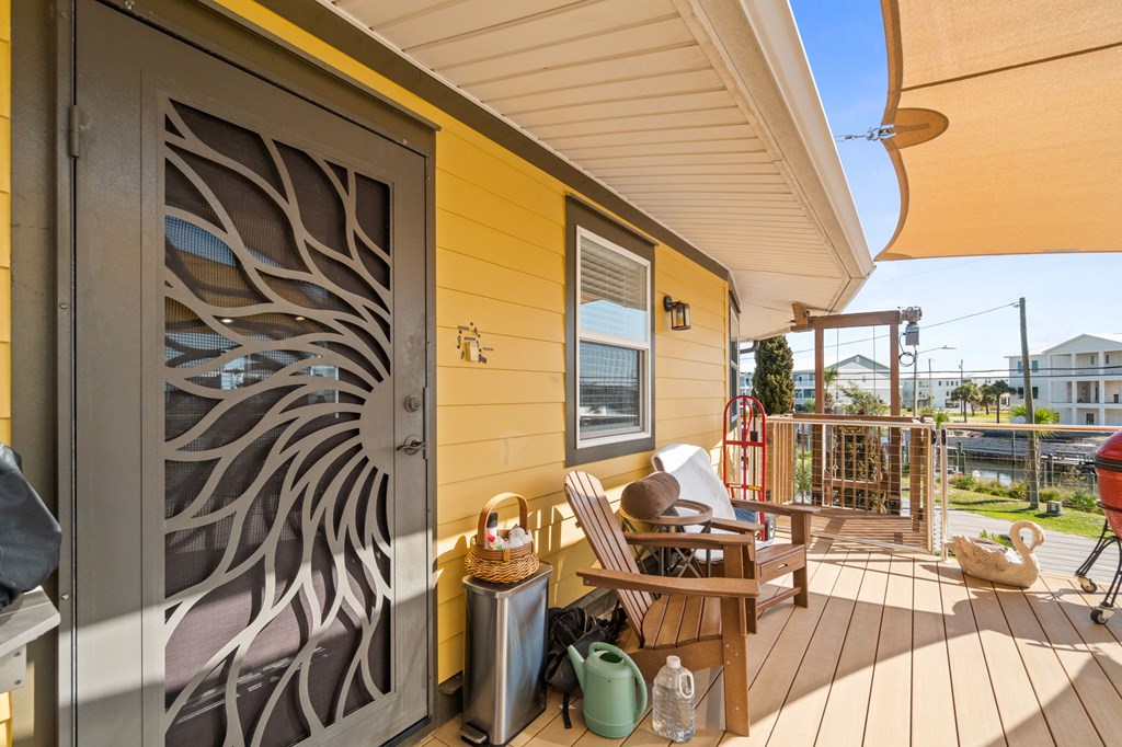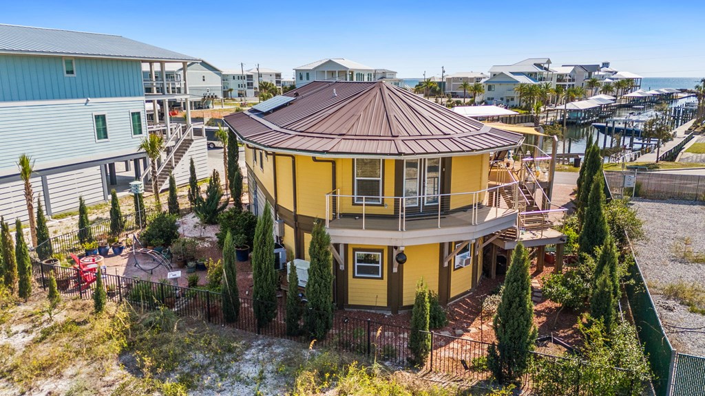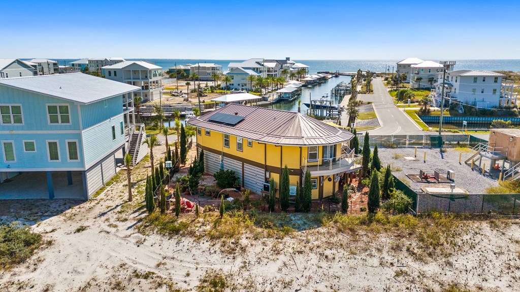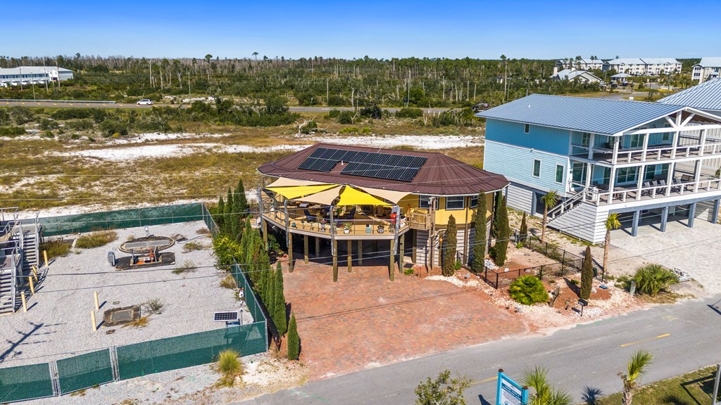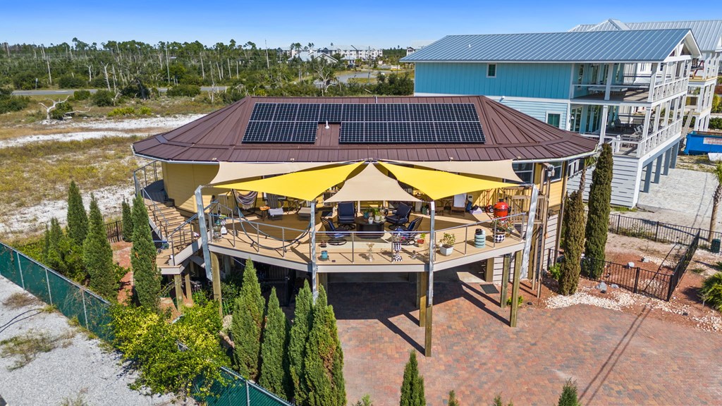 Welcome to 118 Canal Parkway, a rare find in Mexico Beach offering incredible Gulf and canal views, durability, and coastal charm. This 3BR/2.5BA Deltec-Built home was the only property on the street to withstand Hurricane Michael with flying colors—built to handle up to 190 MPH winds with concrete pilings and solar power efficiency. Step inside the open-concept living area with plenty of natural light, surrounded by windows that frame the water views. The living space features vaulted ceilings and wooden floors throughout, connecting to a large, covered porch where you can enjoy sunsets over the Gulf or watch boats cruise the canal. The kitchen is a showpiece with custom granite countertops, a copper backsplash, soft-close cabinetry, a gas range, an island, and a walk-in pantry. The master suite has plenty to offer with two walk-in closets, a private balcony, and a spa-like bathroom featuring cedar walls and a floor-to-ceiling tiled shower. Outside, you'll find a fenced yard, plenty of parking, a heated and cooled storage area downstairs, and an exterior lift/elevator for easy access. Additional highlights include a whole-home Generac generator, solar panels, and the option to rent a boat slip directly across the street from the city—ideal for boaters who want quick Gulf access. With its thoughtful design, enduring strength, and feature on Inside Edition, this home represents the best of Mexico Beach living. Call today!