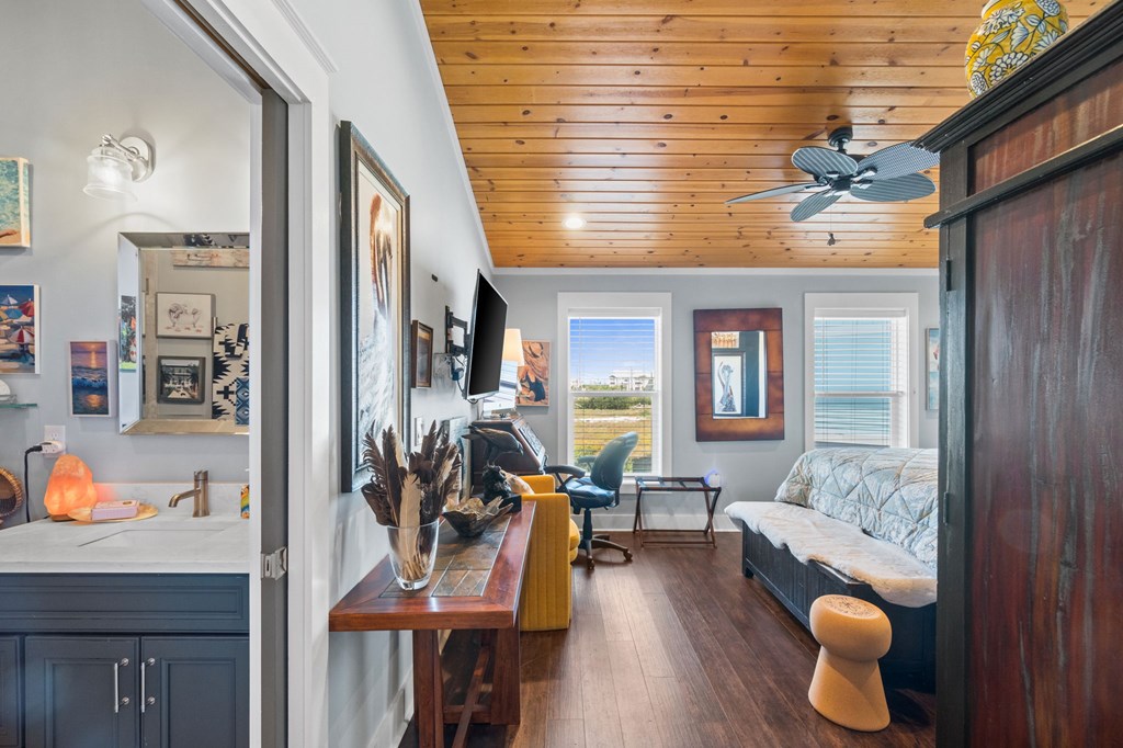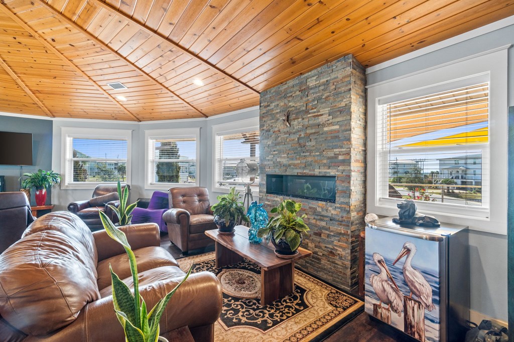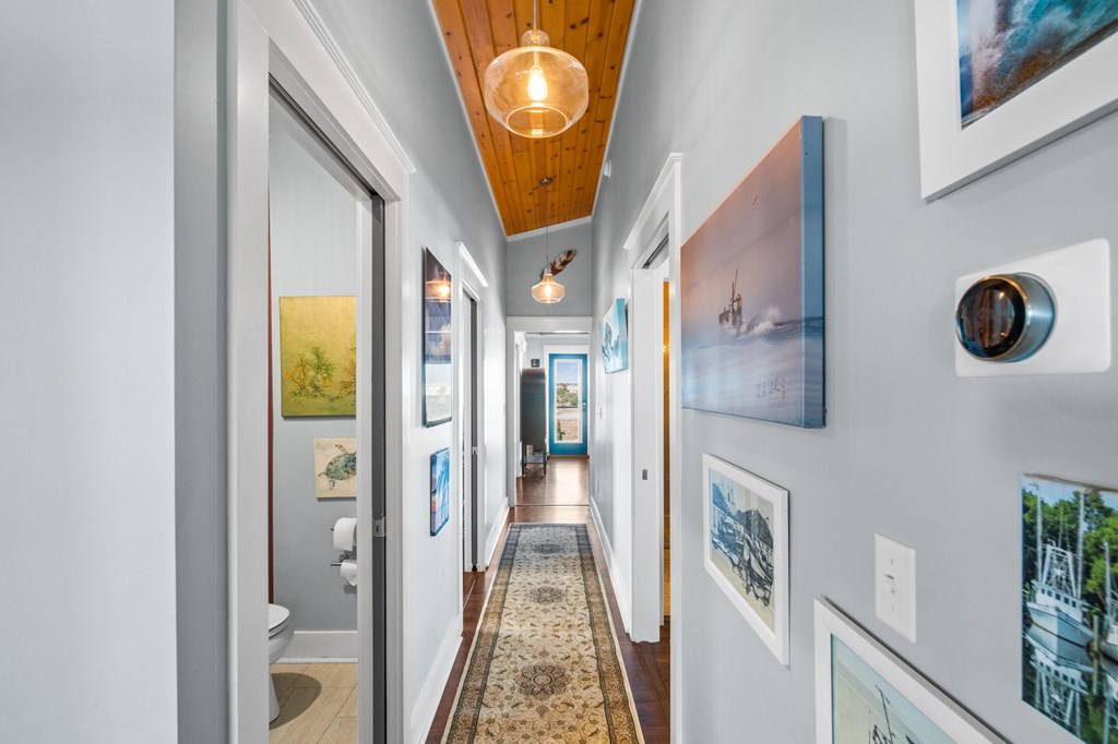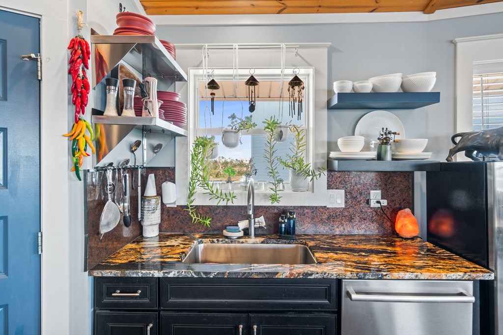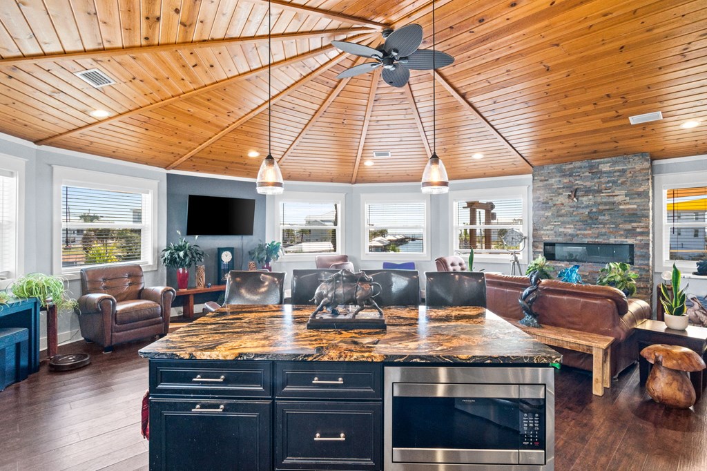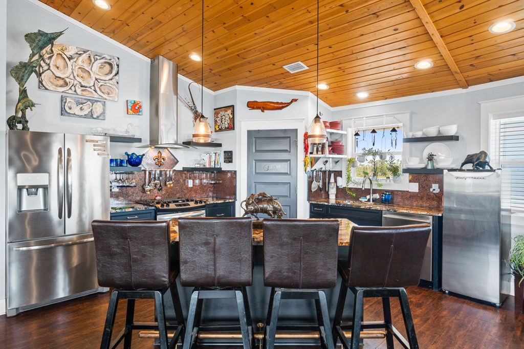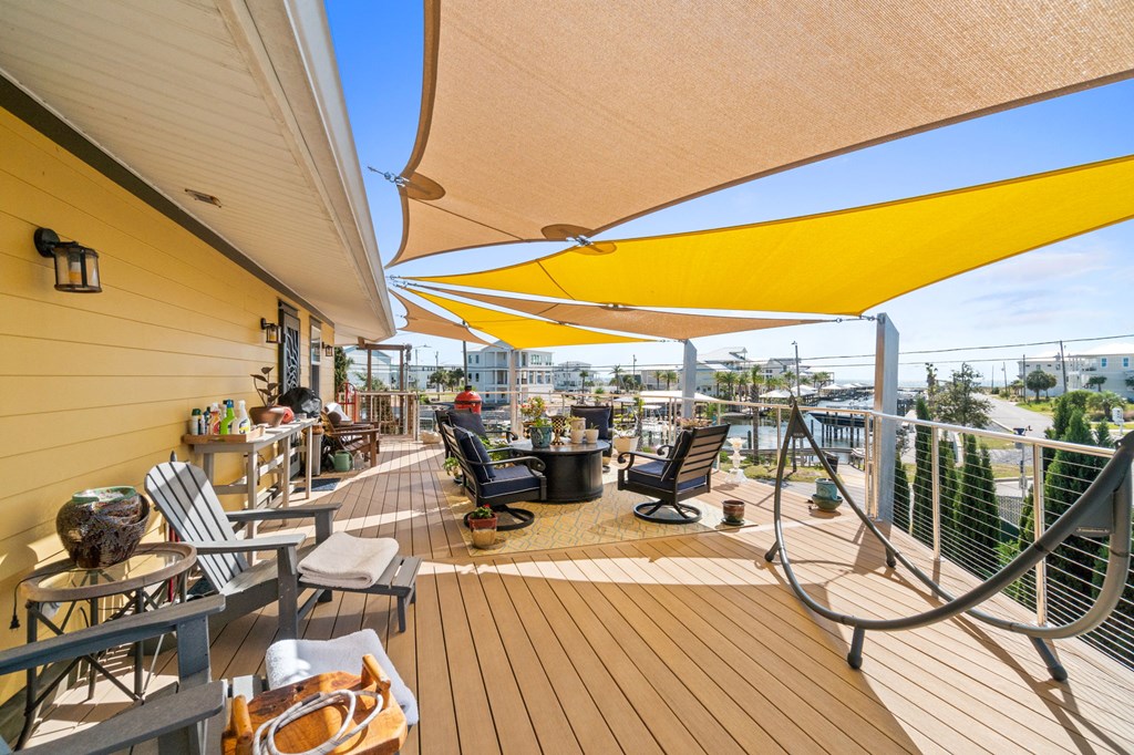 Welcome to 118 Canal Parkway, a rare find in Mexico Beach offering incredible Gulf and canal views, durability, and coastal charm. This 3BR/2.5BA Deltec-Built home was the only property on the street to withstand Hurricane Michael with flying colors—built to handle up to 190 MPH winds with concrete pilings and solar power efficiency. Step inside the open-concept living area with plenty of natural light, surrounded by windows that frame the water views. The living space features vaulted ceilings and wooden floors throughout, connecting to a large, covered porch where you can enjoy sunsets over the Gulf or watch boats cruise the canal. The kitchen is a showpiece with custom granite countertops, a copper backsplash, soft-close cabinetry, a gas range, an island, and a walk-in pantry. The master suite has plenty to offer with two walk-in closets, a private balcony, and a spa-like bathroom featuring cedar walls and a floor-to-ceiling tiled shower. Outside, you'll find a fenced yard, plenty of parking, a heated and cooled storage area downstairs, and an exterior lift/elevator for easy access. Additional highlights include a whole-home Generac generator, solar panels, and the option to rent a boat slip directly across the street from the city—ideal for boaters who want quick Gulf access. With its thoughtful design, enduring strength, and feature on Inside Edition, this home represents the best of Mexico Beach living. Call today!