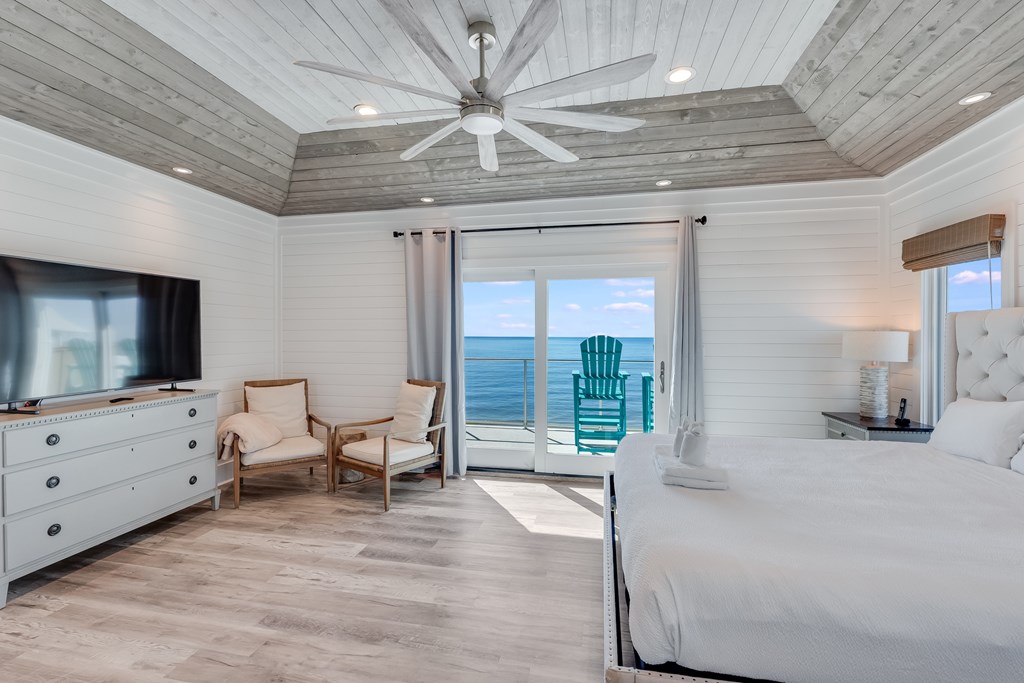 Located directly on the Gulf of America, Singing Waves (formerly Mar-A-Lago) is a beautifully updated beachfront home on North Cape San Blas offering panoramic Gulf views and a peaceful coastal lifestyle. This three-level retreat complete with newly refurbished elevator, combines timeless style with modern comfort, featuring wrap-around decks, private beach access, and a new outdoor fire pit perfect for evening gatherings by the sea. Inside, natural light fills an open-concept living area designed to maximize views. The gourmet kitchen includes custom cabinetry, premium appliances, a prep sink, and a stand-alone ice maker. Shiplap walls and ceilings, warm coastal finishes, and an inviting layout create the perfect setting for family gatherings or entertaining guests. The home offers four bedrooms and three and a half baths, comfortably accommodating up to twelve guests. The top-floor primary suite features vaulted ceilings, a spa-inspired bath with a soaking tub and walk-in shower, and a private upper deck showcasing the best views in the house. Additional features include an outdoor shower, fish cleaning station, gas grill, ample parking, washer/dryer, fast Wi-Fi, and central air conditioning. Beyond the property, Cape San Blas offers pristine natural beauty and endless outdoor recreation. Nearby St. Joseph Peninsula State Park is renowned for its white-sand beaches, kayaking, shelling, and nature trails. The Loggerhead Walk/Bike Trail winds through the Cape, while the St. Joseph Bay Aquatic Preserve invites exploration by kayak or paddleboard with opportunities to spot dolphins, sea turtles, and coastal wildlife. Perfect as a primary residence, vacation retreat, or investment property, Singing Waves embodies the best of Gulf-front living, where every day begins and ends with the sound of the waves and the glow of a Cape San Blas sunset. Some dimensions were taken from the Gulf Co. Property Appraiser's website, Survey on file.