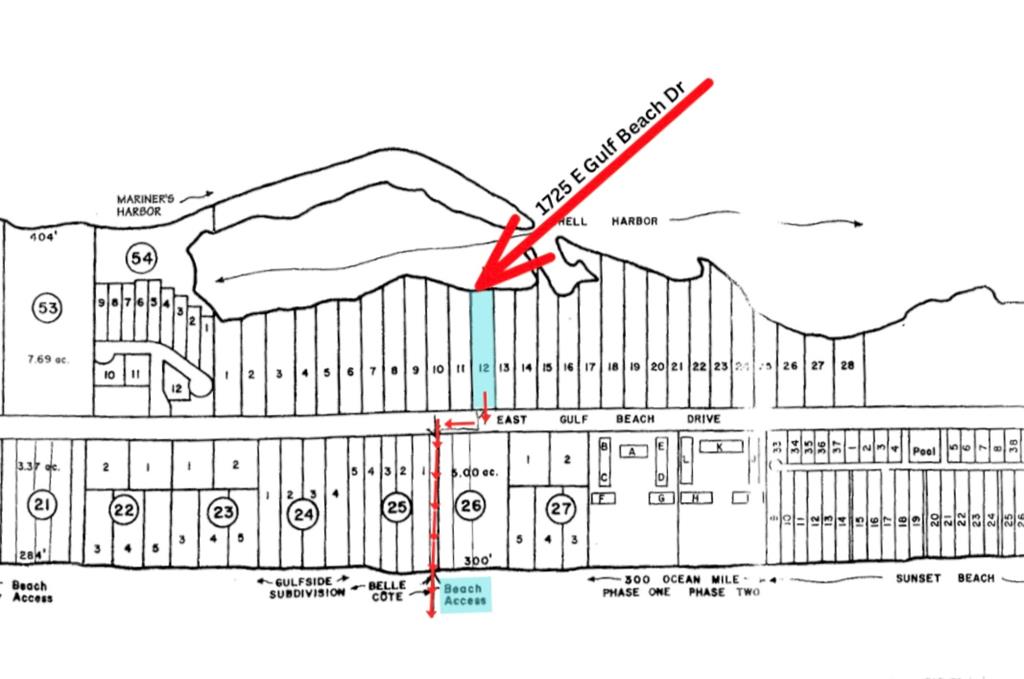 Head East on E Gulf Beach Dr. In 3.6 miles turn left into driveway.
