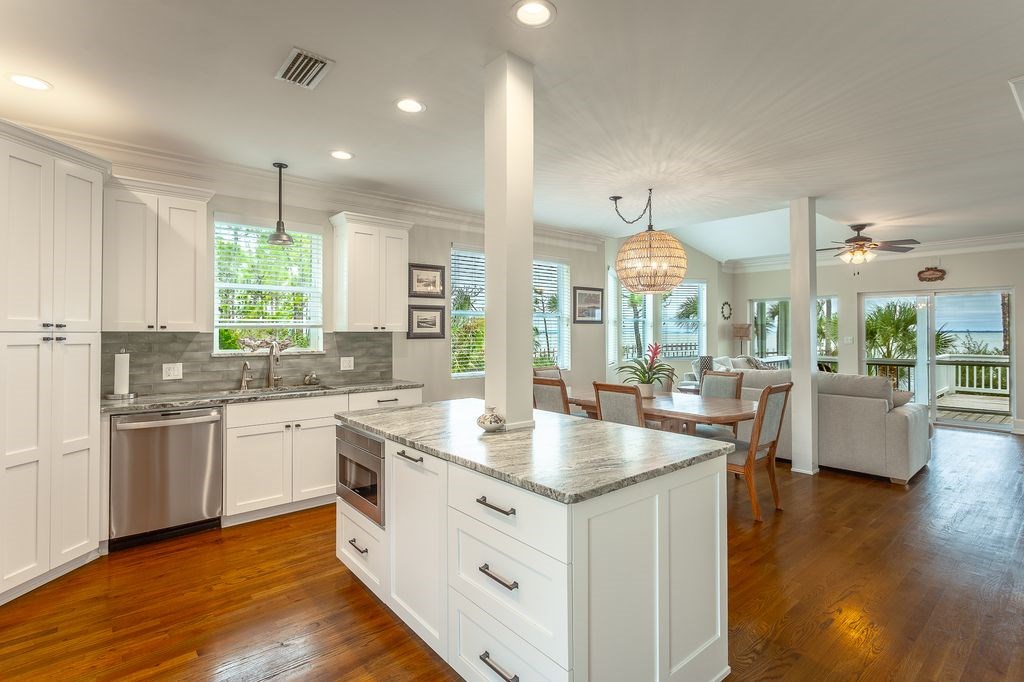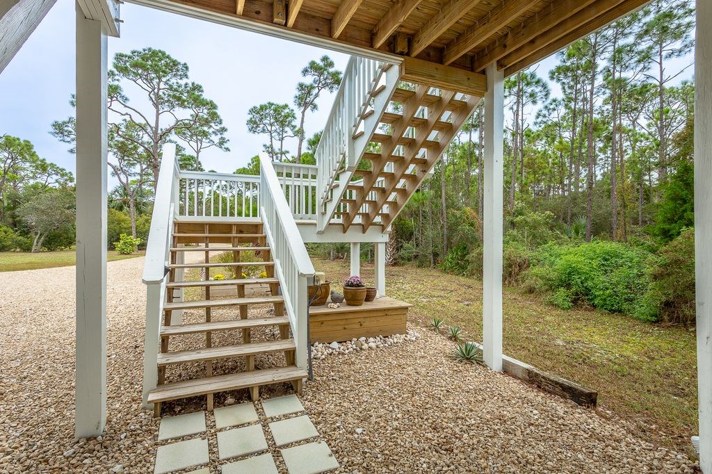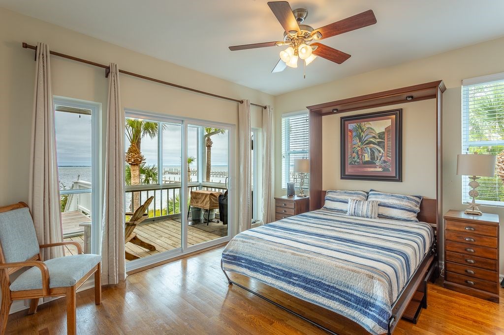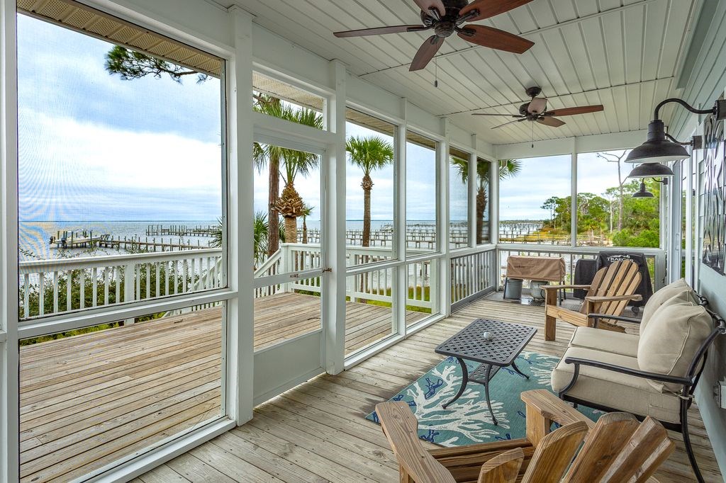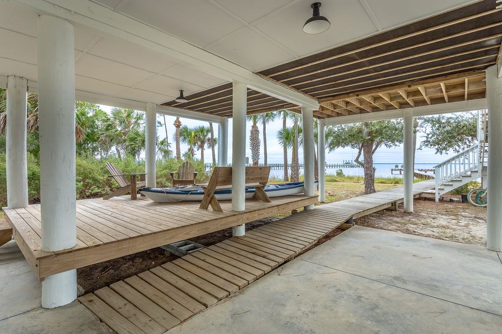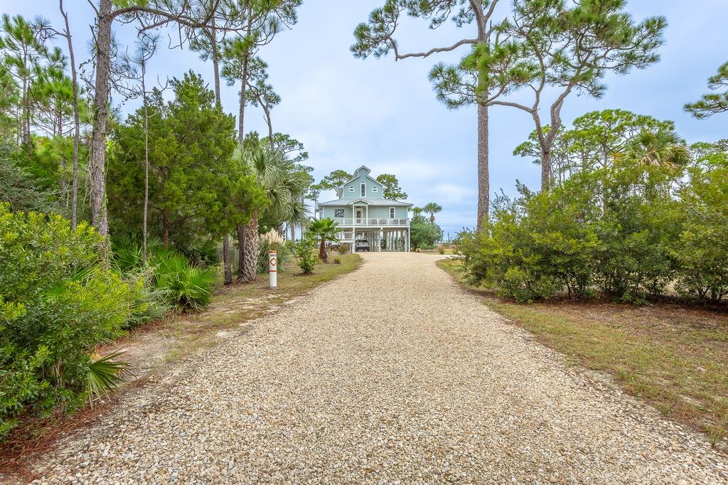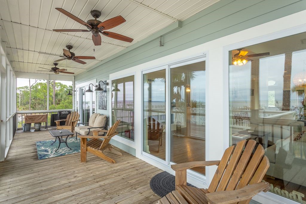 This beautiful St George Island bayfront home is located within the gated St George Plantation and fronts Apalachicola Bay offering fantastic views. The home sits on a 1 acre parcel with 100' of bay frontage providing privacy and solitude. This 3BR/3BA residence has been completely renovated by the current owners. Exterior renovations included new roof, impact rated windows and doors, Hari Plank siding, HVAC, marine grade lighting, front and back decks, stairs, porch screening, underpinning, driveway, landscaping, exterior painting. Interior renovations include, new custom cabinets, vanities, countertops, sinks, plumbing fixtures, water heater, tubs, fireplace, electrical fixtures, interior doors, tile shower, tile kitchen backsplash, tile floors in baths, appliances interior painting, refinished solid oak wood floors. The St George Plantation community amenities include 24 hour gated and roving security, community clubhouse, 2 pools, airstrip, fitness center, tennis and pickle ball courts and 7 miles of white sand beach. Come take a look, it's coastal solitude at its finest.