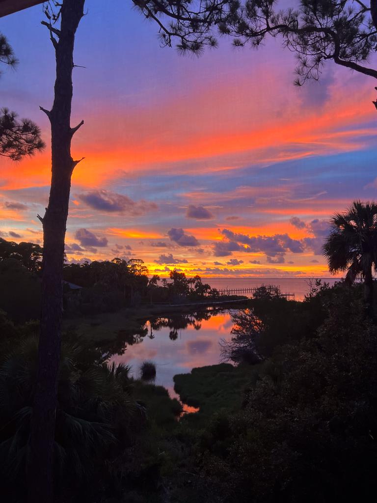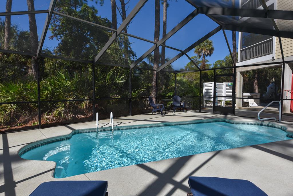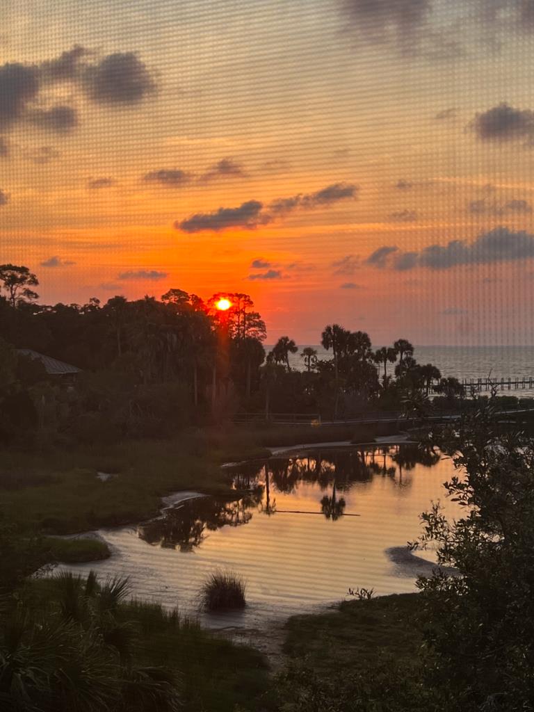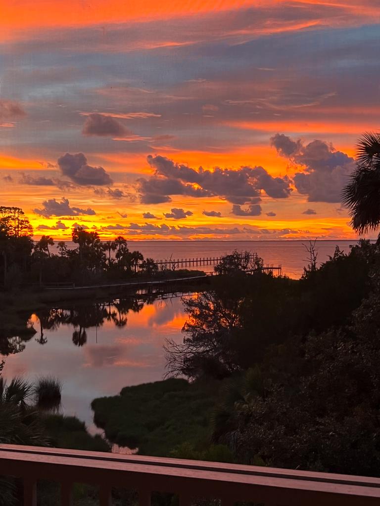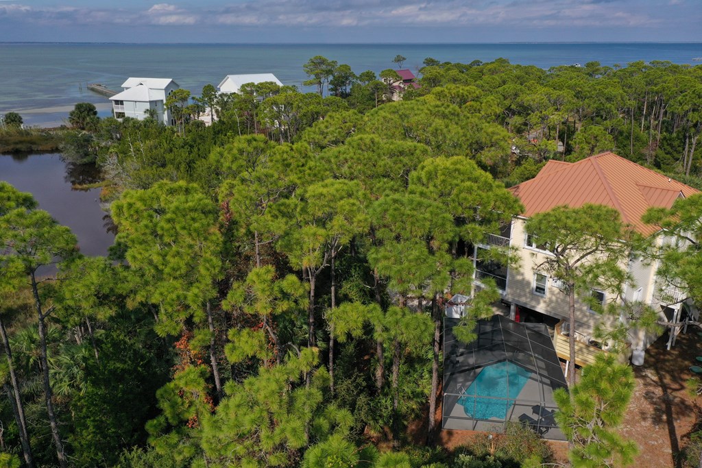 "Bourbon Bay" Well-maintained, St George Island Plantation home with Extraordinary Sunset Glow and Private Heated Pool. Bourbon Bay is poised to capture open views of Apalachicola Bay sunsets and pristine estuary habitat from multi-level screened decks and Bayside windows. 5BR/4.5BA; Three primary BRs have ensuite baths. The open floor plan with 2 living areas is ideal for entertaining. Spacious kitchen with generous cabinetry, granite countertops, black stainless appliances and ample space for shared meal preparation. Elevator access to all levels. Wet bar. 2 spacious ground level storage/exercise/workshop rooms. Bourbon Bay is solidly constructed with Hardi-plank siding, storm shutters and standing seam metal roof. Gated community with clubhouse, 2 community pools, 2 bike paths, fitness room, tennis and pickleball courts and Beach. 3300' paved airstrip. This private residence is offered furnished.