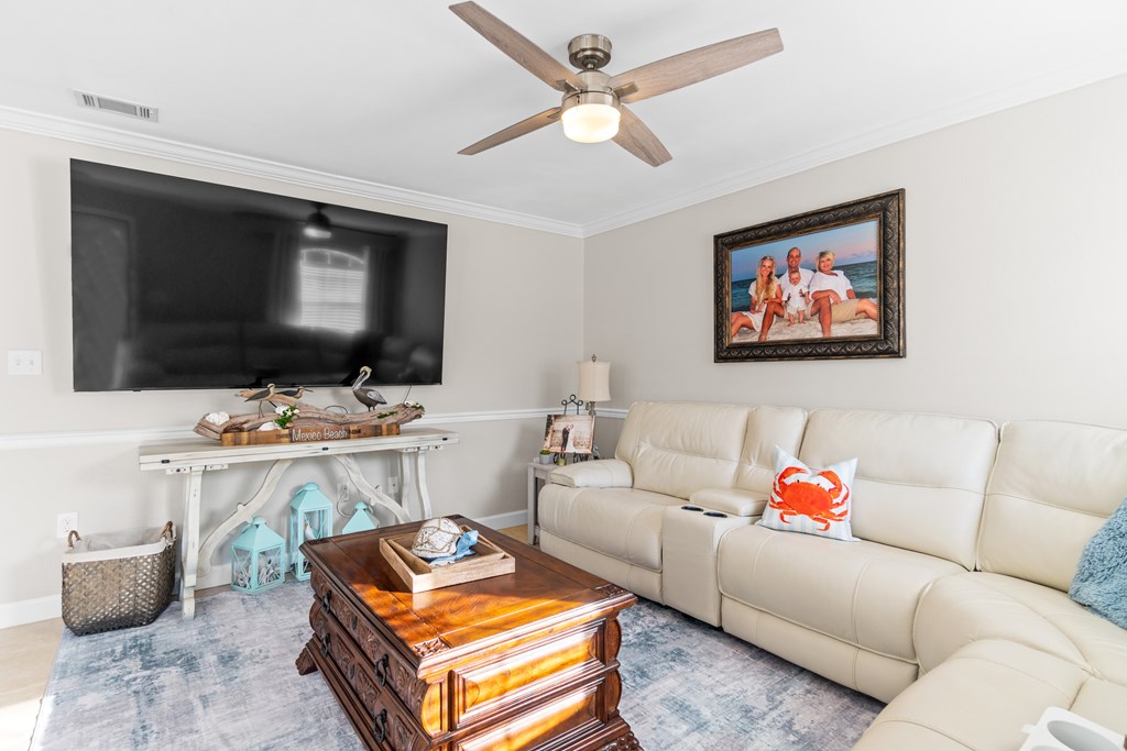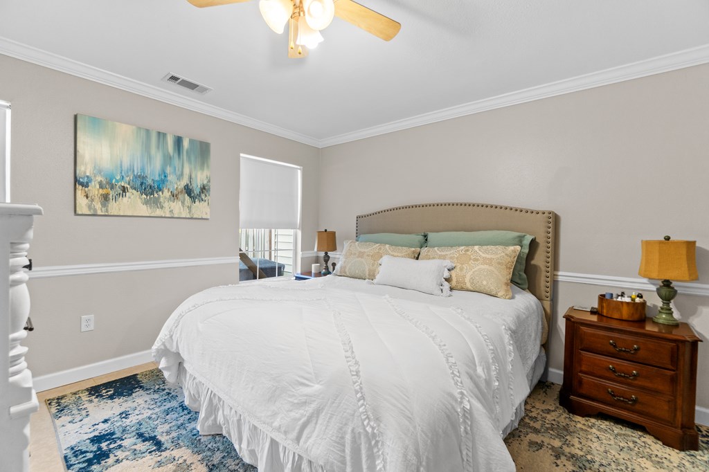 Welcome to this beautifully updated X FLOOD ZONE 4 bedroom, 2 bath townhome in The Palms of Mexico Beach. Thoughtful renovations blend coastal charm with modern convenience—an enlarged chef's kitchen showcases quartz countertops, a tasteful tile backsplash, under and above cabinet lighting, and Thomasville cabinetry with soft-close drawers. Crown molding and chair rail details add timeless character while durable tile and carpet flooring flow throughout. Major systems have been recently refreshed including new plumbing, a new hot water heater, and a 2019 roof for peace of mind. Step outside the new back door onto a private deck nestled among mature trees, an ideal spot for morning coffee or low-maintenance entertaining. Community amenities include an in-ground pool and convenient access within one half mile of the water, making this home an excellent full-time residence, vacation getaway, or rental investment. Don't miss this opportunity in a sought-after Mexico Beach neighborhood.