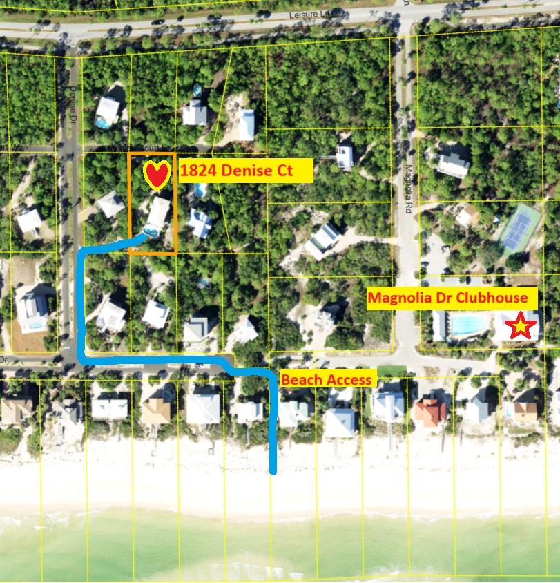 From the Plantation entrance gate, travel on Leisure Lane for approximately 2.9 miles to Denise St and turn left. Then take the next left onto Denise Court East. The house is the second on the right.