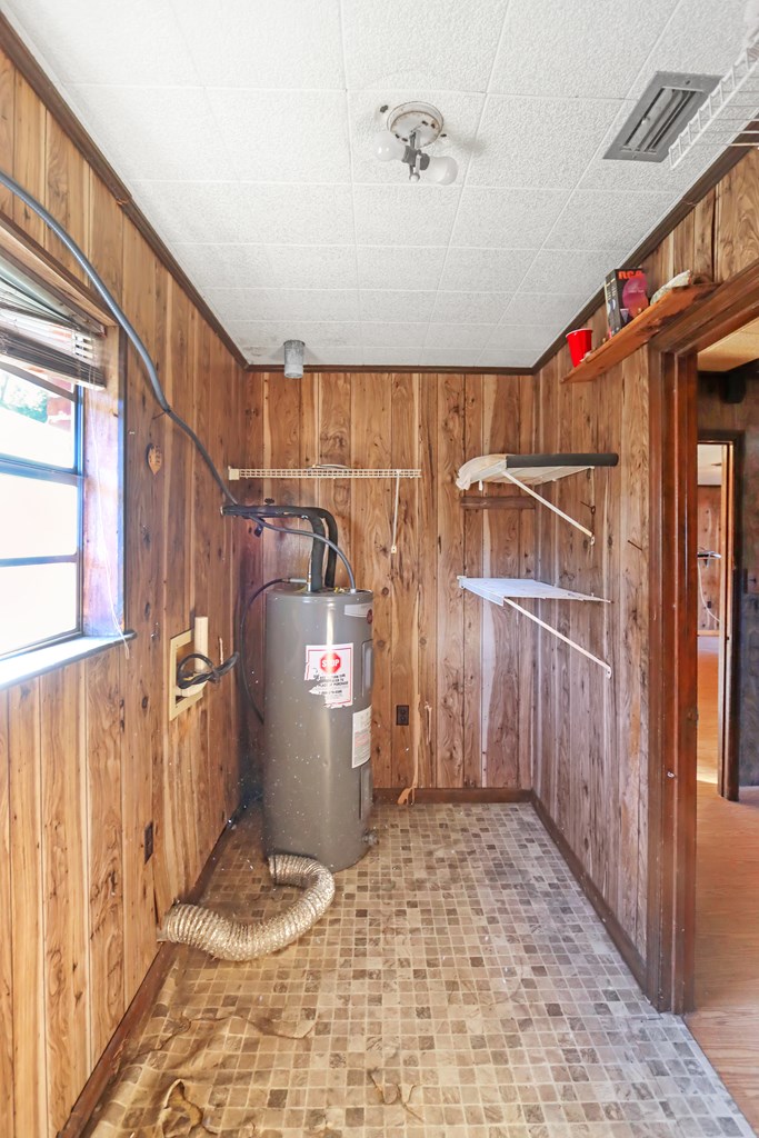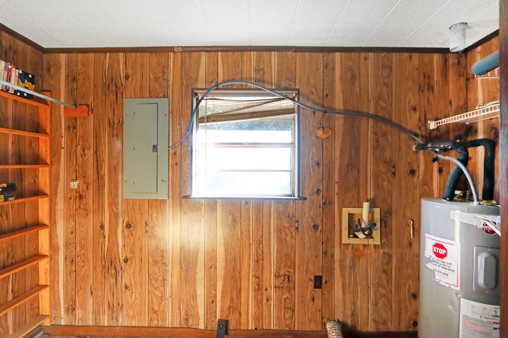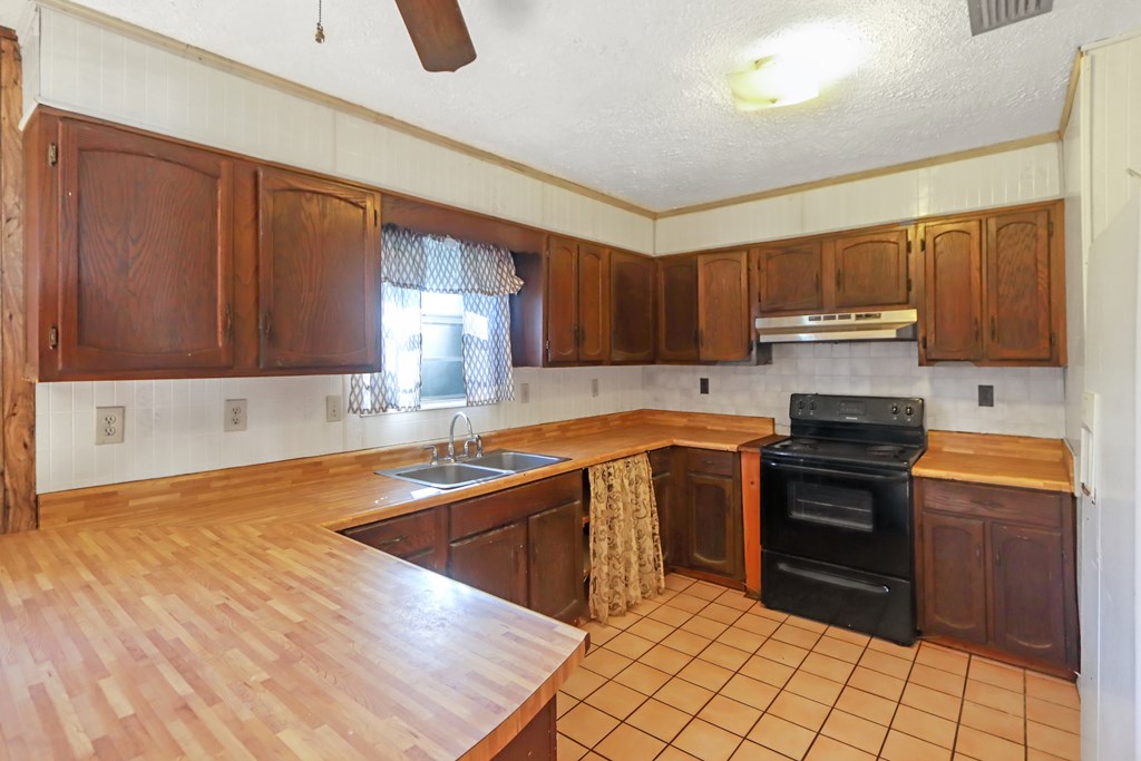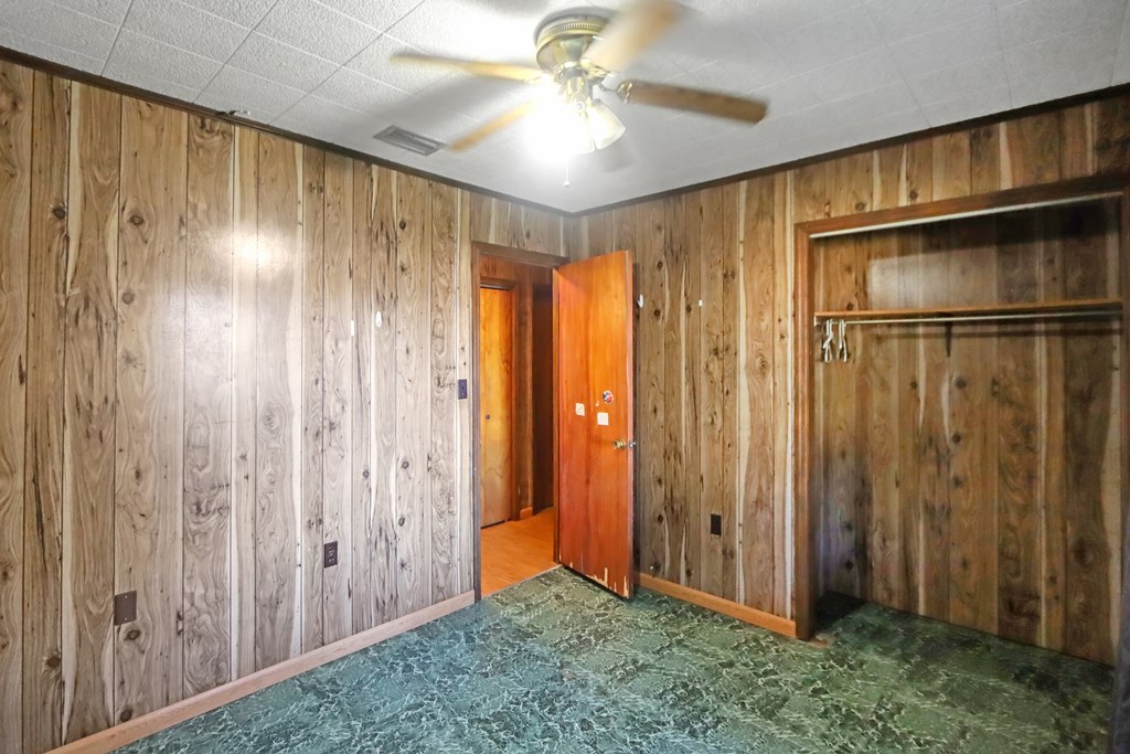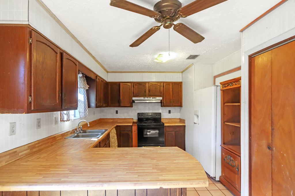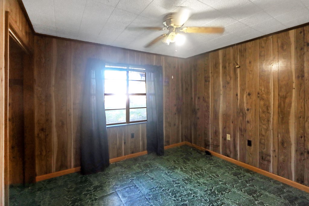 Must see solid three-bedroom, two-bath brick residence tucked away on an X flood zone lot at the dead-end of a city street. Inside the front door you are greeted with a formal living area granting direct access to the backyard through the sliding glass doors, creating a seamless indoor/outdoor flow. The kitchen with breakfast bar is awaiting your updates! waits updating features a breakfast bar. The fireplace in the expansive den creates a warm ambiance, with the potential for conversion to a 4th bedroom. The laundry room is located off this space and offers additional storage. Down the hall you'll discover the master suite and two additional bedrooms and a full bath. Outside, the property includes a detached single carport and double garage with attached workshop, providing ample room for storage, hobbies, or project space. With its comfortable layout, desirable location, and generous outbuildings, this home is ready to welcome its next owners.