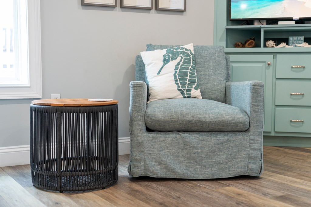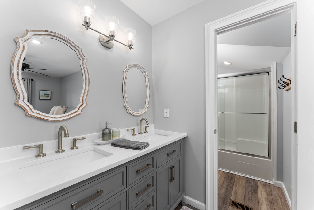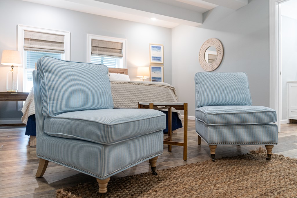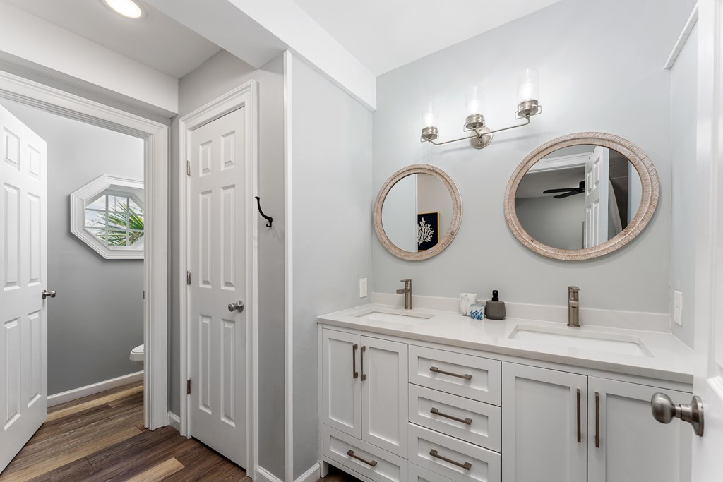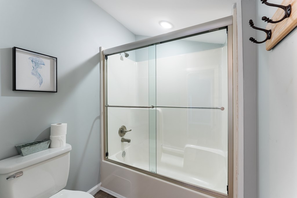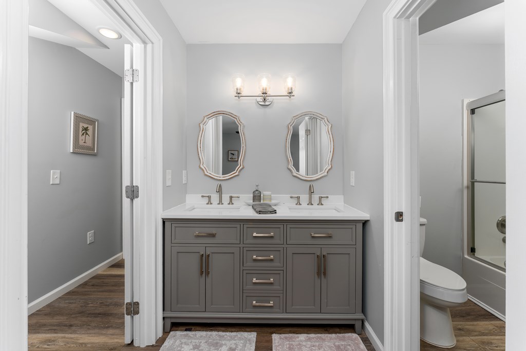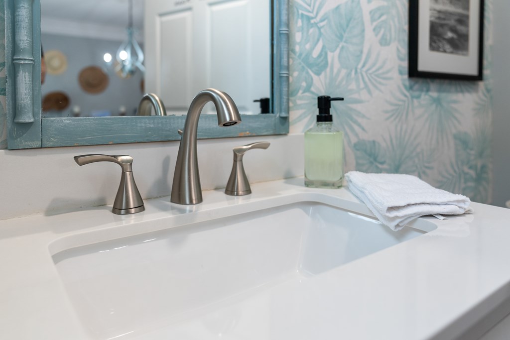 This beautifully updated 4-bedroom, 5.5-bath townhome offers approximately 2,396 square feet of heated living space across four thoughtfully designed levels, blending coastal character with modern comfort and functionality. Originally built in 2003 and extensively updated in 2018, the home features a standing-seam metal roof, solid construction, and quality finishes throughout. The main living level showcases an open-concept design ideal for entertaining, with shiplap accent walls, crown molding, recessed lighting, and durable luxury vinyl plank flooring. A spacious living area flows seamlessly into the chef's kitchen, which features white cabinetry, solid-surface countertops, stainless steel appliances, decorative tile backsplash, and a large center island with bar seating. Pendant lighting and coastal design details extend into the dining area, creating a warm, inviting atmosphere. Each of the four bedrooms includes its own en-suite bath, offering privacy and flexibility for owners and guests. Bedrooms are generously sized and thoughtfully furnished, with ceiling fans, custom touches, and ample natural light. Bathrooms are well appointed with custom vanities, solid-surface or marble-style countertops, contemporary fixtures, and tiled showers. A stylish powder room adds convenience on the main living level. Additional highlights include a dedicated laundry room with shelving, built-in cabinetry, attractive stair detailing, drywall interior walls, central air conditioning with ducted heat, and a functional mix of tile and vinyl plank flooring designed for durability and low maintenance. With approximately 3,830 total square feet, the multi-level layout is ideal for full-time living, second-home use, or rental potential. Well maintained and move-in ready, this coastal townhome delivers space, comfort, and timeless beach-inspired design.