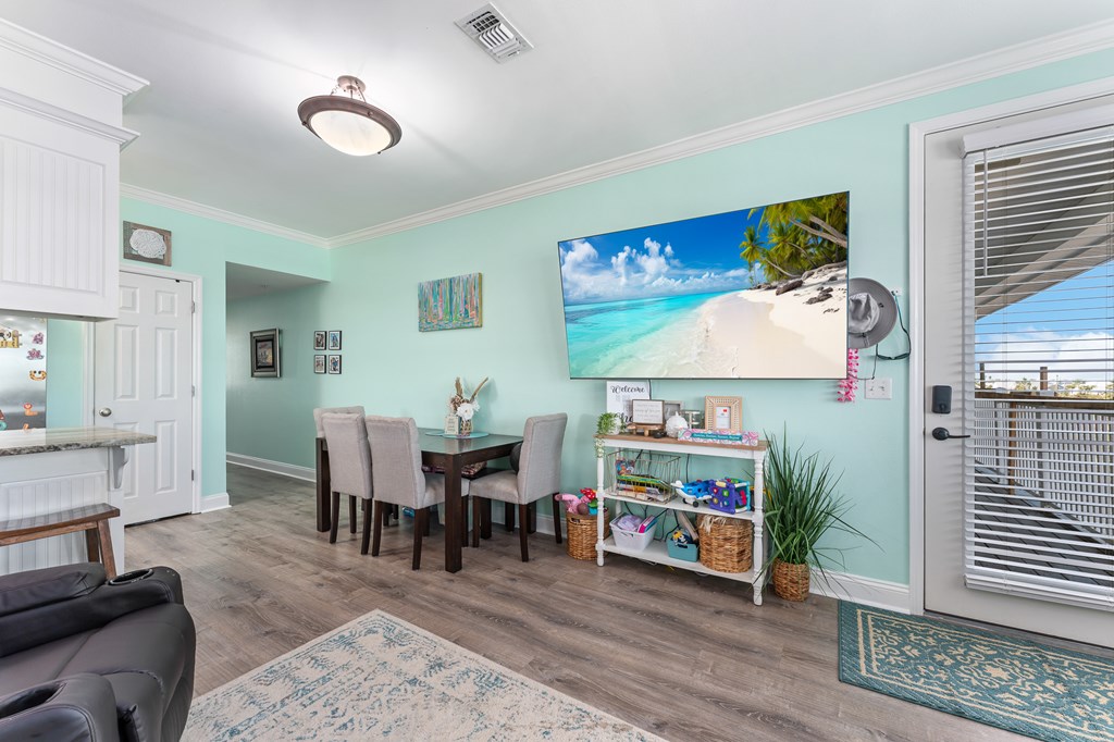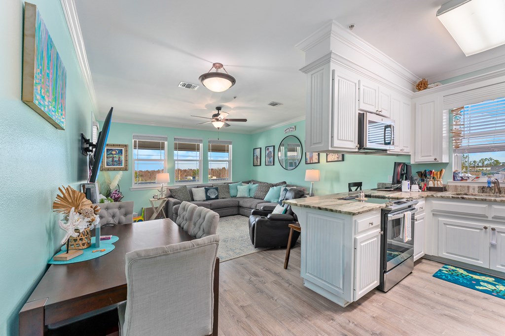 Escape to Mexico Beach! Offered fully furnished and move-in ready, this top-end 3-bedroom, 3-bath condo is just a golf-cart ride from the white sands and the laid-back coastal lifestyle you've been craving. Inside, you'll love the wide-open kitchen and living area—perfect for entertaining or unwinding after a day at the beach—plus luxury vinyl plank flooring in the main living space, granite countertops, and upgraded showers in the bathrooms. A fun bonus: there's a cute under-stair game room for the kids, and a spacious bunk room with two bunkbeds—ideal for hosting family and friends. Located in the Palmetto Plantation condo community with a pool, this is a great fit for full-time living, a second home, or a long-term rental. Come trade the fast pace for the slow, peaceful charm of Mexico Beach.