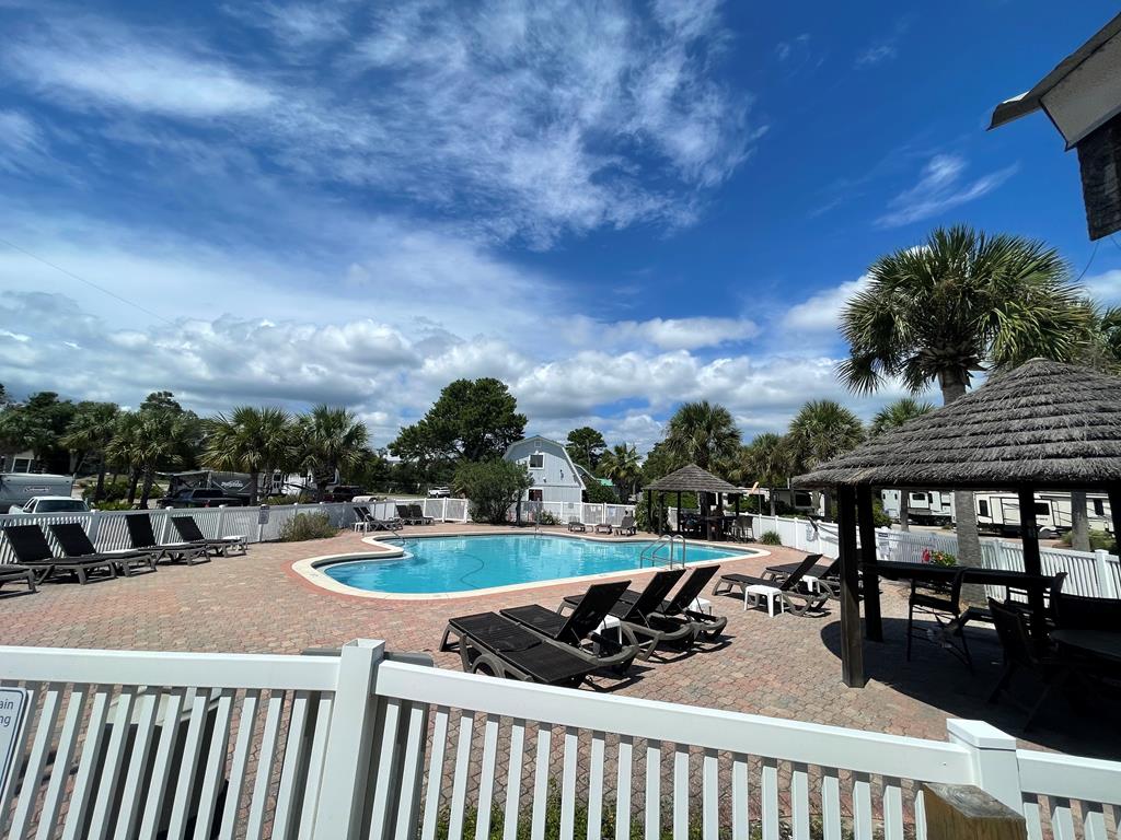Coastal Cottage - The Blue Heron. Have your cake and eat it too! Own this Charmin coastal retreat while letting it pay for itself. The Blue Heron is a beautifully maintained, income-producing cottage located in the Carrabelle Beach RV Resort. Ideally situated just across the street from the stunning Carrabelle Beach Park, you'll enjoy sugar-white sand, pet friendly shores, and breathtaking coastal views. The resort offers fantastic amenities, including a heated pool, arts and crafts, live music, a fenced dog park, a fish-cleaning station,, and an activity center with a pool table and full kitchen. Plus, a brand-Ac has just been installed for year-round comfort. Don't miss this opportunity to own a slice of paradise.