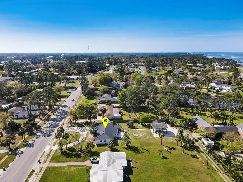 From Hwy 98, turn onto 16th St., right onto Monument Ave., house will be on the right, see sign.
