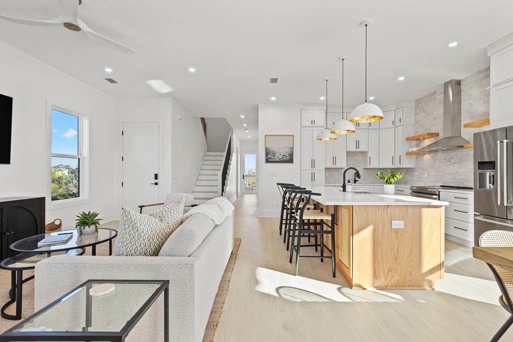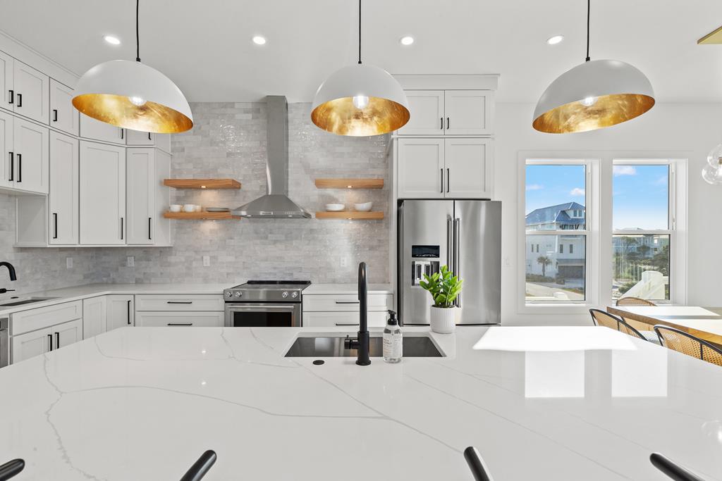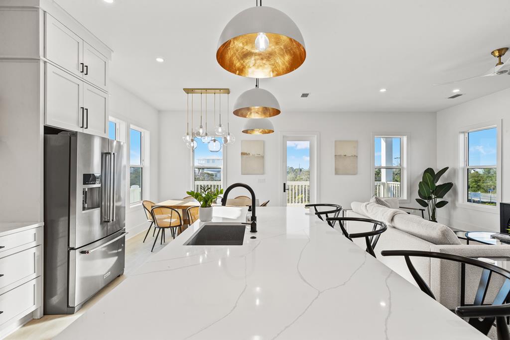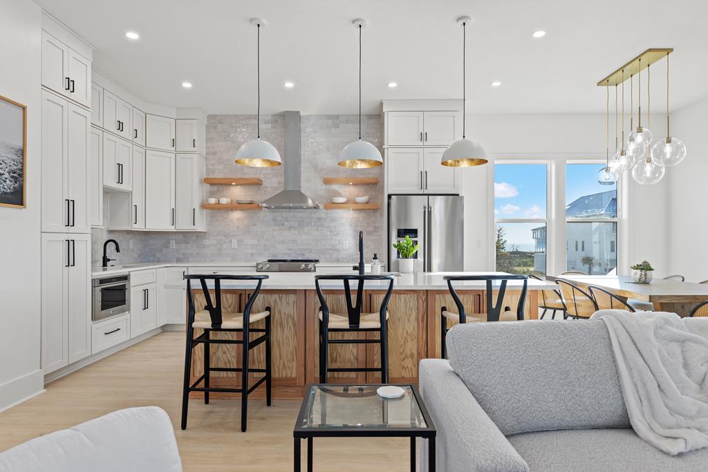 This brand-new construction offers the ultimate coastal living experience, located just steps from the beach in one of the most coveted areas. With high-end finishes, an open floor plan, and multiple decks to enjoy the stunning views, this home is all about luxury. You'll appreciate the light-filled open concept layout designed for modern living and effortless entertaining. The kitchen features stainless steel appliances, custom cabinetry, and an island that seamlessly flows into the spacious living and dining areas. Decks on both the front and back provide the perfect spaces to relax, dine, or entertain while taking in the sights and sounds of the nearby beach. Abundant windows throughout provide plenty of natural lighting. Each room has been thoughtfully designed and decorated to capture the essence of beach living. Perfect for those seeking a luxury beach lifestyle, this home blends elegant design with an unbeatable location. Don't miss the opportunity to make this dream beach house yours—schedule a private tour today! Some dimensions were obtained from the Gulf County Property Appraiser website, please verify if important.