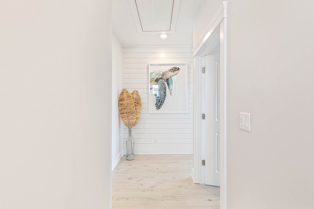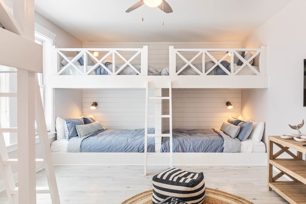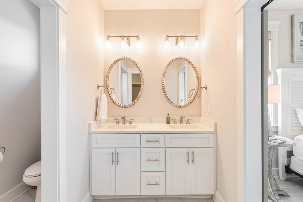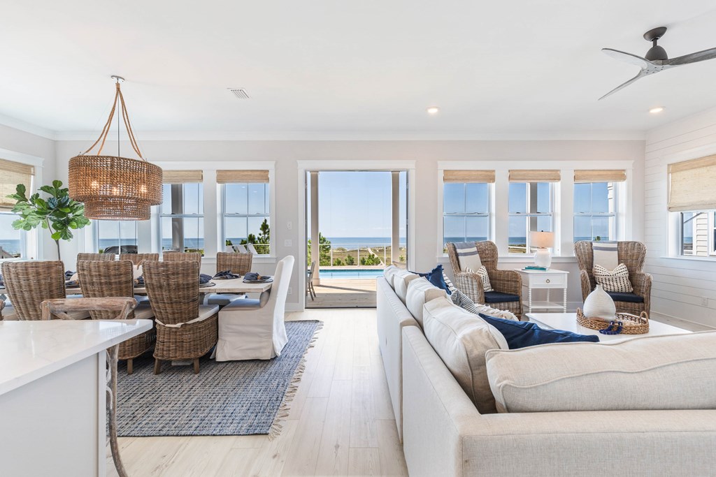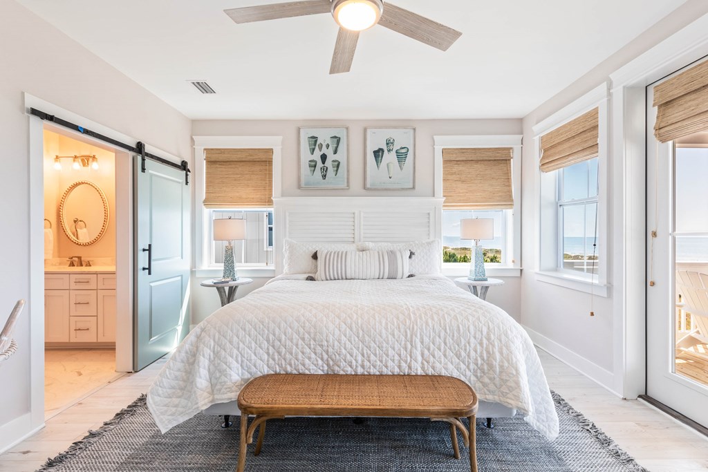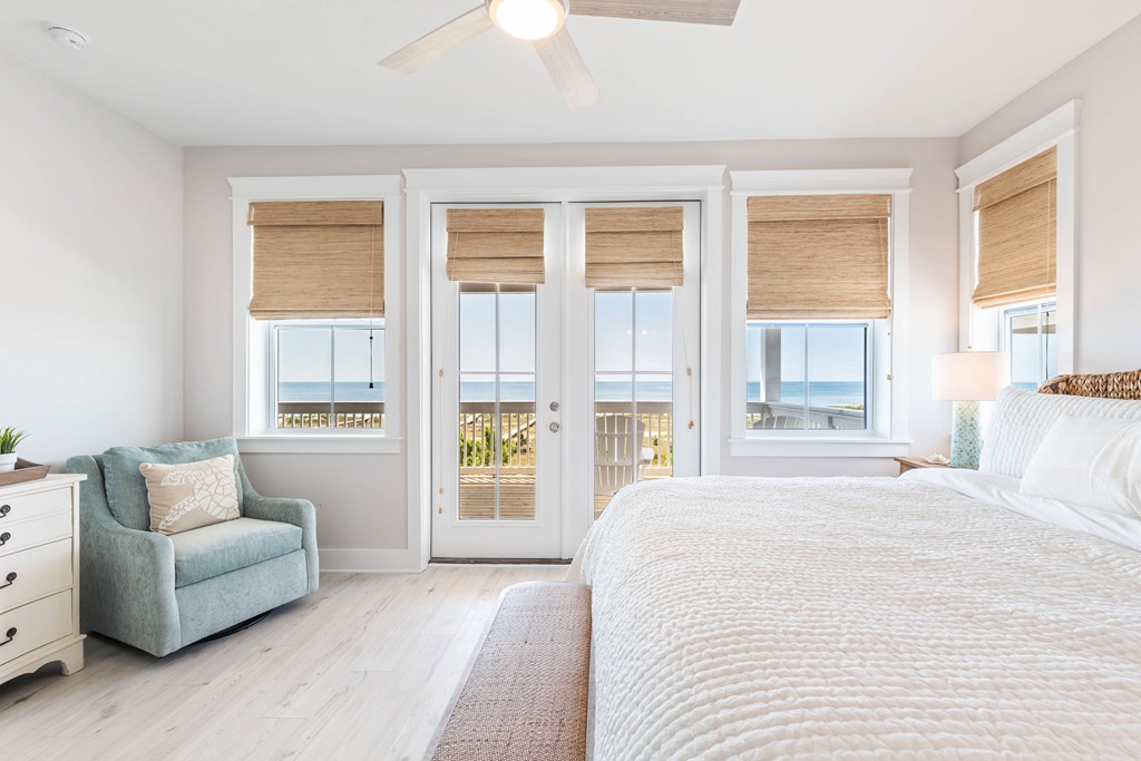 Hana Beach House is a 3,010 sq ft, 5-bedroom, 5-bath luxury home in the gated Villa del Sol community. Built in 2023, it offers two expansive Gulf-view decks, a private elevated pool, and a boardwalk directly to the beach. The open living, dining, and kitchen area features hardwood floors, quartz countertops, modern appliances, and stunning ocean views. The first floor includes two bay-view master bedrooms with king beds—one with an en-suite bath—plus a full bathroom, laundry room, elevator, and an ice machine. Step outside to the deck and enjoy the heated-optional private pool. The second floor features two oceanfront master suites with king beds, private baths, and shared access to a large Gulf-facing deck. A spacious bunk room includes three bunk beds (two Full-over-Queen and one Twin-over-Twin) and its own full bathroom with bay views. A private boardwalk brings you to miles of white sand and clear Gulf water, perfect for beachcombing, swimming, kayaking, fishing, or relaxing in the sun. Port St. Joe is just 15 minutes away with shops, dining, galleries, and ferry service to St. Vincent Island. Nearby Salinas Park offers pickleball courts, playgrounds, a fire pit, and access to a 19-mile paved trail. Apalachicola, known for its historic charm and seafood, is about 25 miles away. Villa del Sol features gated access, brick-paved streets, beach boardwalks, a community pool, and pickleball courts. Enjoy easy Bay access for kayaking and fishing, plus miles of pet-friendly shoreline. Some dimensions and measurements were obtained via the Gulf County Property Appraiser's website. Please verify if important.
