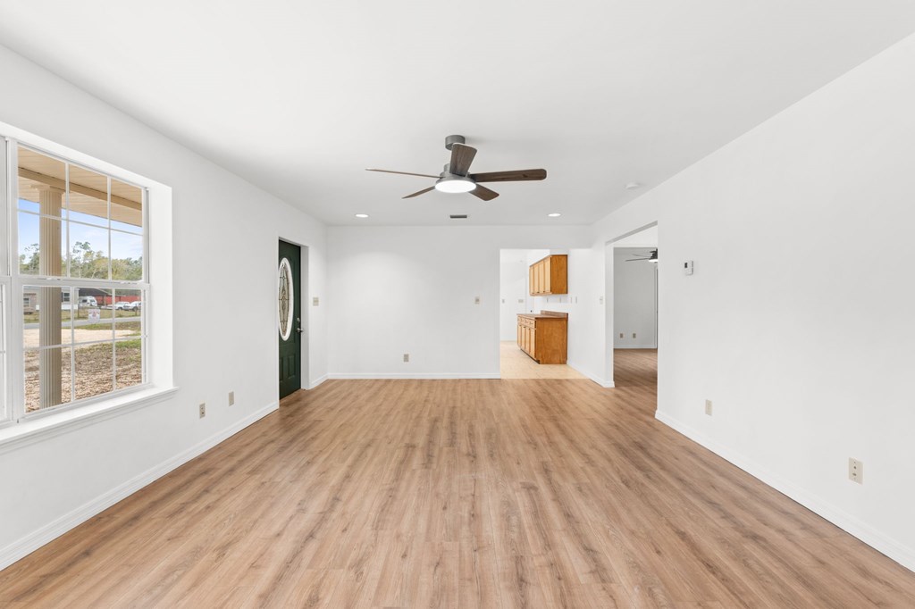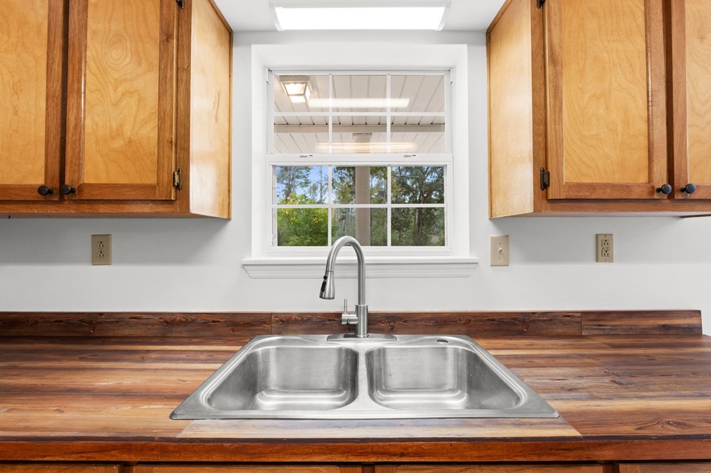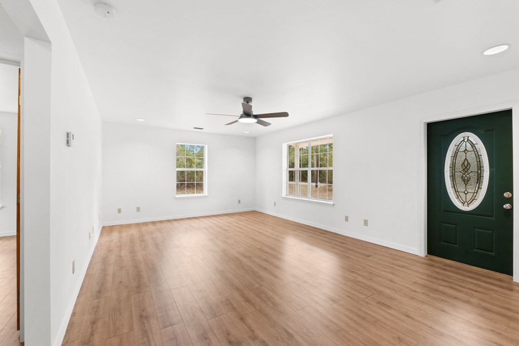 Freshly updated and move-in ready, this 2008-built two-bedroom, one-bath home is situated on just over a quarter-acre of X (not) flood zone land and has been thoughtfully restored to like-new condition. The living area and both bedrooms feature low-maintenance luxury vinyl flooring, while the kitchen and bath are finished with durable, timeless tile. The kitchen showcases refinished real wood cabinetry, butcher block countertops, and a mobile island that adds versatility and generous workspace. A dedicated dining area is located just off the kitchen, with an adjacent laundry/mechanical room offering exterior access for added convenience.The master bedroom includes a walk-in closet, and jack and jill style access to the bath. Outdoors, enjoy a full-width covered front porch ideal for relaxing, along with a double carport set on a concrete pad. A well-maintained property that blends quality updates with everyday functionality. Location is ideal for the outdoorsmen, with close proximity to three freshwater boat launches in the Dalkeith area and just a short drive to area beaches. Schedule your showing today!
