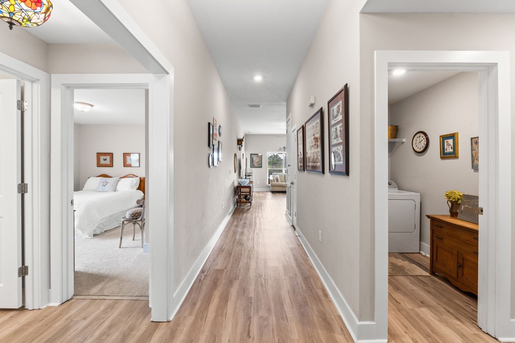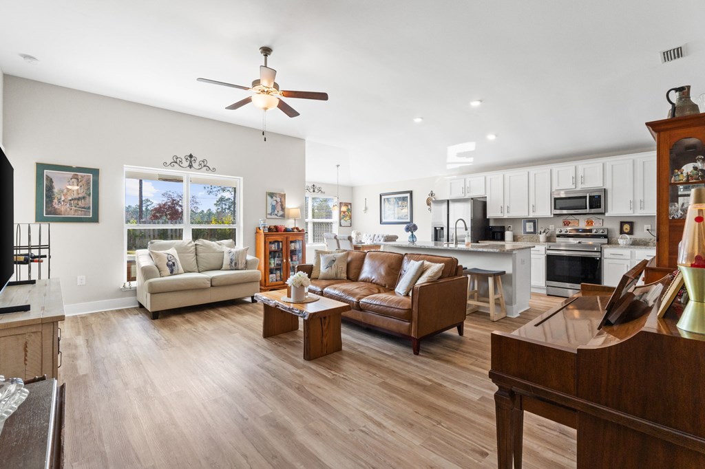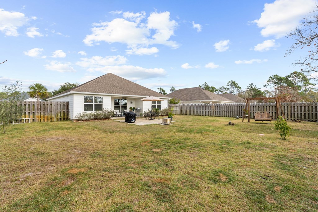 Cul-de-sac street Fenced backyard Brick paver patio Granite countertops Near walking path to downtown Port St. Joe Located in the Heron Walk subdivision, this 4-bedroom, 3-bath home offers approximately 1,834 heated and cooled square feet with 2,368 total square feet on a cul-de-sac street lined with mature live oaks throughout the neighborhood right-of-way. The layout provides flexible living space with four bedrooms and three full baths suitable for a variety of uses. The kitchen features granite countertops, stainless steel appliances, and an efficient connection to the living and dining areas for daily living and entertaining. Recent improvements include new flooring and a new stove. Smart home technology is integrated throughout the home. A tankless gas water heater supports on-demand hot water, and the attic space over the garage has been spray-foamed to enhance energy efficiency and climate control. Outdoor features include a fenced backyard with irrigation, gutters, fruit trees, olive trees, a brick paver patio, and a backyard swing. The yard offers usable outdoor space with established landscaping and room for a variety of activities. The property is located near a designated walking path that provides access toward downtown Port St. Joe and local amenities. Convenient access to Highway 98 provides connectivity throughout the region, with downtown Port St. Joe approximately 1.5 miles away, St. Joe Beach about 5 miles south, Mexico Beach roughly 12 miles east, and Apalachicola approximately 15 miles west. Positioned in an established subdivision with paved streets and mature landscaping.