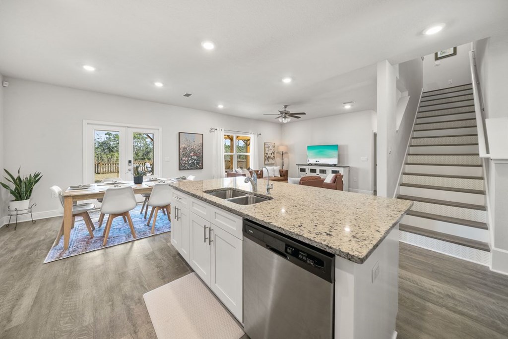 Welcome to coastal living at its finest in WindMark Beach. This beautifully designed residence blends modern comfort with relaxed seaside style, offering five bedrooms, three baths, and more than 2,500 square feet of thoughtfully planned living space—ideal for a primary home, second residence, or investment opportunity. The main level is designed for everyday ease and entertaining, centered around an open-concept layout that connects the kitchen, dining, and living areas. Granite countertops and stainless appliances anchor the kitchen while maintaining a clean, modern aesthetic that flows naturally into the surrounding spaces. A second living area adds versatility, creating room for movie nights, games, or a quieter retreat away from the main gathering space. Upstairs, the primary suite is positioned for privacy, offering a calm and comfortable escape at the end of the day. Outdoor living is a defining feature of this property. The spacious backyard has been carefully maintained and arranged for both relaxation and entertaining, complete with a furnished patio, outdoor kitchen and grill area, a wood-burning fire pit, and a swing set that makes the space inviting for all ages. Recent enhancements include an expanded paver driveway for additional parking and new sod installed this summer, elevating both curb appeal and functionality. Residents enjoy access to resort-style amenities throughout the WindMark Beach community, including multiple pools, a fitness center, playground, boardwalks to the beach, and miles of bike and walking trails. The Village Town Center is just a short golf-cart ride away, offering convenient access to The Mill Mercantile & Social, Bruno's Pizza, and more. This golf-cart-friendly setting also features pet-friendly beaches and is located just 3.5 miles from Port St. Joe and Point South Marina, placing dining, boating, and waterfront activities within easy reach.