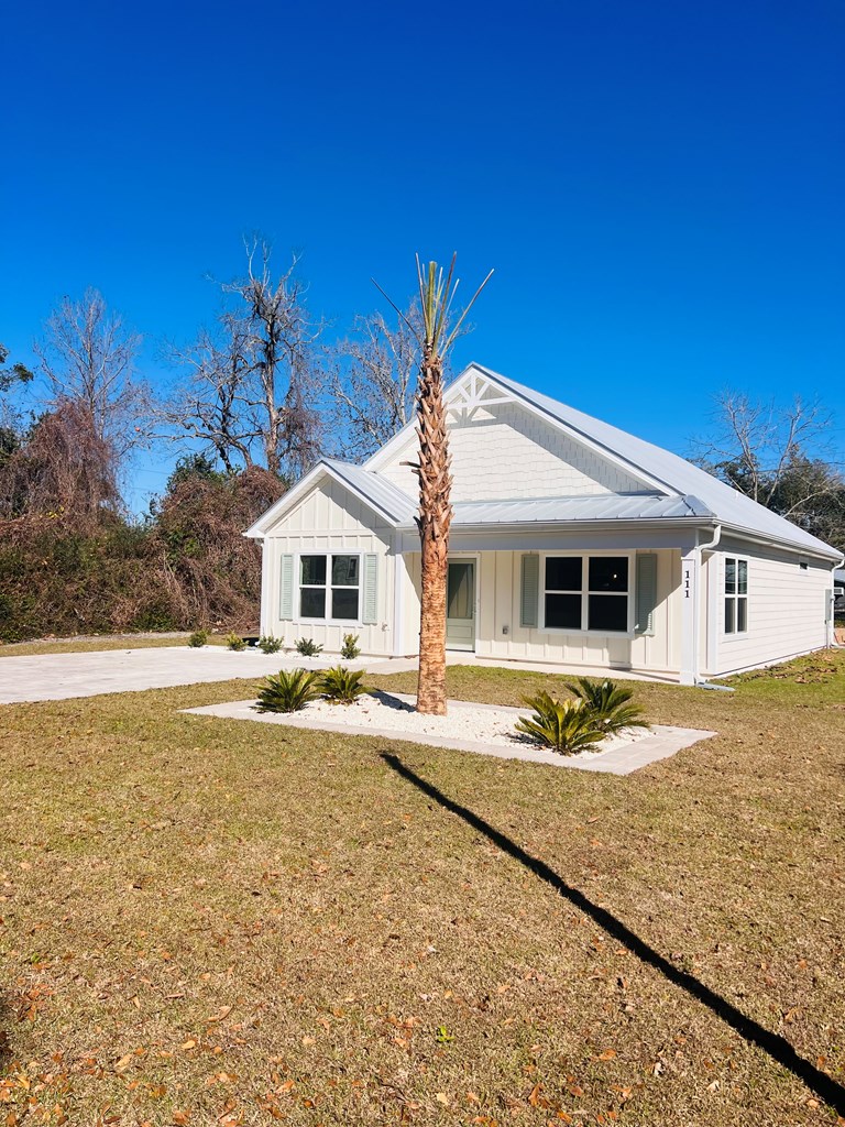 New construction and brand new furnishings. City of Apalachicola's O/R zoning allows short-term rentals. FEMA X FLOOD ZONE SELLER OFFERING $10k towards Buyer closing costs. Laid back coastal living with bonus rental potential in a quiet neighborhood just minutes from downtown, shops, and the waterfront—walk, bike, or cruise over by golf cart.This solidly constructed 3-bedroom, 2-bath home is loaded with smart upgrades, including spray foam insulation in the walls and roof, a standing seam metal roof, and durable Hardie board siding. Inside, you'll find granite countertops throughout, a granite kitchen backsplash, Moen faucets, and stainless steel appliances with an oven that even has an air fry setting. Outside, enjoy paver driveways, great parking, a shallow-well irrigation system, and a ready-to-go barbecue grill for casual dinners.You'll love the enclosed golf cart garage with keyless entry, plus wiring for a security alarm. It's also furnished and includes five smart televisions. And for boat lovers: less than 1 mile to Ten Foot Hole Boat Ramp. Schedule your showing and come see it today.