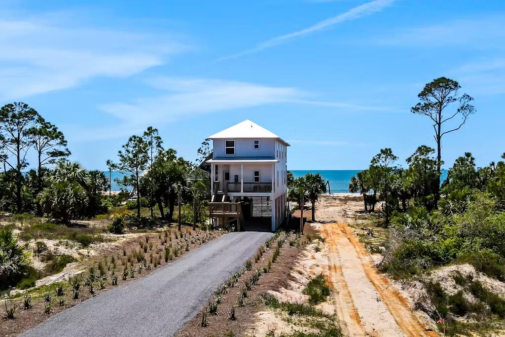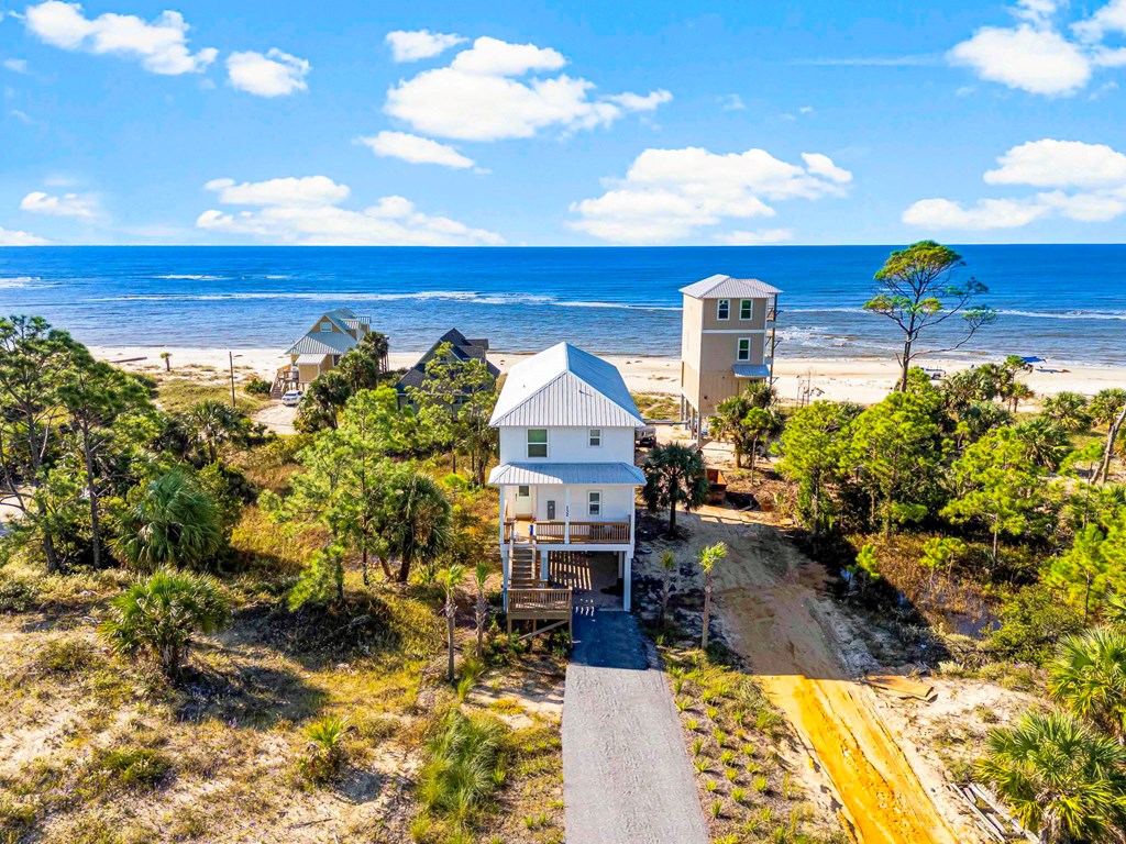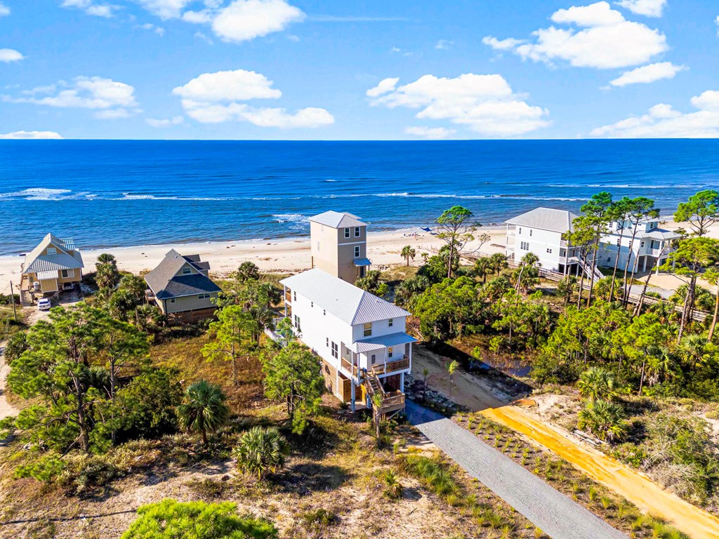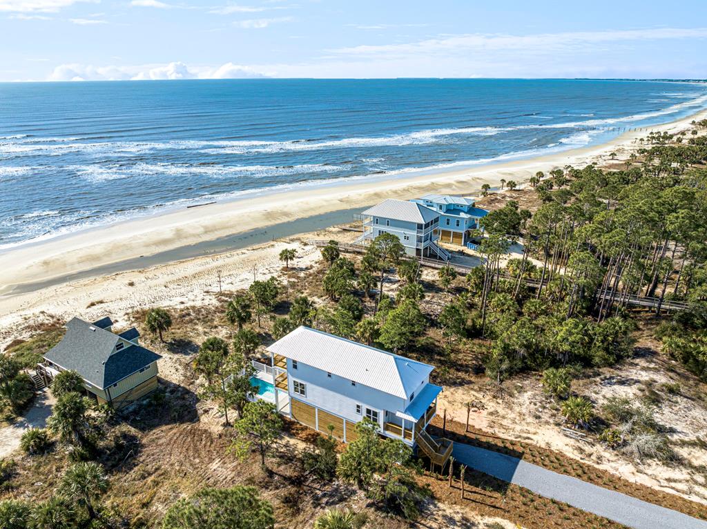 Come, hear and see the gulf waves, you can feel the strong ocean breeze from this Tier 1 lot. This recently constructed home has just been fully furnished and is turnkey ready for your pleasure. Your vacation ready home awaits you. Enjoy breathtaking views of the Gulf from Indian Pass. This New Construction home features double master bedrooms, One on the main and another one the second floor. There are 4 full bathrooms plus a half bath. Plenty of room for guest. Kitchen and baths feature granite counter tops, tile and luxury vinyl flooring. Newly built heated pool so your guest can enjoy themselves all year long. Brand new state of the art appliances, all in one washer/dryer. Furniture negotiable