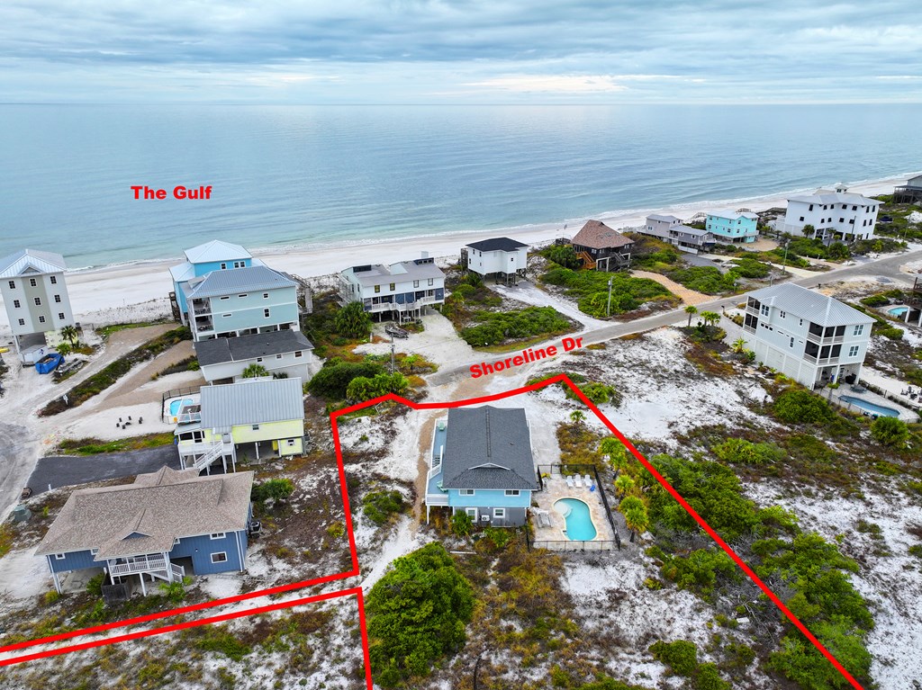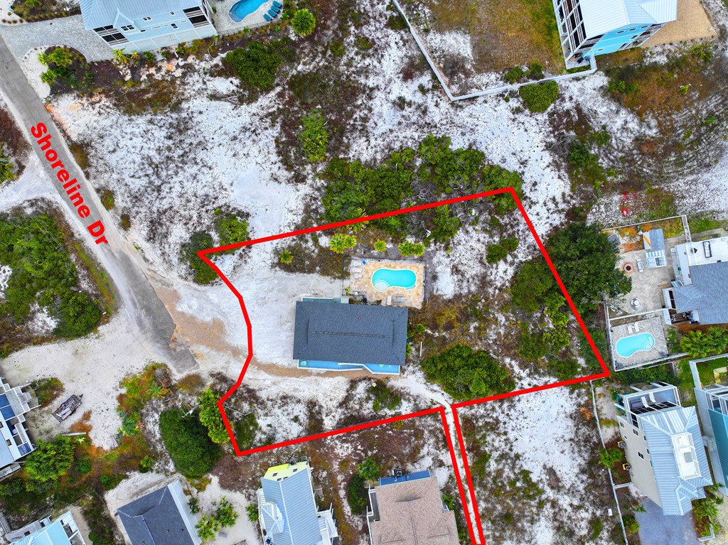 Cape San Blas Road North to Sago Drive, left on Sago, left on Shoreline Drive, home is at the end on the left.