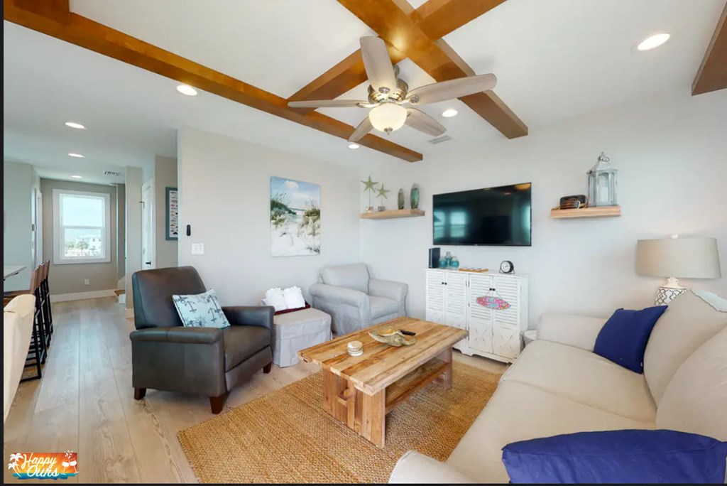 Well loved home with Elevator and Rooftop Deck! Watch the sunsets from your rooftop! Nothing was overlooked in this home. High end appliances including gas oven and stove. The 2 bedrooms with queen beds have their own private baths. 2 built-in bunks in the hallway allow everyone to have room to roam. Bedrooms are on the lower level, and the main living room and kitchen are upstairs where the views are spectacular! For guests convenience, a half bath can be found adjacent to the living room. There's even a huge walk-in pantry with a barn door! The dining area is open to the kitchen and living room and the balcony is right there! The family room sofa opens into a queen bed if needed. There are smart TV's in all bedrooms and the family room. The beach is an easy 60 second walk and there's no walking across a busy street! Everything is at your fingertips.