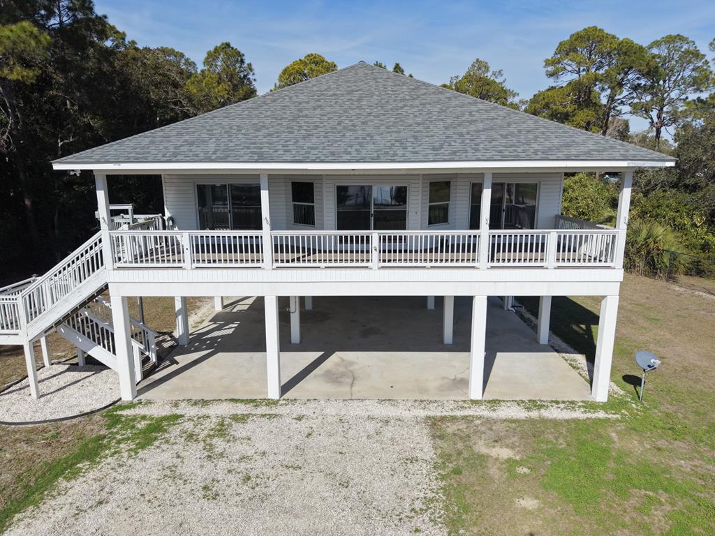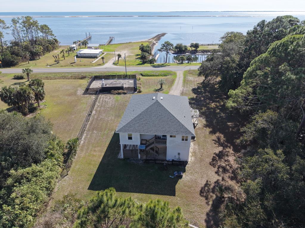 Wake up to coastal living with sweeping views of Apalachicola Bay and immediate boating access across the street. Located directly across from Lanark Marina, this three-bedroom, three-bath home offers the benefits of waterfront living without the expense or upkeep of a private dock. Launch your boat in minutes and explore Dog Island, nearby sandbars, and world-class fishing spots. The open concept living and kitchen area is designed to showcase the panoramic views and natural light. The remodeled kitchen features quartz countertops, new stainless-steel appliances, and plenty of cabinet space. The expansive primary suite offers stunning water views, a large walk-in closet, and a private bath with dual vanities. Two additional bedrooms and full bath provide comfort and flexibility for guests or rental use. Recent upgrades include a newer roof (2022), updated HVAC, water heater, and electrical systems for added peace of mind. With no HOA, there's ample room for a boat, RV, and trailer parking. The home is currently unfurnished and ready to be customized to suit your needs or configured as a short-term rental. An assumable flood insurance policy may offer notable savings. The low-maintenance yard allows for more time spent on the water and less upkeep and space for your boats. Located just minutes from downtown Carrabelle and local seafood markets, this property is well-suited as a full-time residence, vacation getaway, or income-producing investment. Come take in the view, this coastal home speaks for itself. Buyer to verify all information through inspections, survey, elevation certificate, appraisal, or preferred due diligence. Taxes and insurance are specific to the current owner and may change at closing.