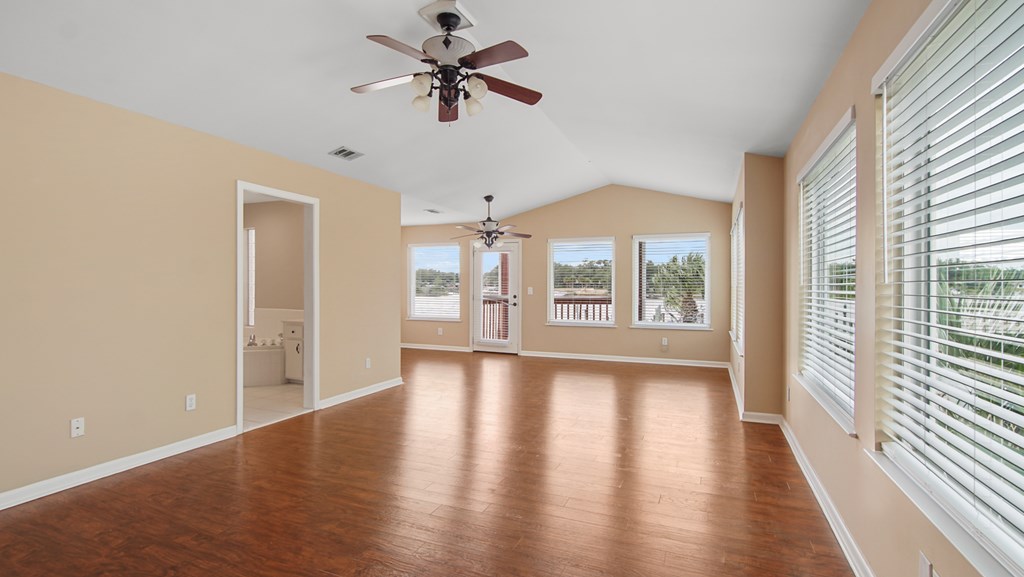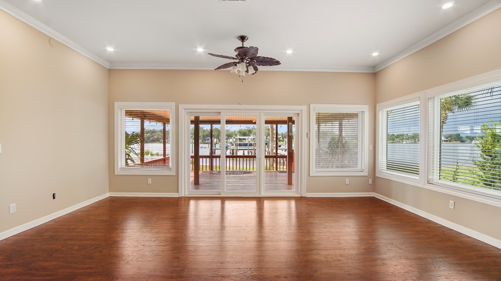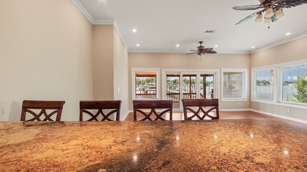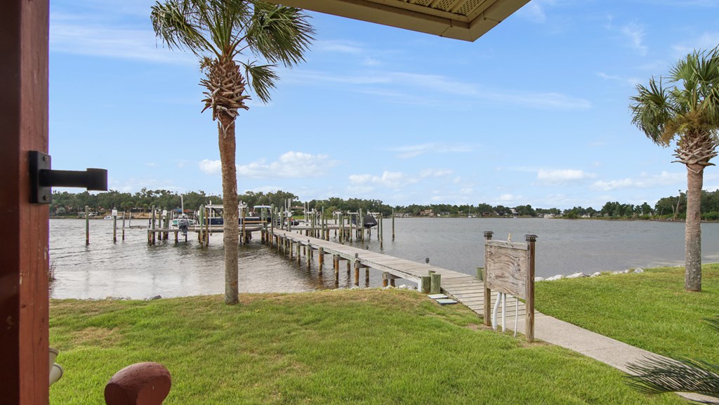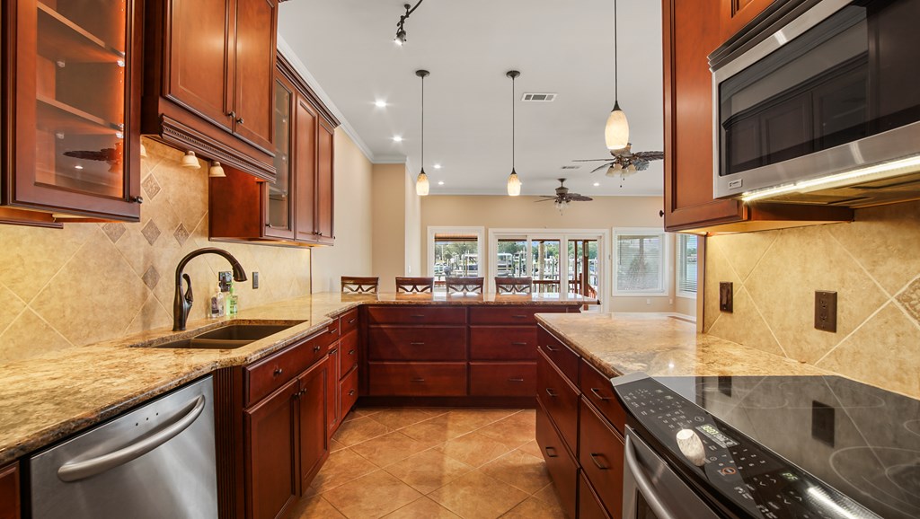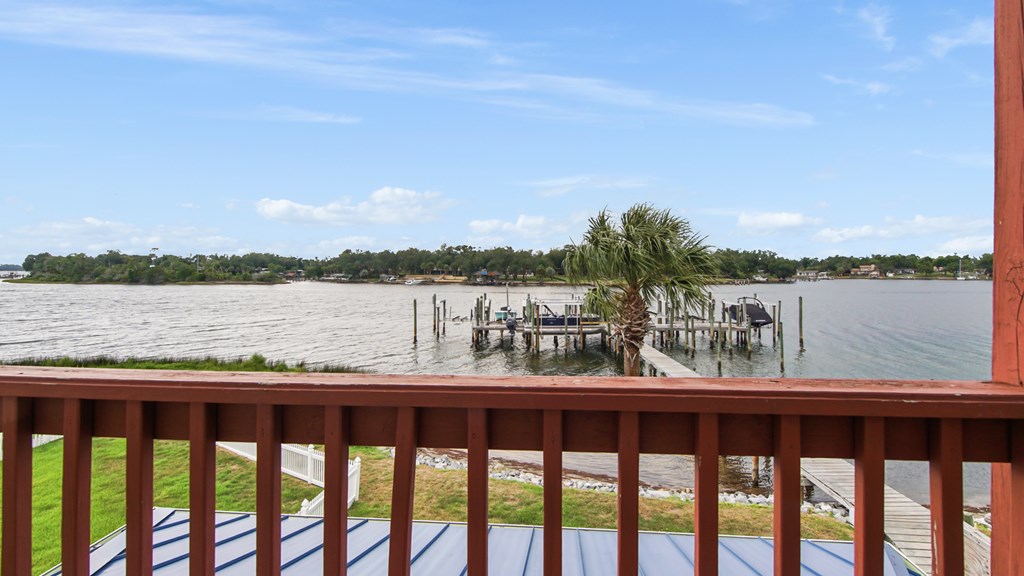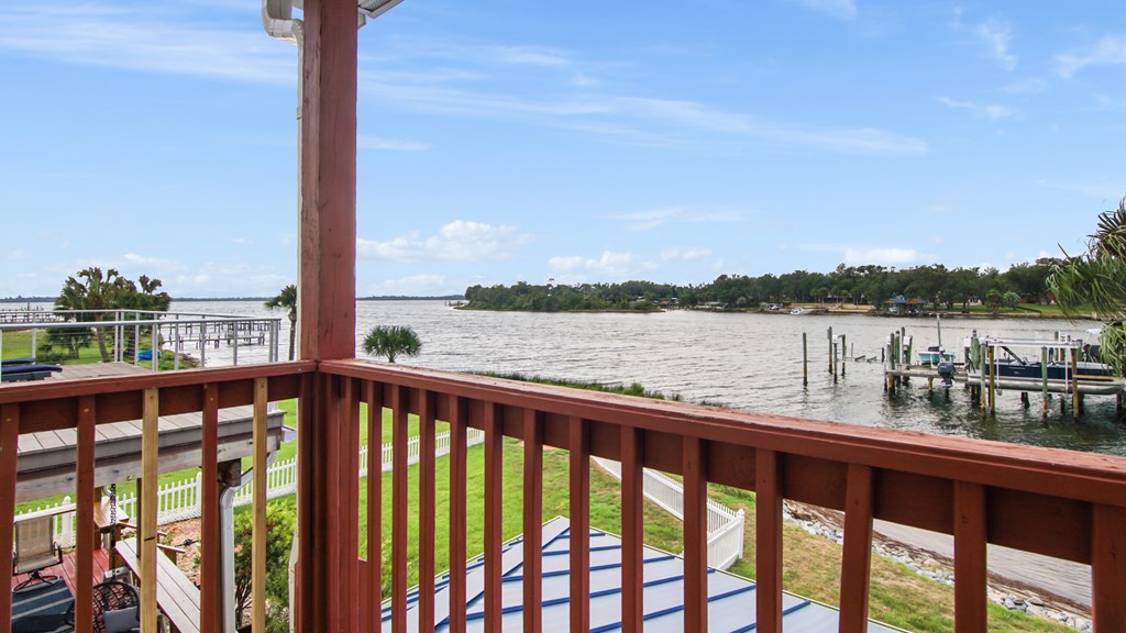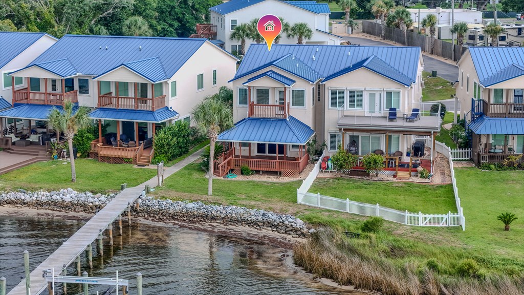 Welcome to Paradice, where you can enjoy beautiful sunsets over Pitts Bayou. This home offers easy access to deep water for boats with a 6-foot draft and includes a 16-foot wide boat slip. A full-service marina is just a quarter mile away. As you enter, you'll find 10-foot ceilings with recessed lighting throughout. The kitchen has dark wood cabinets and granite countertops, with a breakfast bar large enough for four. Just off the kitchen, you will find a full-sized washer and dryer with plenty of shelving behind double doors. The double garage access is located just off the kitchen, which includes an outdoor shower, laundry sink, and shelves on each side with plenty of counter space for all your tools and hobbies; back inside, you will find a half bathroom and a sizable closet. Back through the kitchen, you will find a living area fit for royalty with impressive 10-foot ceilings, upgraded lighting, and a Bay view captured through the large glass sliding doors that lead to a very large covered porch overlooking the Bay and dock, where you will surely enjoy many evenings with your nearest and dearest. Back inside and up the stairs, you will find the waterfront primary bedroom that features a private covered balcony, a vaulted ceiling, a walk-in closet, a soaking tub, and a separate shower, along with two more sizable bedrooms and a full-sized bathroom on the opposite side of the home. This one has it all and is ready for new owners, so call your favorite Realtor today for more information or to schedule a showing.