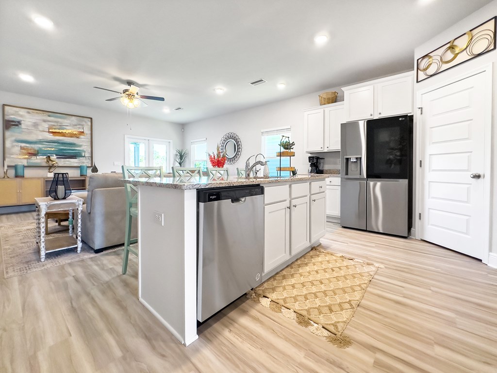 Welcome to 915 Backwater Road, a beautifully designed coastal retreat where modern luxury meets laid-back beach living. Thoughtfully styled with amazing coastal design, this home offers the comforts of a private luxury residence with the amenities of a resort—perfect for creating unforgettable memories in St. Joe. Indulge in the ultimate coastal getaway near sandy beaches and clear Gulf waters. Inside, you'll find stylish living spaces, a modern kitchen with granite countertops and stainless steel appliances, and an open layout ideal for relaxing or entertaining. Step outside to the back patio and enjoy peaceful water views while dining outdoors or grilling after a day at the beach. This unique Kennedy floor plan features 4 spacious bedrooms and 3 full bathrooms, including a private mother-in-law suite with its own entrance, kitchen, laundry, and heating/cooling—ideal for extended family or added privacy. Engineered vinyl plank flooring, 9-foot ceilings, and designer finishes elevate every space. Enjoy access to WindMark Beach's incredible amenities, including heated community pools (seasonal), boardwalks, walking and bike trails, playgrounds, gym, dog park, restaurants, and deeded beach access. Take the golf cart to the Village Center for a swim or a bite to eat, or explore the area with provided bikes and beach gear. Nearby attractions: WindMark Beach – 4 min drive Cape San Blas Lighthouse – 10 min drive Constitution Convention Museum – 12 min drive Family-friendly and pet-friendly, with high-speed Wi-Fi, a dedicated workspace, ample parking, and a tranquil setting—915 Backwater Road is the perfect blend of comfort, convenience, and coastal charm.