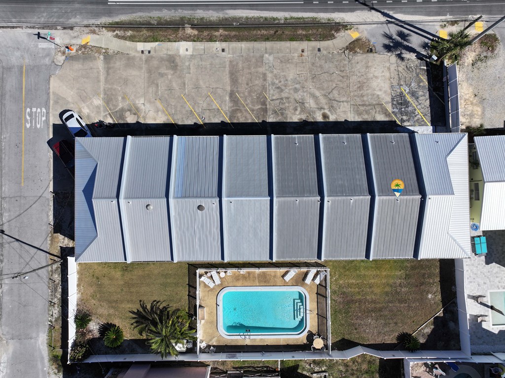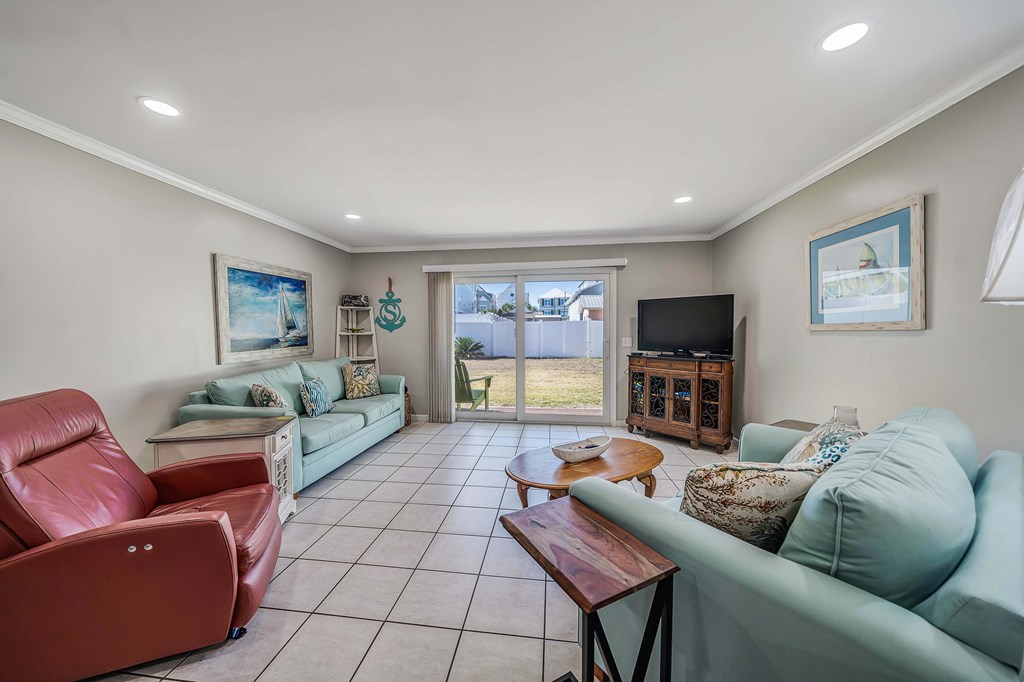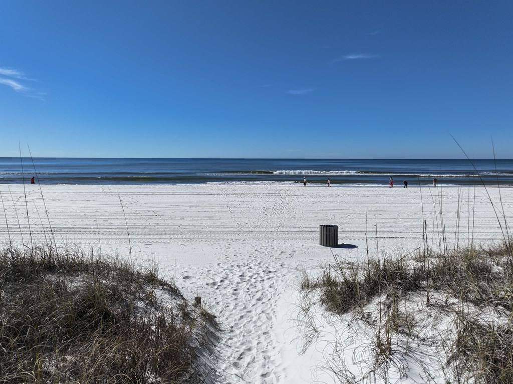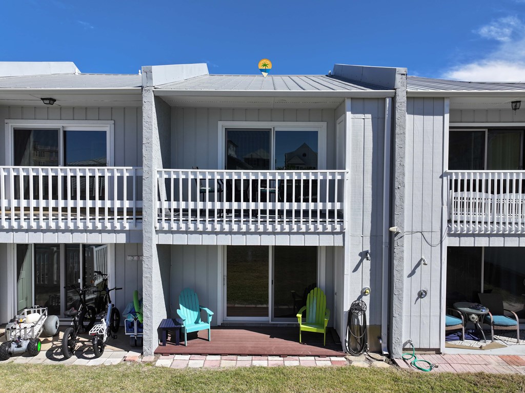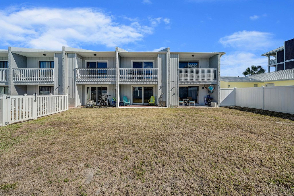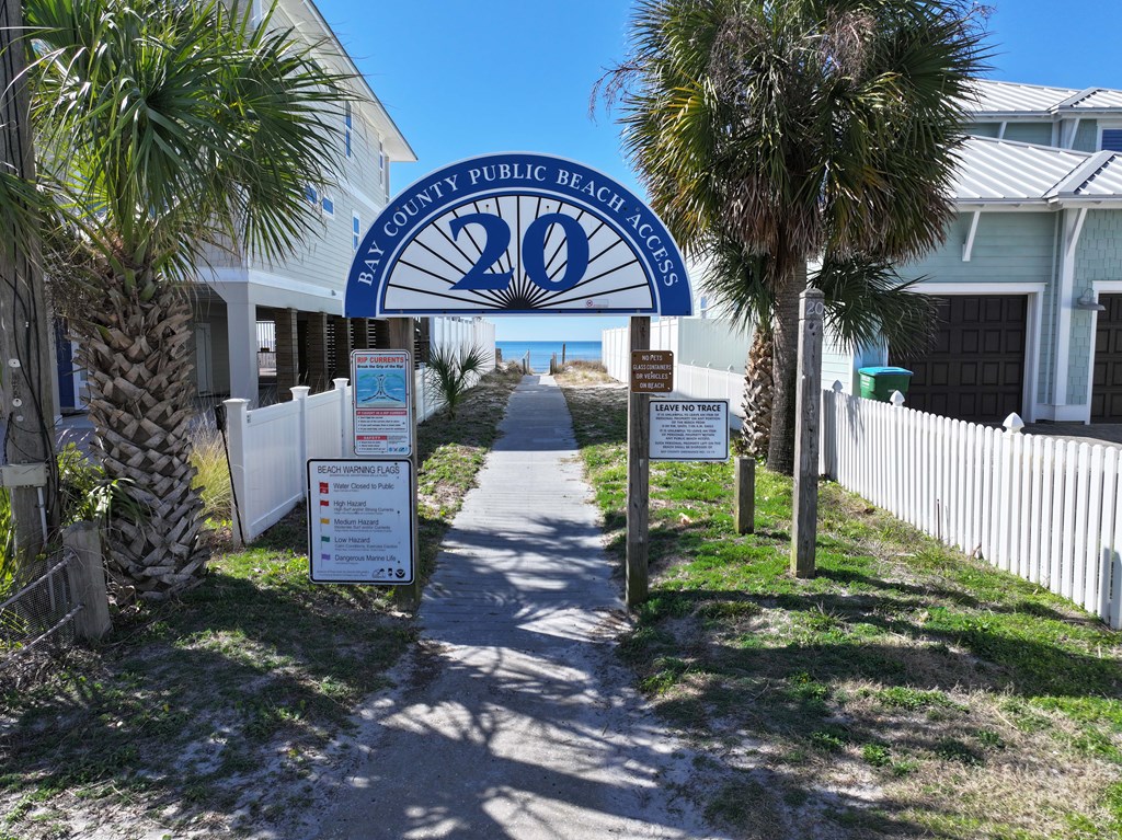 Looking for your own beach getaway? This townhome is just 100 feet from the sands of Panama City Beach with no road in between. Spacious and clean, the unit features a master bedroom balcony overlooking the courtyard and pool, plus very low HOA fees and only eight owners—so you'll almost always have the place to yourself. Downstairs offers a large living area with tile floors, a kitchen with solid wood cabinets, ample storage, a breakfast bar, and a full-sized laundry room. The patio and balconies have weatherproof decking and extra storage. Upstairs, both bedrooms fit king beds; the master features double closets and its own balcony with ocean sounds. The four-piece bath features a custom double-sink vanity with a marble countertop. Enjoy upgrades like storm doors, new lighting, LVP and tile floors, stainless appliances, and an upgraded washer and dryer—all included, along with most furniture, making it turn-key. Each unit has its own roof, so there are no shared roofing costs. Located steps from Beach Access 20, this property is for long-term tenants only, ensuring a quiet community with a large pool and patio for relaxing