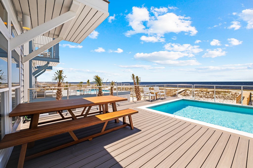 Brand New Gulf Front 6 bedroom 6.5 bath home with elevated pool in the 2nd floor deck. Located in the coveted beach side area of Mexico Beach, this home sits 1.5 blocks away from Hwy 98 cutting down on almost all road noise and a safer location to let kids roam around. It is also a corner lot which adds more parking places available. Construction finished in 2024 this house boasts 4 gulf front suites, 1 large full floor living, dining, and kitchen, 4 stop elevator and will be a true turn-key home fully furnished. This will be an fantastic rental home, if so desired, achieving well over 300k in GRI/year.