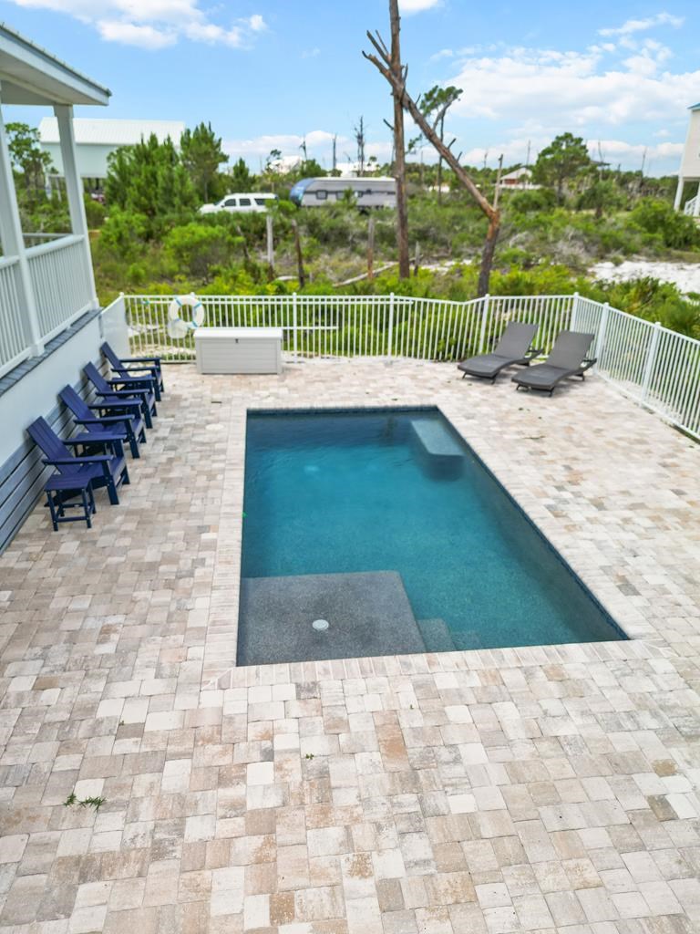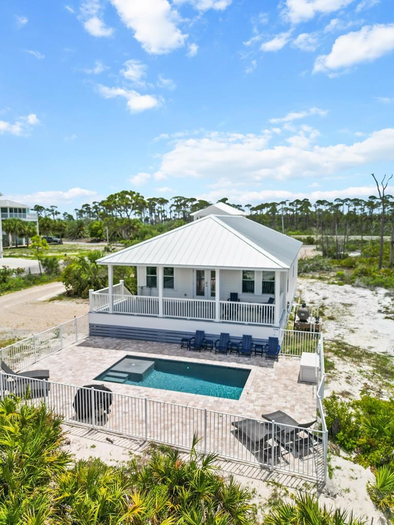 Take a slow down to "three quarter time" in this beautiful beach home only steps away from the emerald colored waters of the Gulf.. What's the best part? NO HOA. Take a dip in the newly added in-ground private swimming pool, with pavers surrounding, and fenced in. Take in the ocean breeze on the sizable covered front porch lounging area. Then, take a step inside to the main living and dining areas which are open concept with vaulted ceilings. Move down the hallway to find three bedrooms, a mermaid tiled shower, and master bathroom. Quality is the word that comes to mind when you see the tile working in the bathrooms and trimmings throughout the home. Truly an oasis on the highly sought after area of North Cape San Blas, where the water is clear and the sand is white as snow. Sandy? No issue, there is also an enclosed outdoor shower conveniently located by the pool and front porch. The property makes for a fantastic short term rental, second, or primary residence as Swirly Sun Dr is a peaceful area with little to no traffic. Step away from the chaos and find your three quarter time in Cape San Blas, Florida.