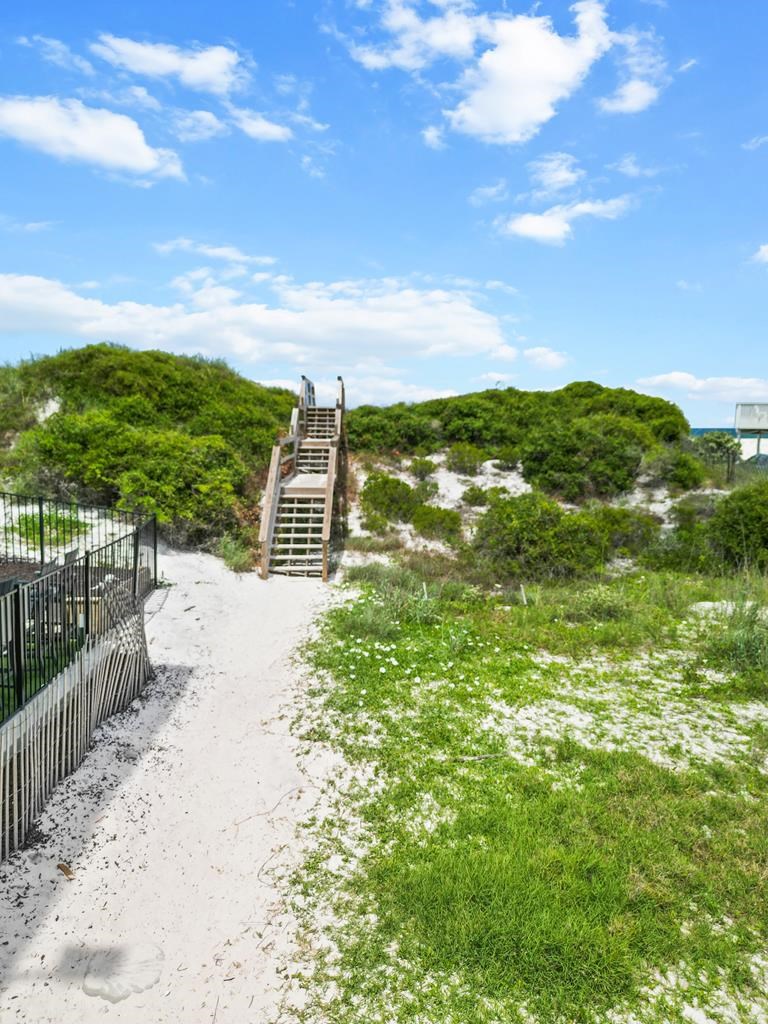 Go onto Cape San Blas. Turn on Seacliffs Drive. Swirly Sun drive is the first left before Barrier Dunes entrance.