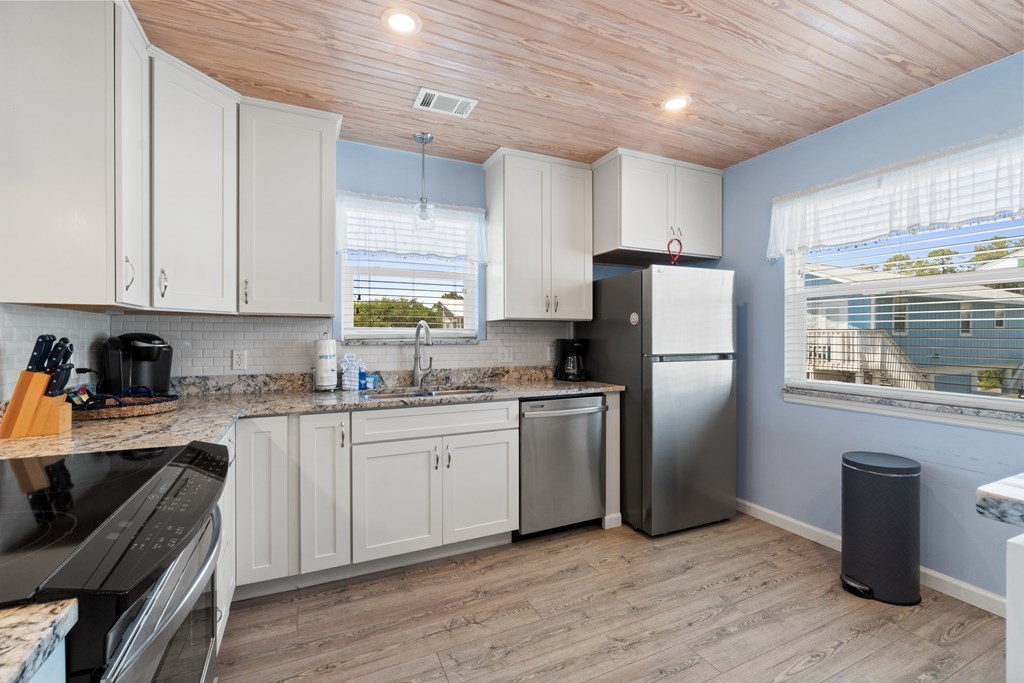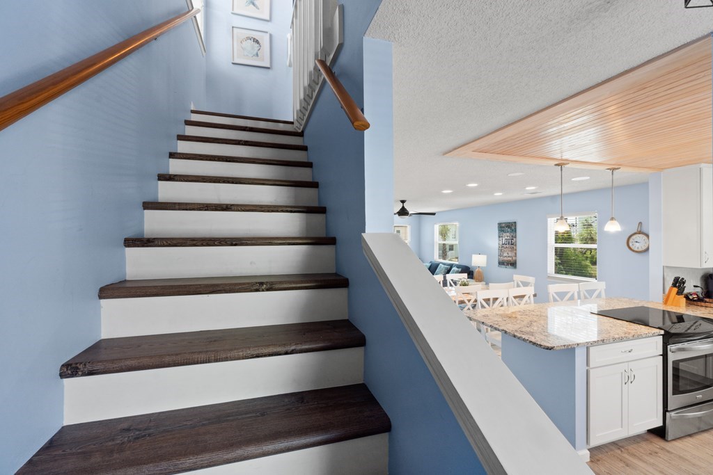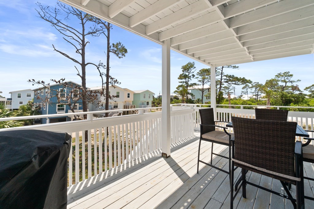 FRESH paint, new furnishings, and patio furniture! Welcome to "Beaches and Dreams", an X FLOOD ZONE property in the Cape Dunes community of Cape San Blas. Very relaxed HOA. The home is freshly painted a soft nautical blue color throughout with complimentary furnishings that come with the purchase. Newly added trundle bedding in the spacious master bedroom separated by gorgeous french doors. Walk out from the king size bed onto the top level private balcony to see breathtaking views of the gulf! The guest room features views of the bay on the opposite side and also includes an en suite bathroom. Downstairs, you'll find the open concept kitchen with a lovely wooden ceiling feature, granite countertops, custom cabinetry, and stainless steel appliances. To your left, you will find another full bathroom which exits to the shared walkway down from the first floor to the beach! A perfect place to wash off all the white sand you collected down at the beach. Immediately, the open concept living room invites you in to sit around the beautiful gas fireplace feature overlooking the gulf. Step out onto the vast covered porch area to enjoy the gulf breeze and sounds of the crashing waves just a short walk away. The bottom level features an enclosed, insulated garage with electricity that has just been added with windows under the house. Plenty of extra room underneath left to add a cozy hang-out space! Don't miss this beautiful Cape property!
