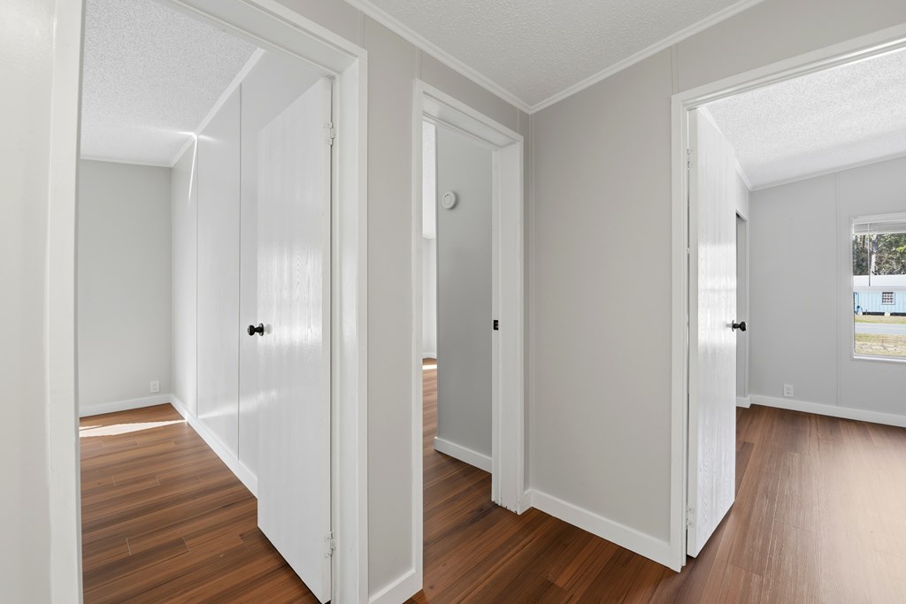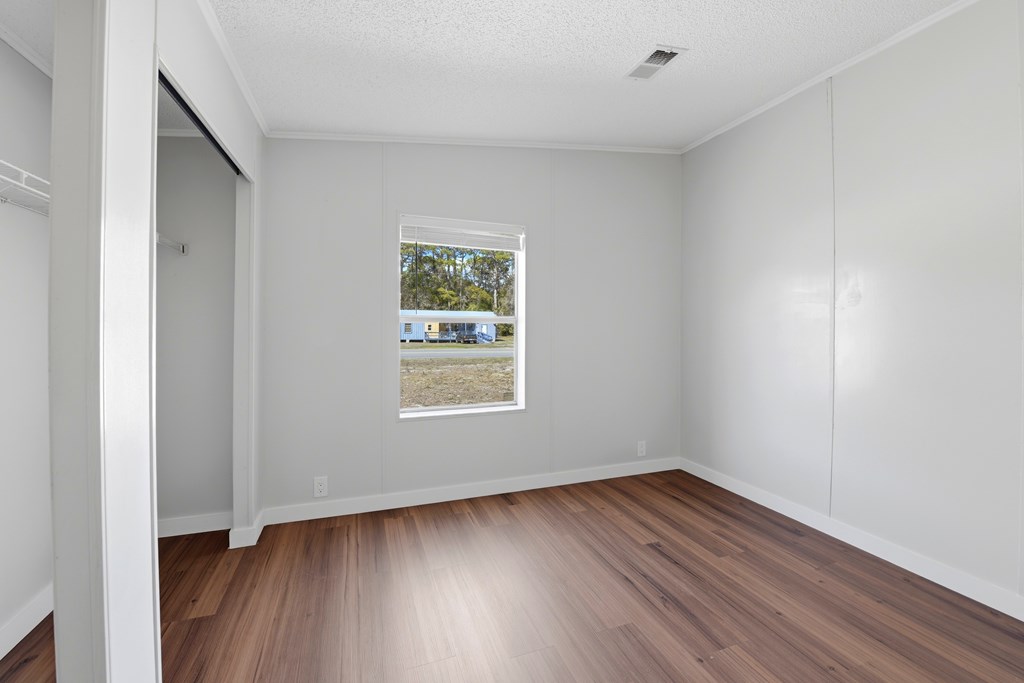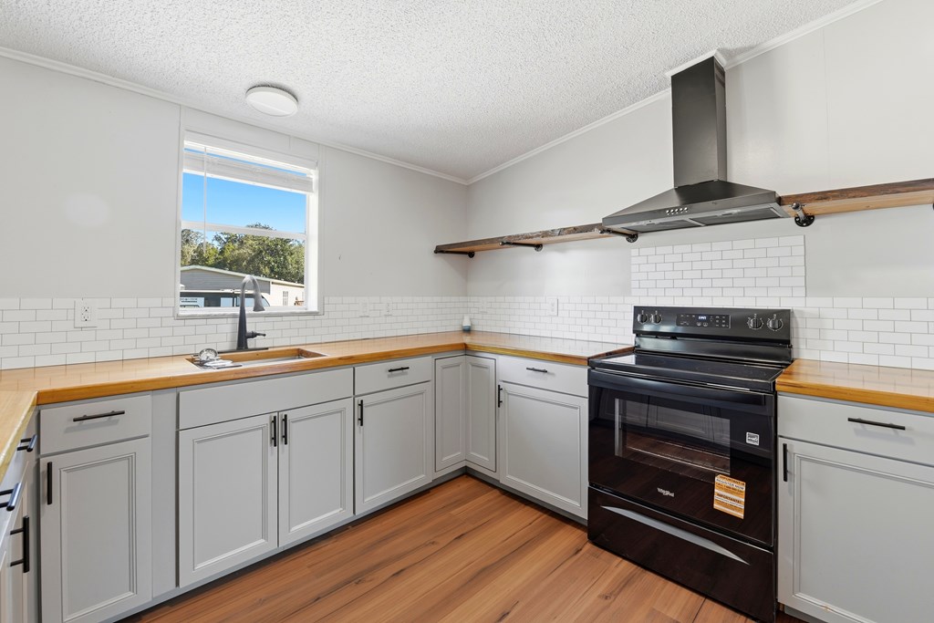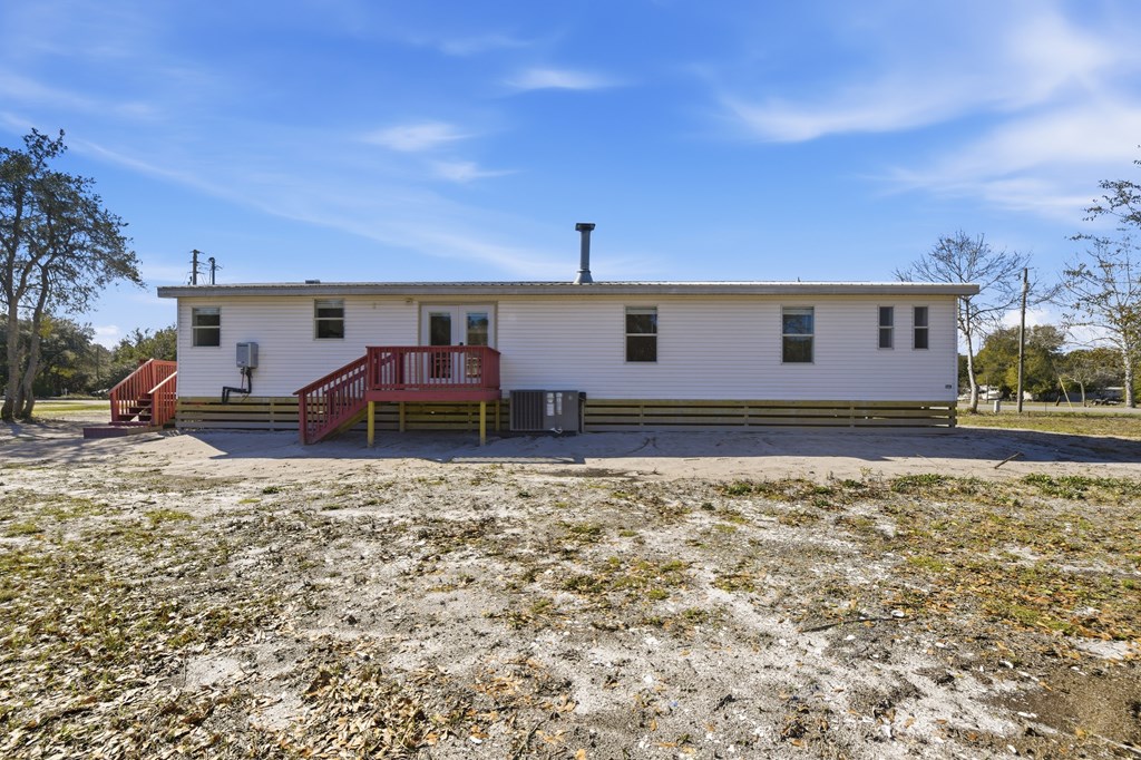 Welcome home to this beautifully relocated modular home, perfectly situated on a freshly cleared 0.4-acre lot with convenient access to public utilities. Offering over 1,900 square feet of thoughtfully designed living space, this spacious four-bedroom, two-bath home blends comfort, character, and modern updates. Step inside to an inviting open floor plan featuring brand-new appliances and a cozy wood-burning fireplace, perfect for gathering on cool evenings. The kitchen is a true standout, showcasing stunning Cypris countertops crafted from the Apalachicola River, adding a unique touch of natural elegance you won't find anywhere else. The oversized primary suite is a private retreat, complete with a generous walk-in closet and a beautifully appointed ensuite bath featuring a double vanity, relaxing soaker tub, and separate stand-up shower. The three additional bedrooms are impressively spacious, each offering ample closet storage. The secondary bathroom has been tastefully renovated with a walk-in tile shower for a clean, modern feel. Enjoy peaceful mornings or evening relaxation on the brand-new open wooden front deck overlooking your spacious lot with plenty of room for outdoor living, gardening, or future additions. With modern upgrades, distinctive finishes, and room to grow both inside and out, this move-in-ready home is a must-see.