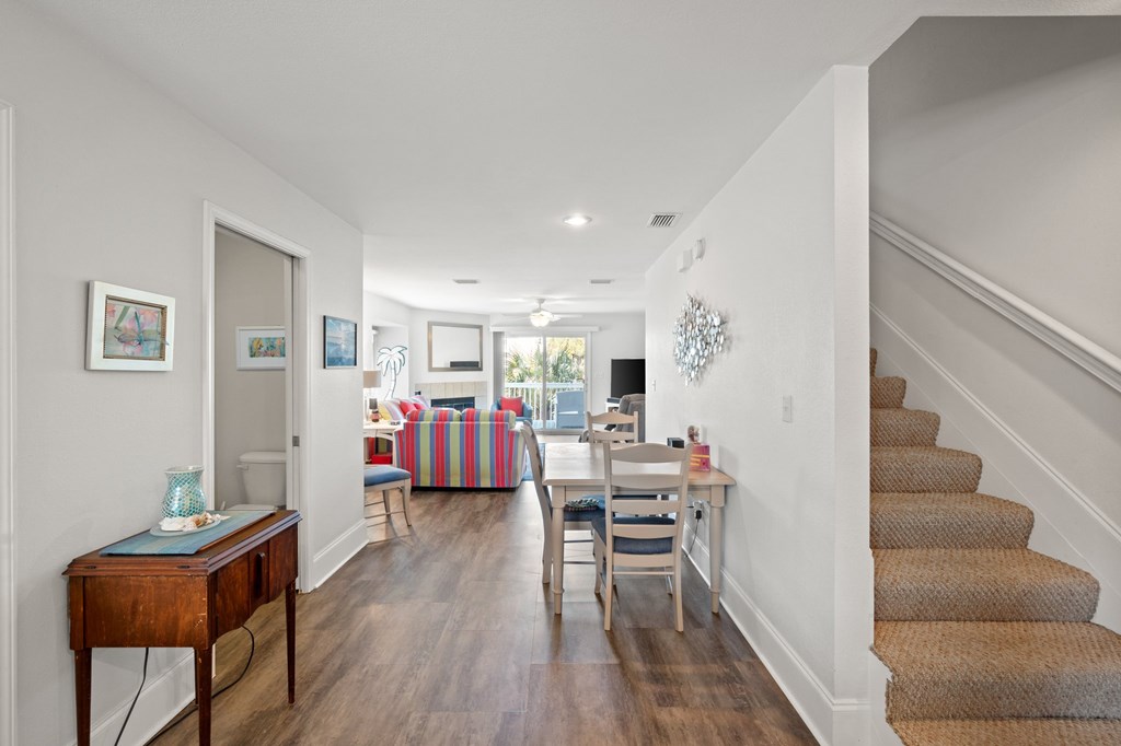 GULFVIEW 2BR/2.5BA townhome located in desirable Barrier Dunes! Situated less than 100 steps from the sugar-white sandy beaches of North Cape San Blas, this property offers an ideal coastal retreat and is centrally located to the community tennis and pickleball courts, swimming pools, clubhouse, playground, and multiple beach accesses. Overlooking the pond and gulf-front clubhouse, this well-maintained home features a spacious first level with a comfortable living room, open deck, dining area, half bath, laundry area, and beautifully remodeled kitchen. The updated kitchen boasts granite countertops, new cabinetry, and stainless steel appliances. Luxury vinyl plank (LVP) flooring enhances the entire first floor. The laundry area includes a full-size washer and dryer with additional storage. Upstairs, you'll find the Primary Suite and a second bedroom. The Primary Suite features a vaulted ceiling, private deck with Gulf views, and an en-suite bath complete with double vanity, soaking tub, separate shower, and private water closet. The second bedroom also offers an en-suite bath with a shower/tub combination and a private balcony overlooking the community. This home has never been on a rental program but would perform exceptionally well as a vacation rental investment or private beach getaway. Seller is motivated — a must-see!