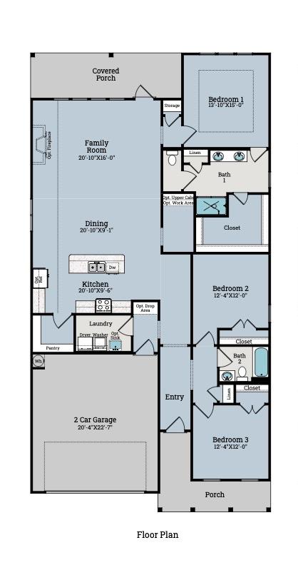 The Jubilee floorplan, one of our newest additions to WindMark Beach in Port Saint Joe, Florida. This single-story home has over 2,000 square feet of bright, open living and entertaining space. The Jubilee features three bedrooms, two bathrooms, a spacious two car garage, EVP flooring throughout, and a large covered back patio. Upon entering, elegant EVP flooring greets you and you will find the two guest bedrooms and full bathroom just off the foyer. Past the foyer, you will enter the open concept living area, brightly lit by many windows. Elegant features such as EVP flooring, quartz countertops, and large windows add to the grand feel of the open layout. The chef-inspired kitchen faces the living area and features a large center island with a single basin undermount sink, quartz countertops, stainless-steel appliances, and a large walk-in pantry - a dreamlike kitchen. The back wall of the living room is clad with windows overlooking the covered back patio. Near the back door, a secluded hallway leading to the primary suite and an extra linen closet. In addition to added privacy, this bedroom boasts of natural light from the large windows, elevated ceilings, and sleek EVP flooring. The bath ensuite includes a dual sink vanity with quartz countertops, a linen closet, large tile shower, and an oversized walk-in closet with wood shelving. A laundry room can be found in the mudroom just off the foyer with the door to the garage. Every home is equipped with Smart Home Technology. This thoughtful integration of technology ensures that your new home is perfectly designed to meet the demands of modern life. Enjoy quality materials and workmanship throughout, with superior attention to detail, in addition to a one-year builder's warranty. This community features a town center with food, shopping, a gym, and more. There are boardwalks, bike and golf cart paths, and beach accesses along with two community pools and breathtaking views of the Gulf of America. Call for a tour!