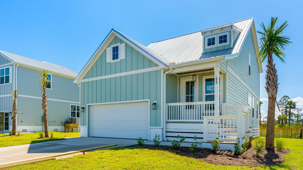 The Islamorada, one of the new floor plans featured at WindMark Beach.. The Islamorada is a spacious 4-bedroom, 3.5-bathroom home with 2 stories and a 2-car garage. A lovely addition to the Emerald series homes of WindMark Beach. As you walk inside you will find matching quartz countertops in the kitchen and bathrooms, as well as exquisitely crafted cabinets throughout the home. Engineered vinyl plank flooring throughout the home which will give you the appearance of wood yet allow you to enjoy the low maintenance qualities of being water and scratch resistant. In the kitchen you will find gorgeous, tiled backsplash to complement the quartz countertops that highlight the elegant look of this home. Each home comes with an appliance package with stainless-steel dishwasher, microwave, electric range, and brushed nickel fixtures with pull out faucet in the kitchen. Exterior features include durable Hardie siding, covered back patio, white shingled roof, 8-foot raised glass prairie door with designer brushed nickel hardware, 8-foot full glass back door, full house gutters, impact glass windows, crown molding, landscaped yard, shrubs, and a 15-gallon palm tree with an irrigation system. Each home is a Smart Home that offers you energy efficiency; the convenience of being able to monitor the temperature in the home, operate lights and keyless entry, Skybell doorbell enabling you to see and speak to someone who is at your front door whether you are there or not and also have the ability to open and close your garage door and unlock your front door remotely. Enjoy all the amenities the community has to offer; local food, shopping, boardwalks, and beach access! Amenities include two pools, BBQ grills, 11 dedicated beach accesses, the village center, boardwalk, and pet friendly! Golf cart friendly, and dogs are allowed on the beach! Located directly across from the Gulf, you will find beautiful beaches within walking distance, and local restaurants close by. Call us to tour!