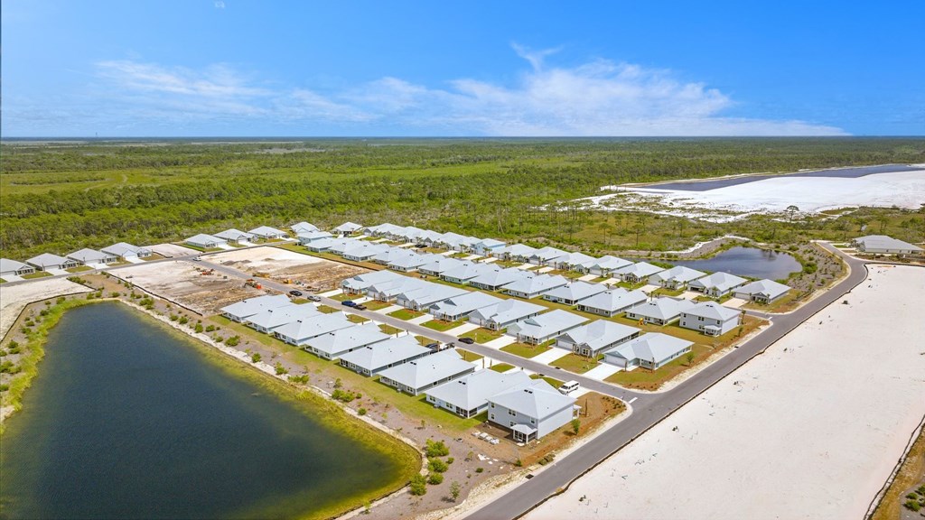 The Brayden, a new floorplan in Windmark Beach. A stunning two-story home boasts of over 2,700 square feet of elegant living space, natural light, and luxe features. Features 5 bedrooms, 3.5 bathrooms, 2 stories, and a spacious 2 car garage. Upon entering, you are welcomed by a large, open living space, brightly lit by numerous windows. The open kitchen overlooks the dining and living area, complete with quarts countertops, white craftsman style cabinetry, a farmhouse sink, a gas burning stove top, and stainless-steel appliances. Entertaining will be a breeze in the opening living area which overlooks the cover patio in the back of the home. Beyond the living space, you will find a secluded hallway that leads to the primary suite. Not one, but 2 walk-in closets can be found in the primary suite with wood shelving. The primary bathroom, complete with luxurious features including a zero-entry tile shower, large vanity with 2 undermount sinks and quartz countertops, and a private water closet. Heading back to the foyer, you will enter the stairway to the second floor. There you will find a flex space that can be used as an office, playroom, game room, etc. All three guest bedrooms host walk-in closets with wood shelving. One of the bedrooms features its own private ensuite. Beyond the luxurious interior features, this home is also equipped with Smart Home Technology. This thoughtful integration of technology ensures that your new home is perfectly designed to meet the demands of modern life. Our homes are built with quality materials and workmanship throughout, with superior attention to detail and with your family in mind. Enjoy peace of mind knowing you are cover by our one-year builder's warranty. Enjoy all the amenities the community has to offer complete with, local food, shopping, boardwalks, and beach access! Amenities include two pools, BBQ grills, 11 dedicated beach accesses, village center, boardwalk, and is golf-cart and pet friendly! Call us for a tour!