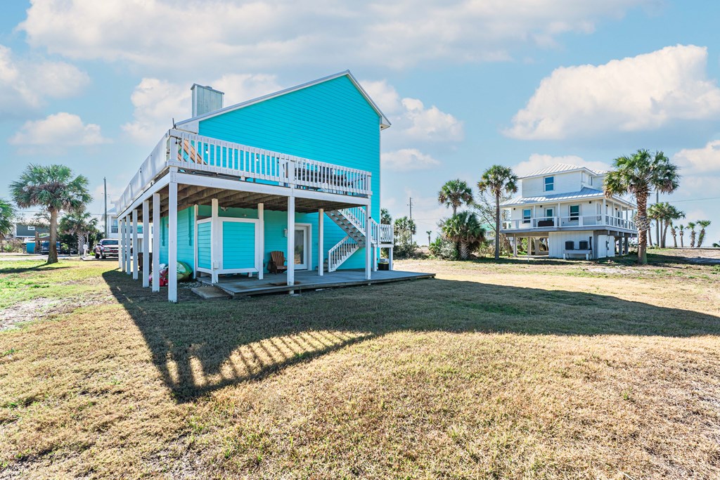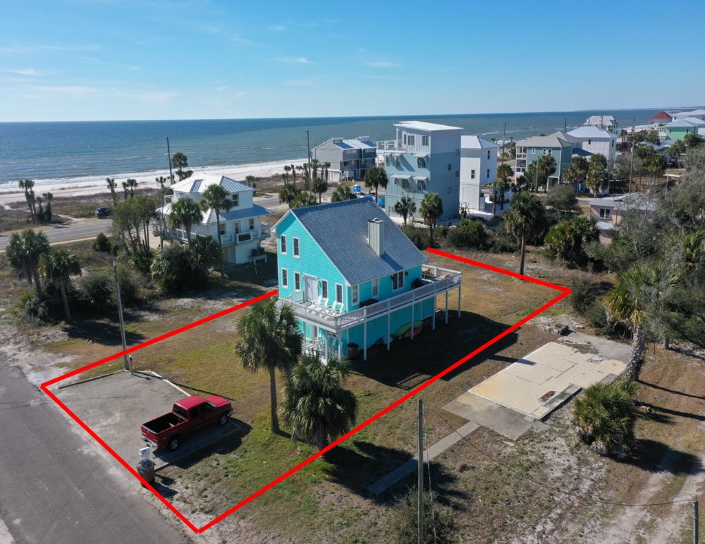 Rare opportunity for a gulf view home close to the beach with two completely separate and independent living areas. Upstairs is the “main” part of the property that consists of 2 bedrooms and 2 full baths including a large and impressive master bath and also a remodeled guest bath. There is a large wrap-around deck off the 2nd floor that's great for enjoying the gulf breeze and an additional deck on the 3rd floor off of the master. The first floor has two additional bedrooms, a full bath, and kitchen. Home is in great condition and ready for someone that wants all the flexibility and options this property provides. No HOA dues or short term rental restrictions. Check out the virtual tour!