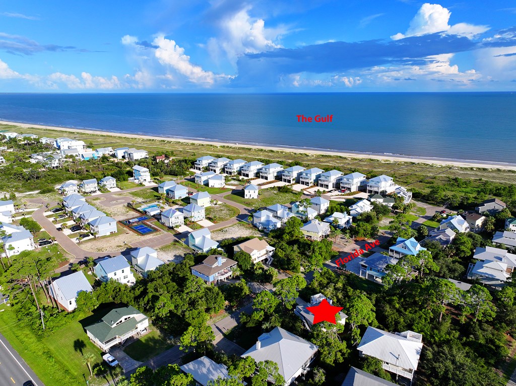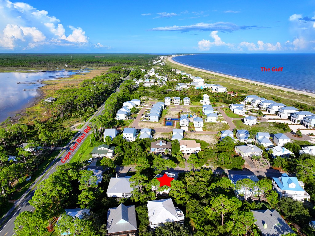 From Hwy 98, turn onto SR 30-A, turn right onto Cape San Blas Rd., take left onto Florida Ave., home is on right. No sign per HOA