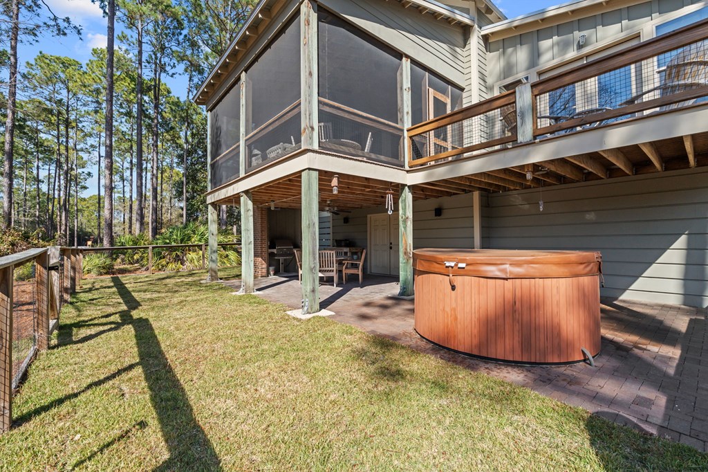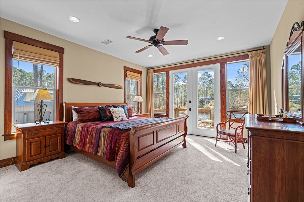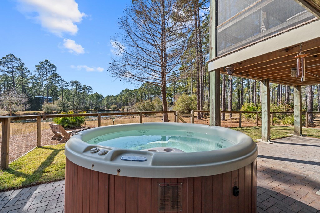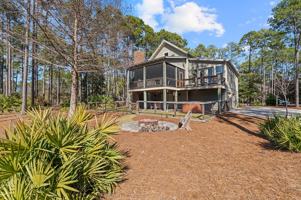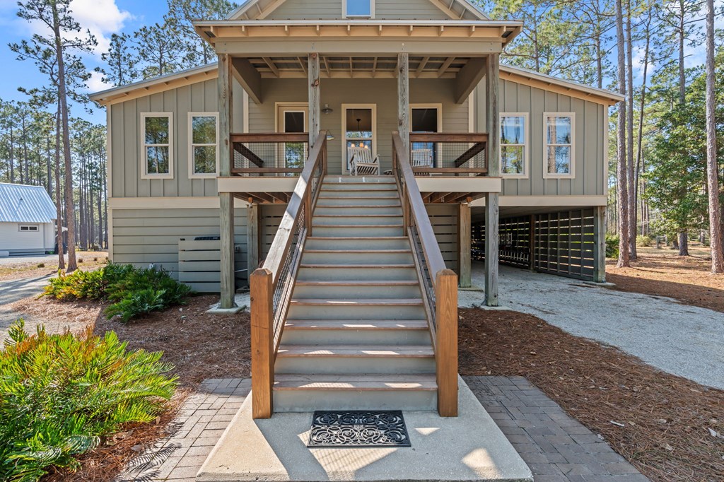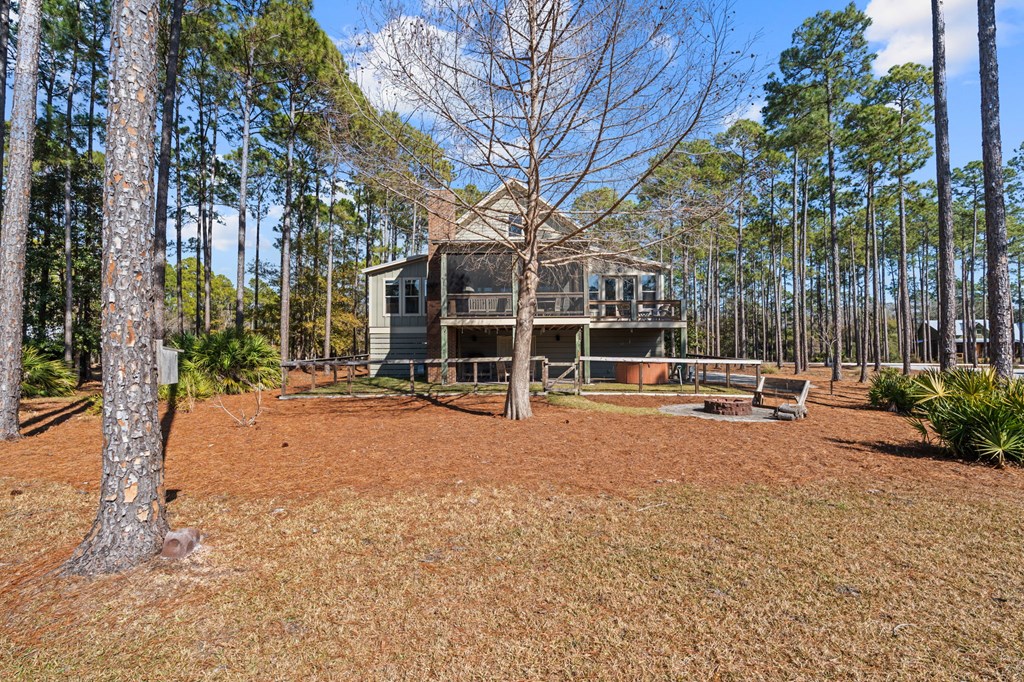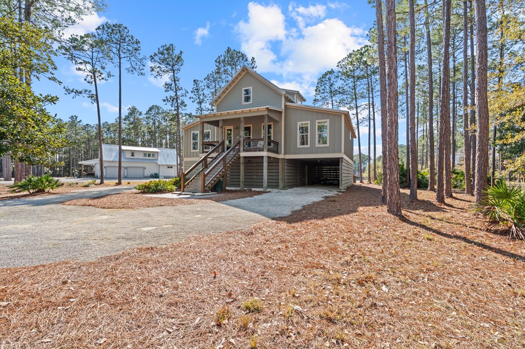 Welcome to RiverCamps, a touch of Old Florida that you have to see to believe. This 3-bedroom, 2-bath home offers 2,368 sq ft on a 3/4-acre fenced lot with pond frontage and is NOT in a flood zone. Positioned near the front of the RiverCamps community, the location provides quicker access in and out while still offering privacy and water views. A large driveway and extensive covered area beneath the home create truly unrivaled parking and storage capacity, ideal for boats, trailers, and recreational vehicles. The bottom level was custom designed with storage as a priority and delivers exceptional functionality rarely found in the community. In addition to the oversized two-car garage, the home features a dedicated shop/gun room, a 37' x 14' covered parking area, and abundant secured storage for gear, equipment, and outdoor toys. An outdoor shower adds convenience after days on the water or trail. Upstairs, the layout includes a flexible 344 sq ft loft that functions perfectly as a home office or can easily be converted into a true fourth bedroom. The primary suite overlooks the pond with French doors opening to an uncovered deck. New carpet has been installed, and all appliances convey, including washer, dryer, and hot tub. All furniture is negotiable with the home. Situated in the gated, waterfront community of RiverCamps, known for some of the best redfishing in Bay County and abundant wildlife, including deer that roam throughout the neighborhood. RiverCamps spans 1,500 acres, with over 1,000 acres preserved for conservation. Amenities include a community boat ramp with Gulf access, day-use slips, dry boat storage, seven miles of trails, and golf cart-friendly streets. A new pool and pavilion are open, with a fitness center coming soon. Conveniently located 10 miles from Pier Park and the beaches of Panama City Beach, and minutes from the international airport.