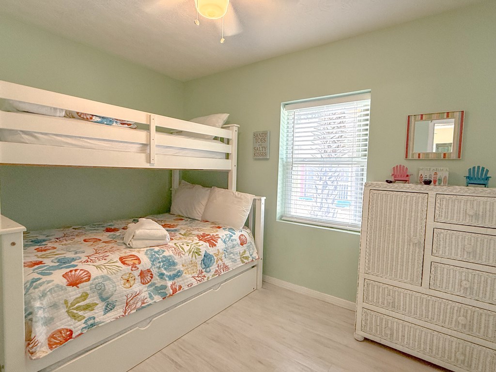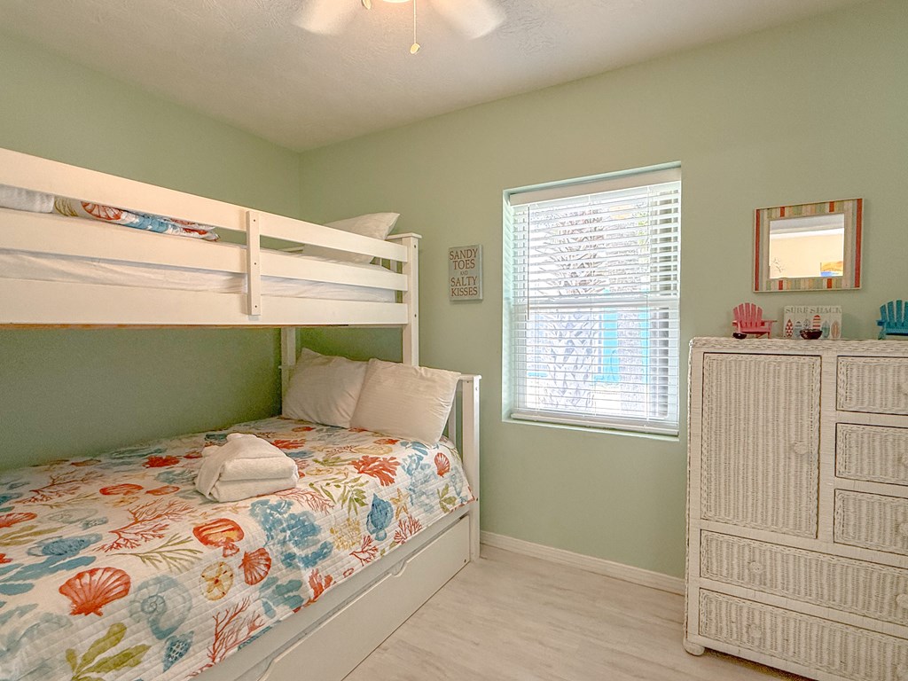 Turn right off E Gulf Beach Drive onto 6th street then make a left on E Gorrie Drive. The unit will be on the left-hand side of the road. Agent sign is out front.