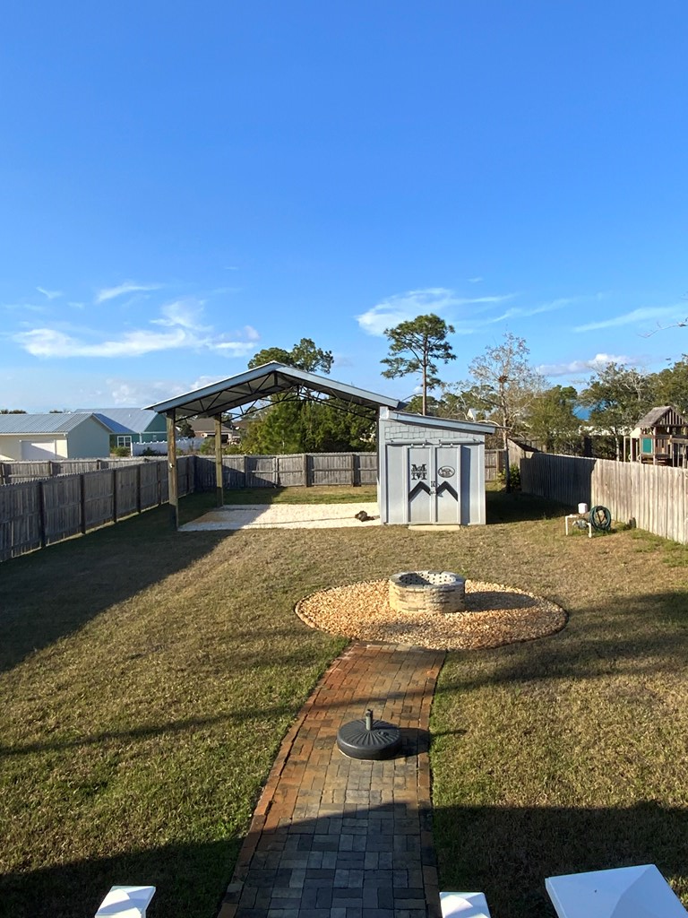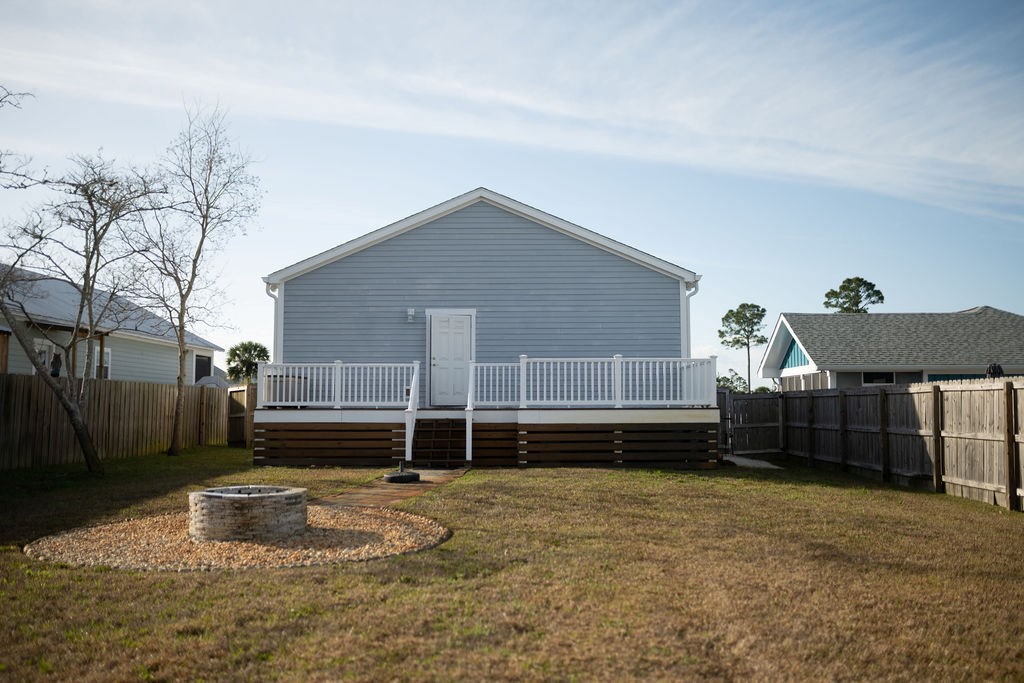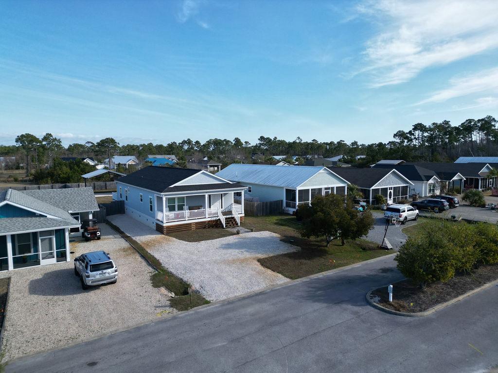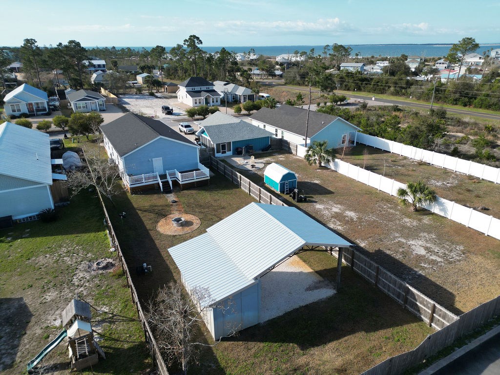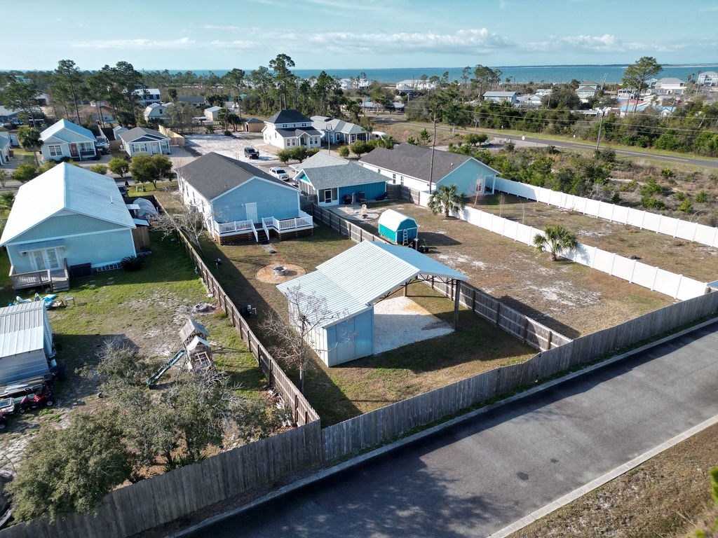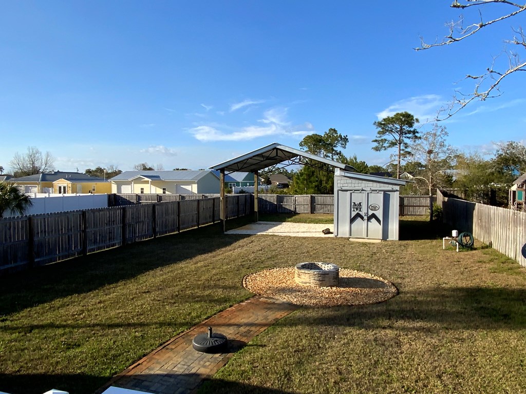 EMBRACE EASY LIVING IN THIS BEAUTIFULLY DESIGNED, FULLY FURNISHED 3 BED/2 BATH HOME WITH FLORIDA COTTAGE CHARM. The open-concept layout creates a bright and welcoming atmosphere, with the living, dining and kitchen areas flowing effortlessly together, which is perfect for gathering after a day in the sunshine. The home is filled with coastal inspired finishes and abundant natural light. The kitchen features granite countertops, Whirlpool stainless steel appliances and a breakfast bar. The primary suite offers a peaceful retreat with two large closets, offering plenty of room for clothes/shoes and storage space. The ensuite bath features a tiled shower, double vanity and makeup area. There is also a large linen closet. Two additional bedrooms provide flexibility for guests, family or a home office. The guest bath is conveniently located across from the guest bedrooms and has a shower/tub combo. You will find a linen closet just outside of the quest bath. The spacious laundry room contains a stacked washer/dryer, cabinets and closet for additional storage. Upon exiting the laundry room, you will walk out onto your rear porch, which overlooks the spacious, fenced back yard. A POLE BARN (22x34) with enclosed area for storage or a man cave. There is also a fire pit for those chilly evenings. A shallow well and irrigation system has already been installed. NO HOA. SHORT-TERM RENTALS ARE ALLOWED. Only a 5 MINUTE GOLF CART RIDE TO SANDY BEACHES AND TO WATCH BEAUTIFUL SUNSETS. Call for a showing today!