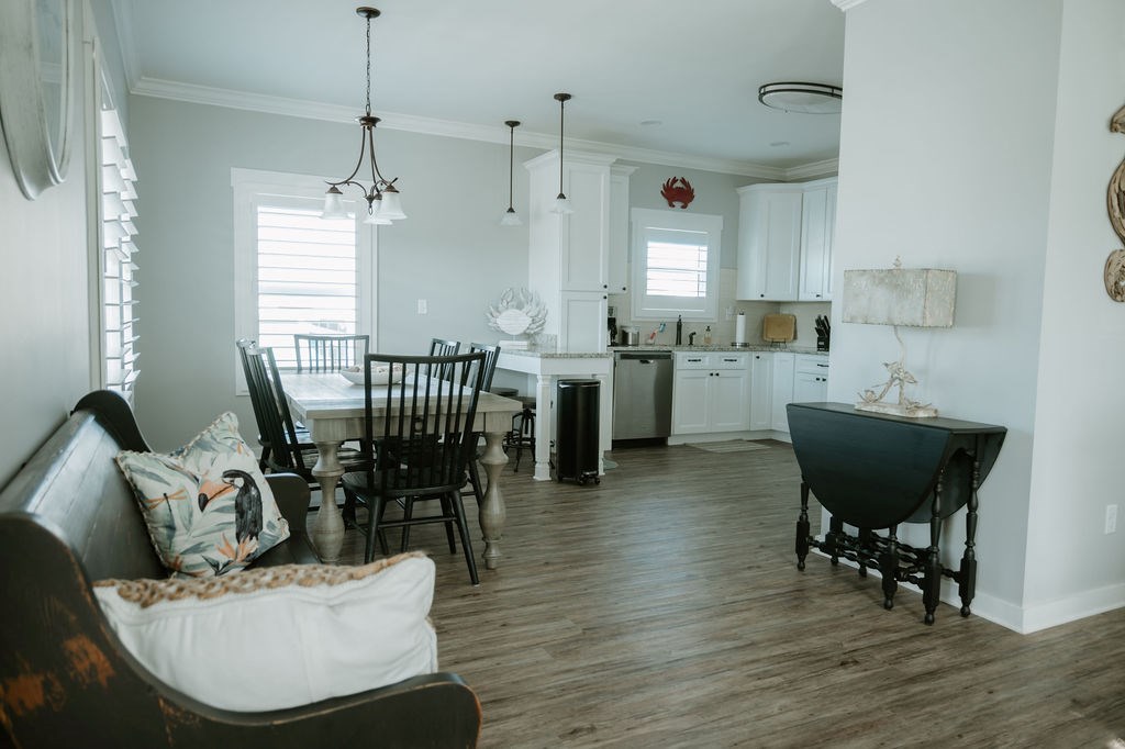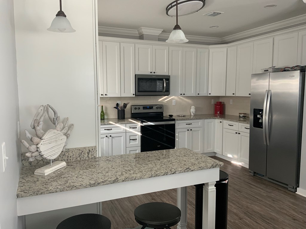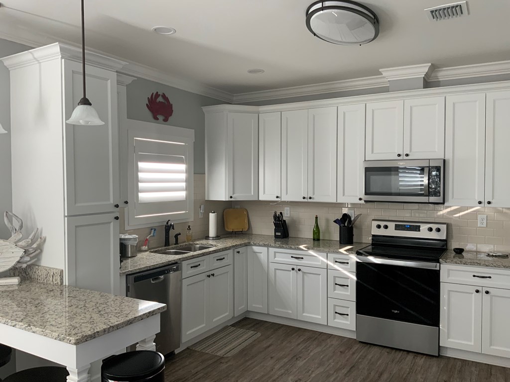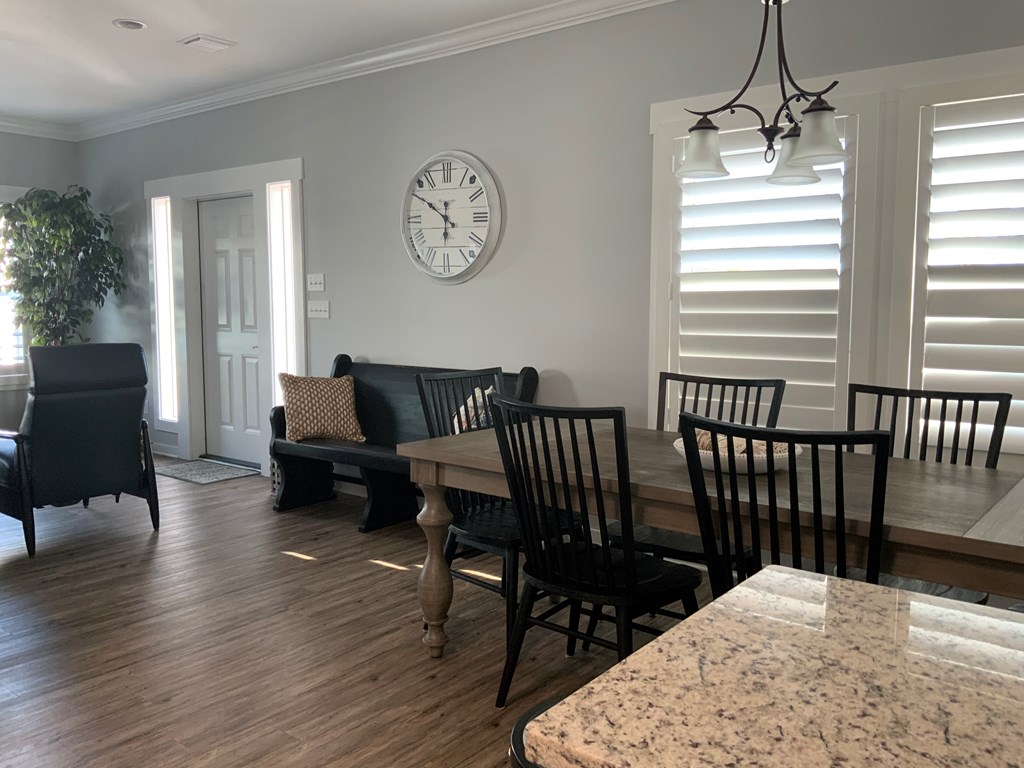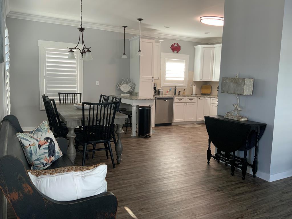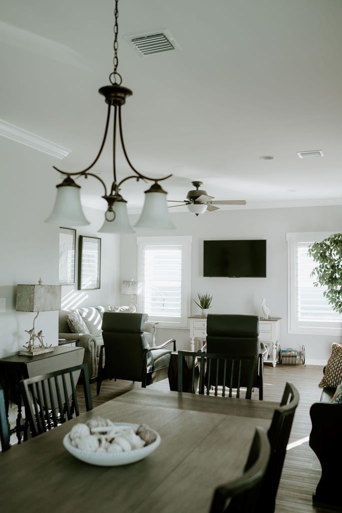 EMBRACE EASY LIVING IN THIS BEAUTIFULLY DESIGNED, FULLY FURNISHED 3 BED/2 BATH HOME WITH FLORIDA COTTAGE CHARM. The open-concept layout creates a bright and welcoming atmosphere, with the living, dining and kitchen areas flowing effortlessly together, which is perfect for gathering after a day in the sunshine. The home is filled with coastal inspired finishes and abundant natural light. The kitchen features granite countertops, Whirlpool stainless steel appliances and a breakfast bar. The primary suite offers a peaceful retreat with two large closets, offering plenty of room for clothes/shoes and storage space. The ensuite bath features a tiled shower, double vanity and makeup area. There is also a large linen closet. Two additional bedrooms provide flexibility for guests, family or a home office. The guest bath is conveniently located across from the guest bedrooms and has a shower/tub combo. You will find a linen closet just outside of the quest bath. The spacious laundry room contains a stacked washer/dryer, cabinets and closet for additional storage. Upon exiting the laundry room, you will walk out onto your rear porch, which overlooks the spacious, fenced back yard. A POLE BARN (22x34) with enclosed area for storage or a man cave. There is also a fire pit for those chilly evenings. A shallow well and irrigation system has already been installed. NO HOA. SHORT-TERM RENTALS ARE ALLOWED. Only a 5 MINUTE GOLF CART RIDE TO SANDY BEACHES AND TO WATCH BEAUTIFUL SUNSETS. Call for a showing today!
