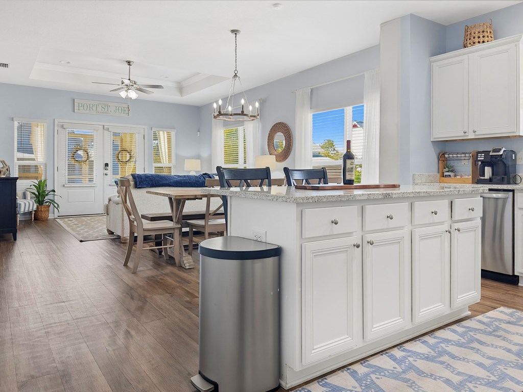 Coastal living at its best in beautiful WindMark Beach! This charming 3-bedroom, 2-bath home offers the perfect blend of comfort, style, and investment potential. Currently a successful short-term rental, the home is an ideal opportunity for those looking to enjoy the beach lifestyle while generating income. Inside, you'll find luxury vinyl plank flooring throughout, providing durability and a clean coastal feel. The spacious kitchen features stainless steel appliances, granite countertops, and an open design that flows seamlessly into the living and dining areas—perfect for entertaining family and guests. Step outside to the screened porch, where you can relax and enjoy the peaceful natural landscaping and coastal breezes that make WindMark Beach so special. The garage offers flexibility for owners and guests alike. While it can easily function as a traditional garage, it is currently set up as a super cool game room—creating a fun and inviting space for gathering and entertainment. The spacious owner's suite provides a comfortable retreat with a large bedroom, walk-in closet, and private ensuite bath. The guest rooms are airy and comfortable with one decked out with double bunk beds! Located in the sought-after WindMark Beach community, this home is just moments from the bay, walking paths, community amenities, and the charming downtown area with shops and dining. Whether you're looking for a personal coastal getaway, an investment property, or both, this WindMark Beach home is a fantastic opportunity to enjoy life along the Forgotten Coast.