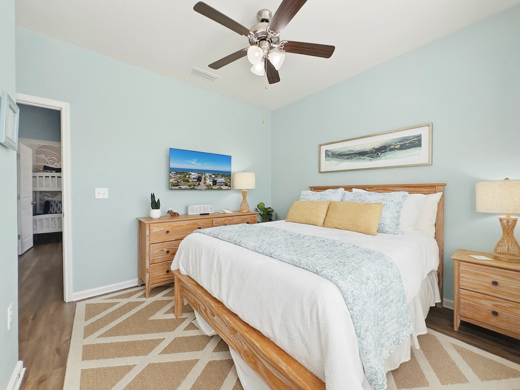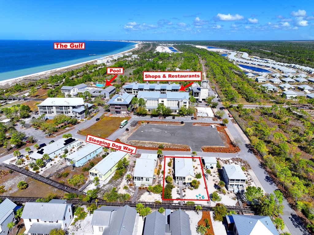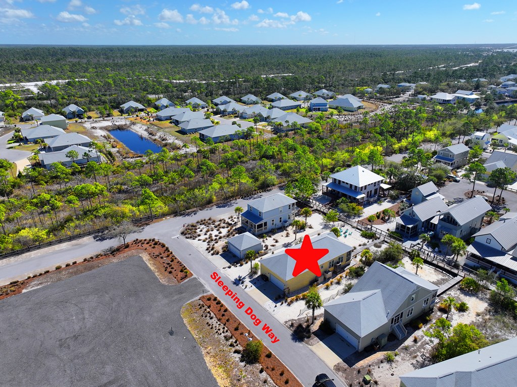 From US-98, turn onto Goodmorning St toward WindMark Beach. Turn left onto Flat Water St, then right onto Sleeping Dog Way. The home will be on your left. See sign
