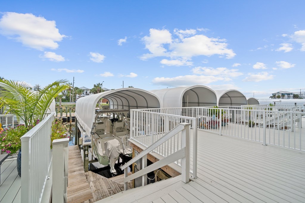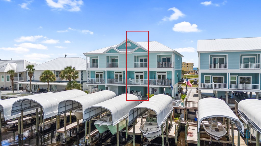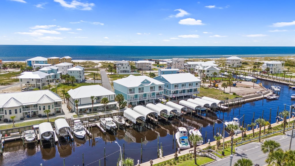 ATTENTION BOATERS AND FISHERMEN! CANAL FRONT, BEACHSIDE TOWNHOME WITH COVERED BOAT SLIP! Don't miss this rare opportunity to own a canal front property on the beachside of Hwy 98. This beautiful 3 BR/3.5 BA townhome is located a half block from the beach making it perfect for the fisherman and family! With 1728 sq ft, the townhome is spacious with a great floor plan. The first living level includes the living area with covered canal view balcony, kitchen, dining area, bedroom and full bath with tub. The kitchen boasts quartz counters, stainless appliances including a gas stove The top floor features the master bedroom with a private covered balcony with panoramic canal views. A gulf view guest bedroom with private bath, a sleeping room that would hold twin beds or bunk beds and the laundry closet complete the top floor. LVTP flooring, custom window treatments and quartz counters are used throughout the home. The outdoor amenities of the property include a personal covered boat slip with a 10,000 lb lift, great deck space, covered parking plus two large storage rooms for beach equipment and fishing tackle. Being on the beach side eliminates the worry of having to go under the Hwy 98 bridge. No HOA dues. The property is in move in condition and has never been used as a rental. Property is being sold unfurnished. Don't miss this rare opportunity!