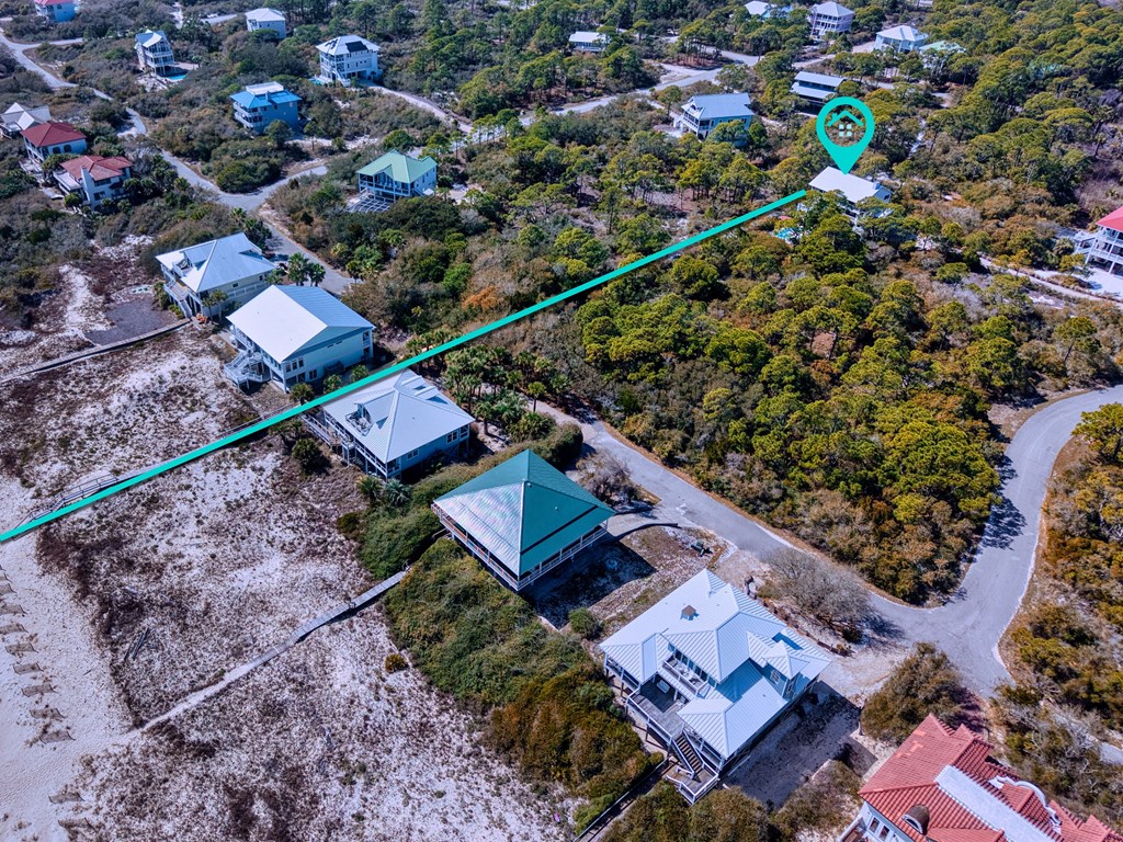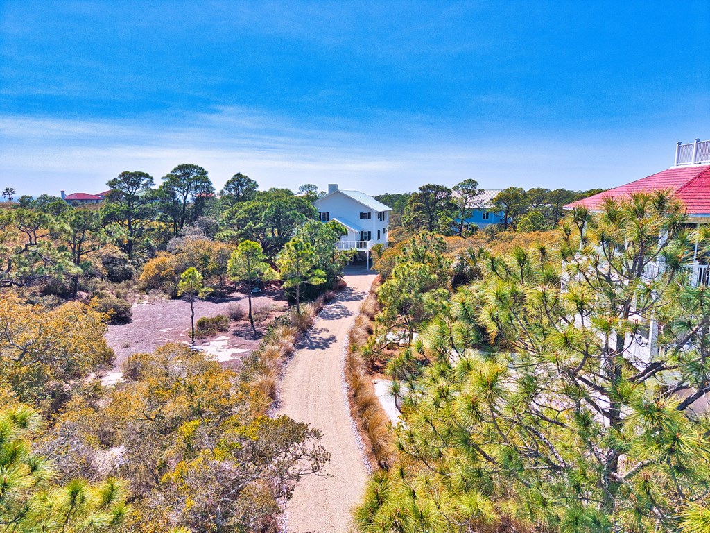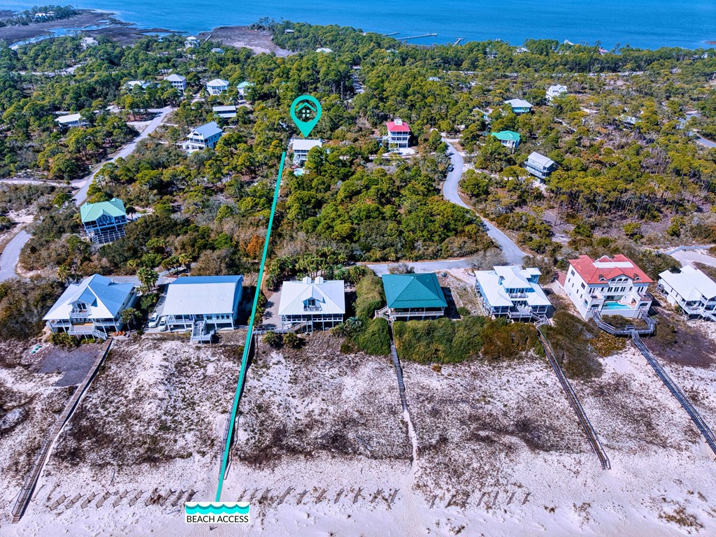Take W. Gulf Beach to the entrance of the Plantation Subdivision, upon entering, continue on Leisure Lane .7 mile, turn left onto Bayberry Lane, house is on the right.