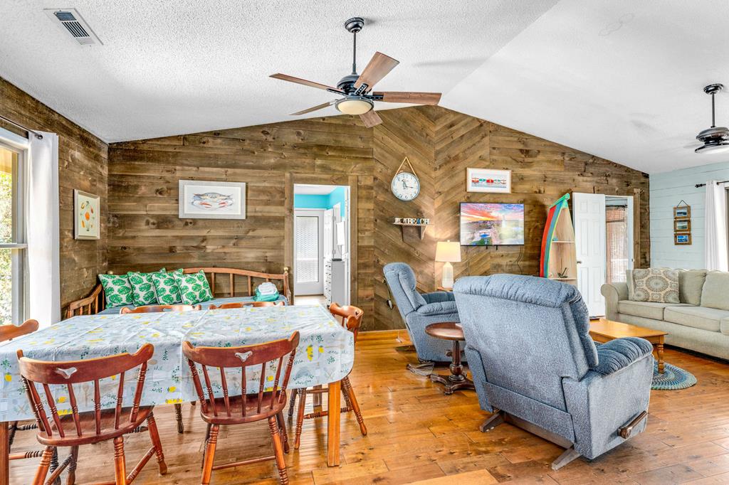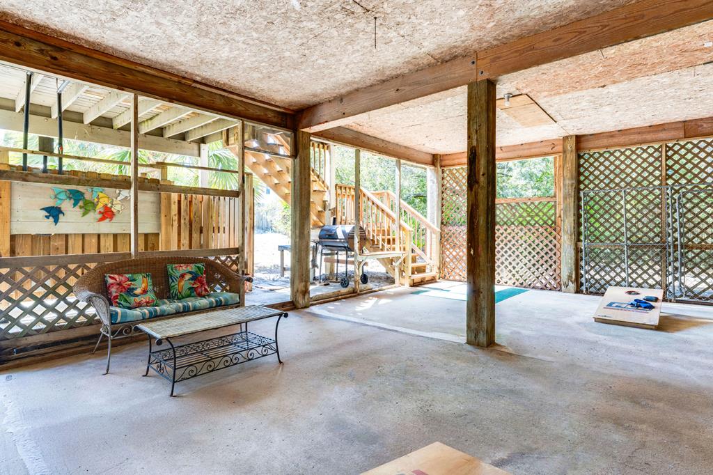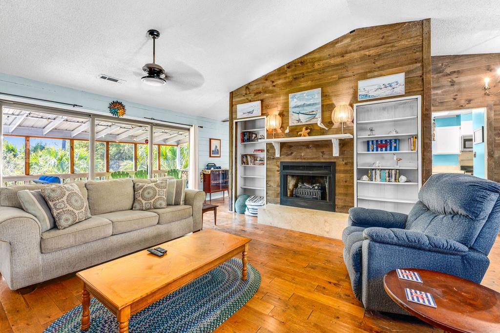 Tucked away on quiet East Pine Ave on SGI, "The Anchor" is a charming island cottage surrounded by lush native vegetation and coastal greenery. This 3-bedroom, 2-bath home has an open and warm, inviting feel and offers the perfect opportunity for someone to add their own style and updates. Split bedroom accommodations offer privacy for all with the main living area adjacent to the kitchen and dining area. Enjoy the large outdoor living spaces with screened in porch or the many open decks surrounding it. There is also huge space under the home for outdoor games, fish-cleaning or cocktails with friends. This home has great bones and plenty of potential for those looking to put 'their own spin' on an island getaway, whether it to be a full-time or part-time residence or island vacation rental. Life here moves at a gentler rhythm. Morning walks to the beach with coffee in hand, afternoons fishing or boating, and evenings grilling on the porch. Hop on the golf cart, cruise down to the water, catch a sunset, and head home to your quiet little hideaway tucked under the lovely scrub-oaks. If you've been dreaming of a place on the island where you can slow down, unwind, and make it your own, this East Pine cottage might just be the perfect spot to start! Call for a showing today.